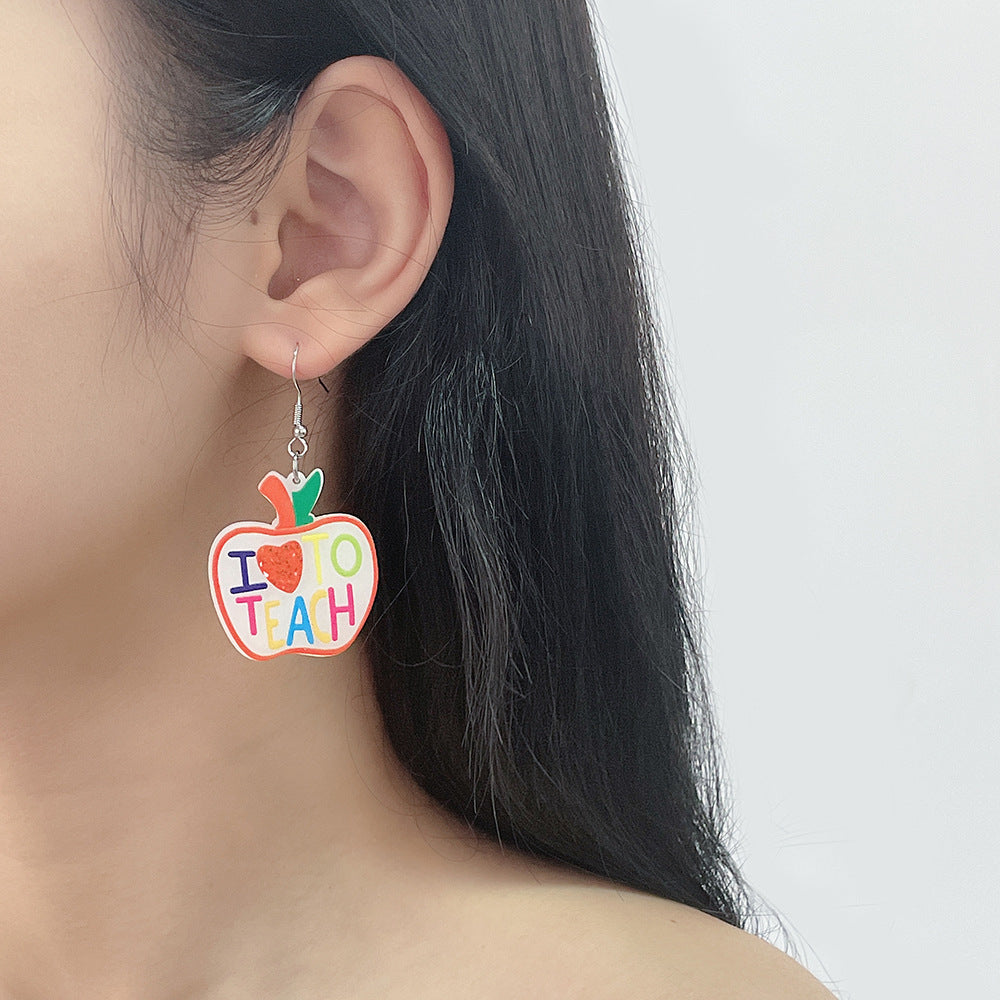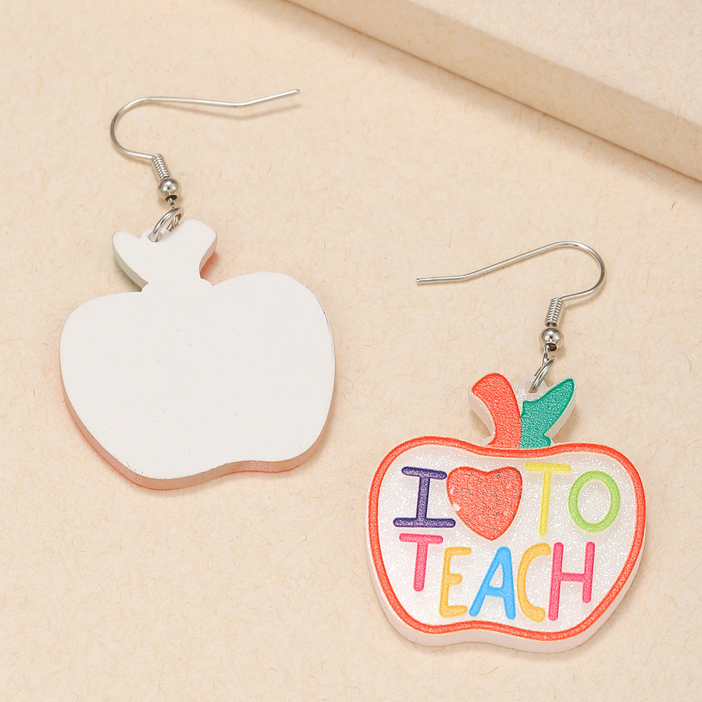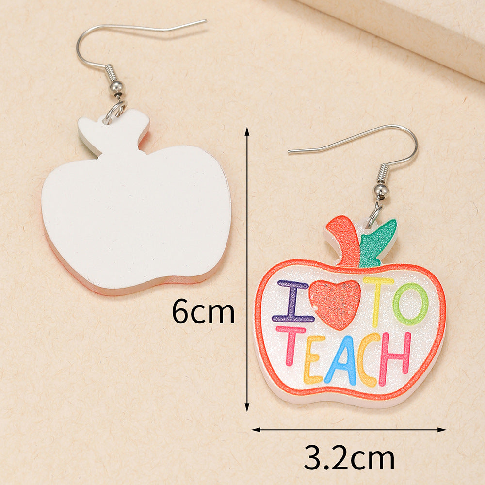 Pendientes acrílicos con la frase "Apple Love Teach" E7728