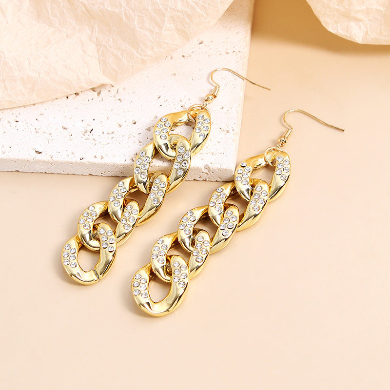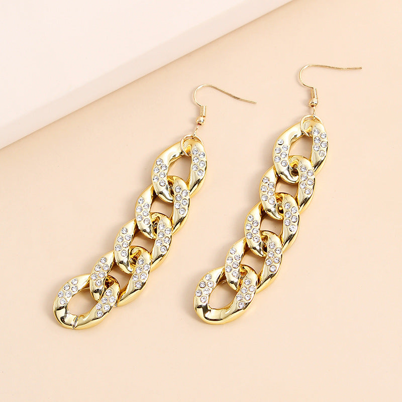 Pendientes de cadena con diamantes de imitación E7741