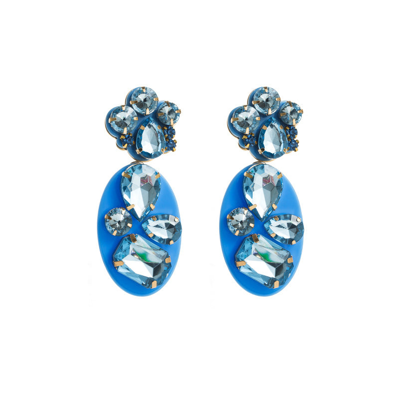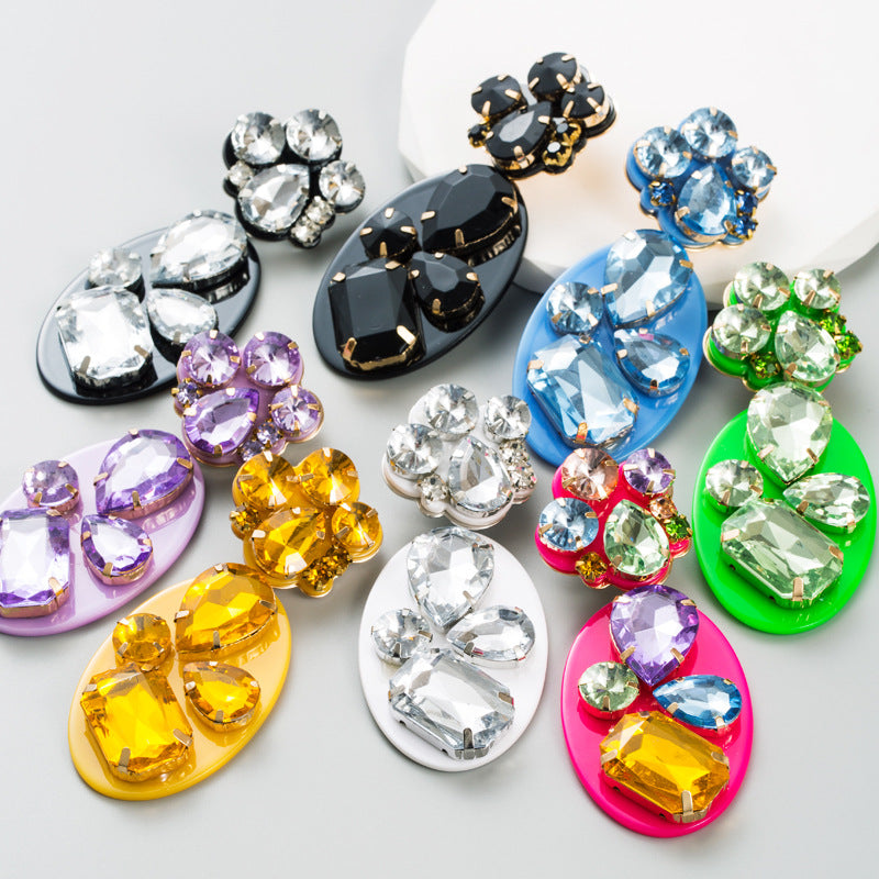 Pendientes de clip con diamantes de imitación ovalados E6646