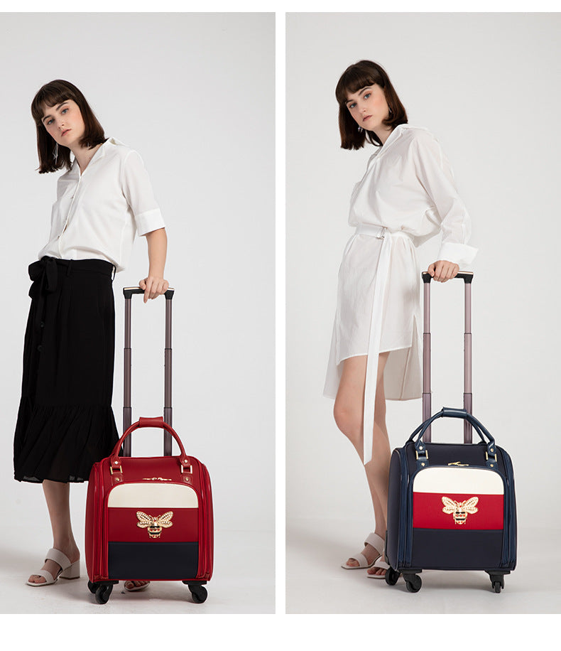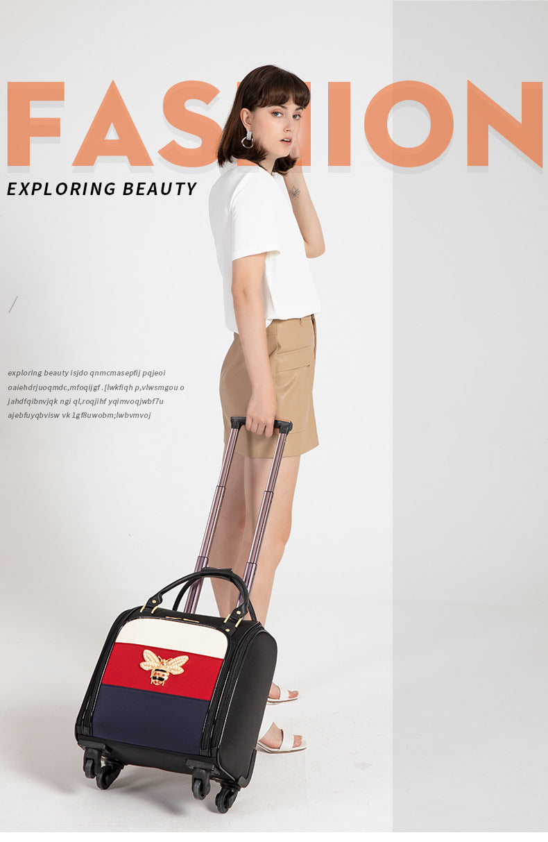 ¡Prepárate para ser el viajero más elegante con nuestra maleta de rayas de tamaño grande con diseño de abeja! Fabricada con tela Oxford duradera, esta maleta te hará vibrar con estilo. (¡Bzzzz!)