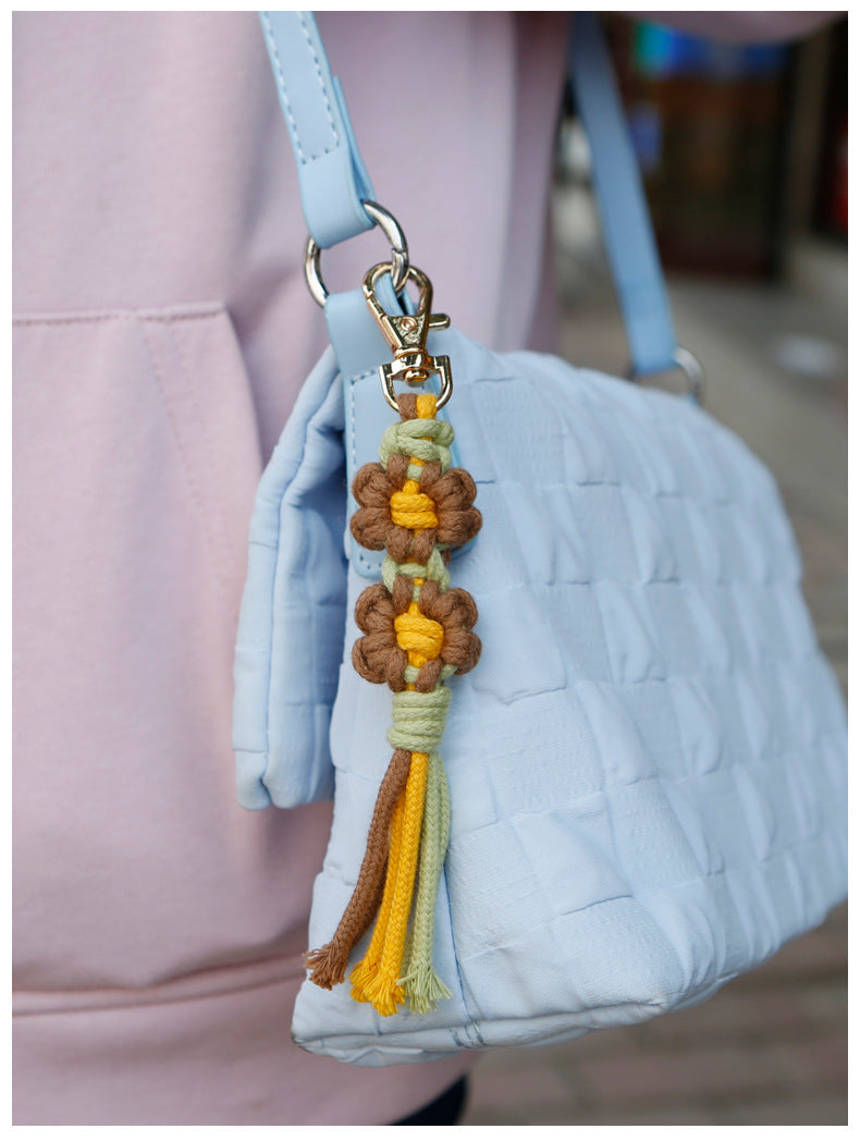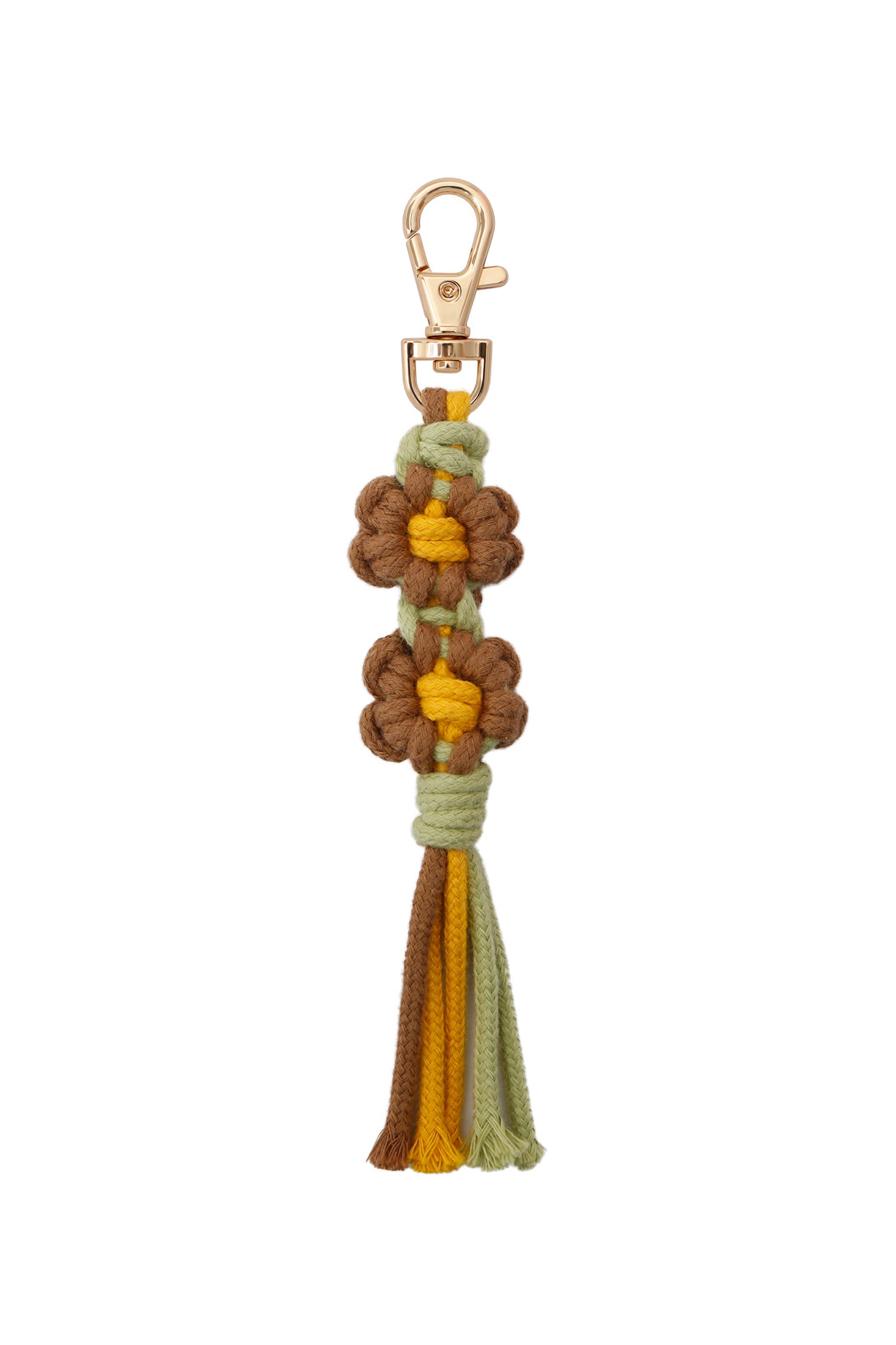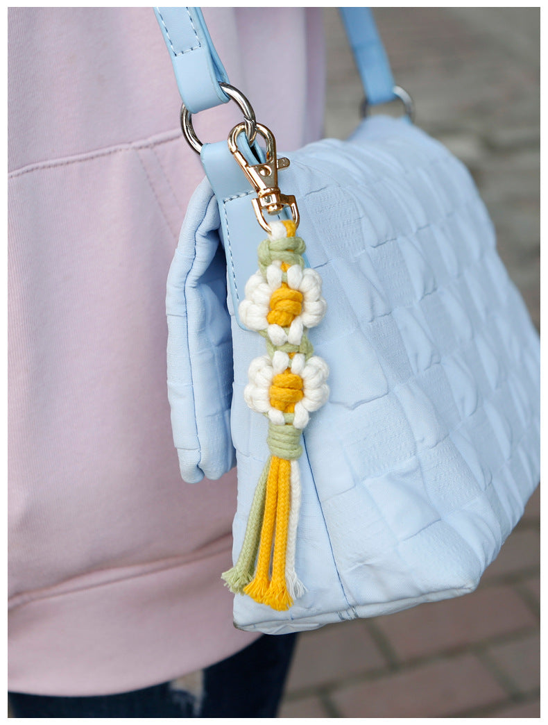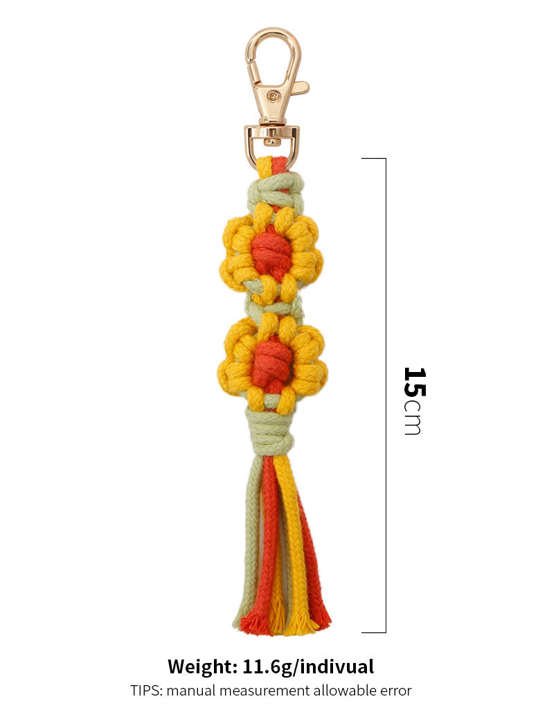 Llavero con borlas de hilo de algodón trenzado con flores K1284