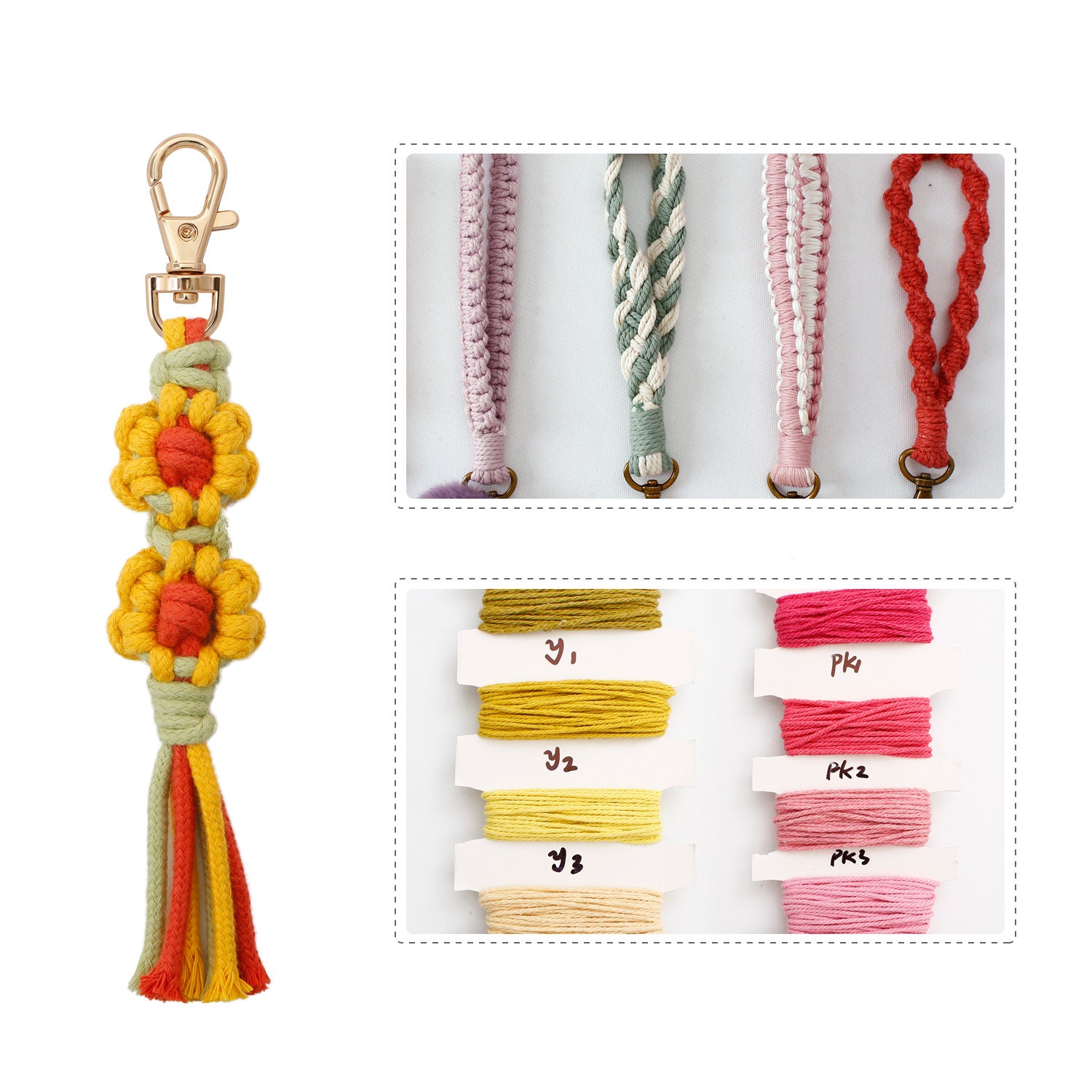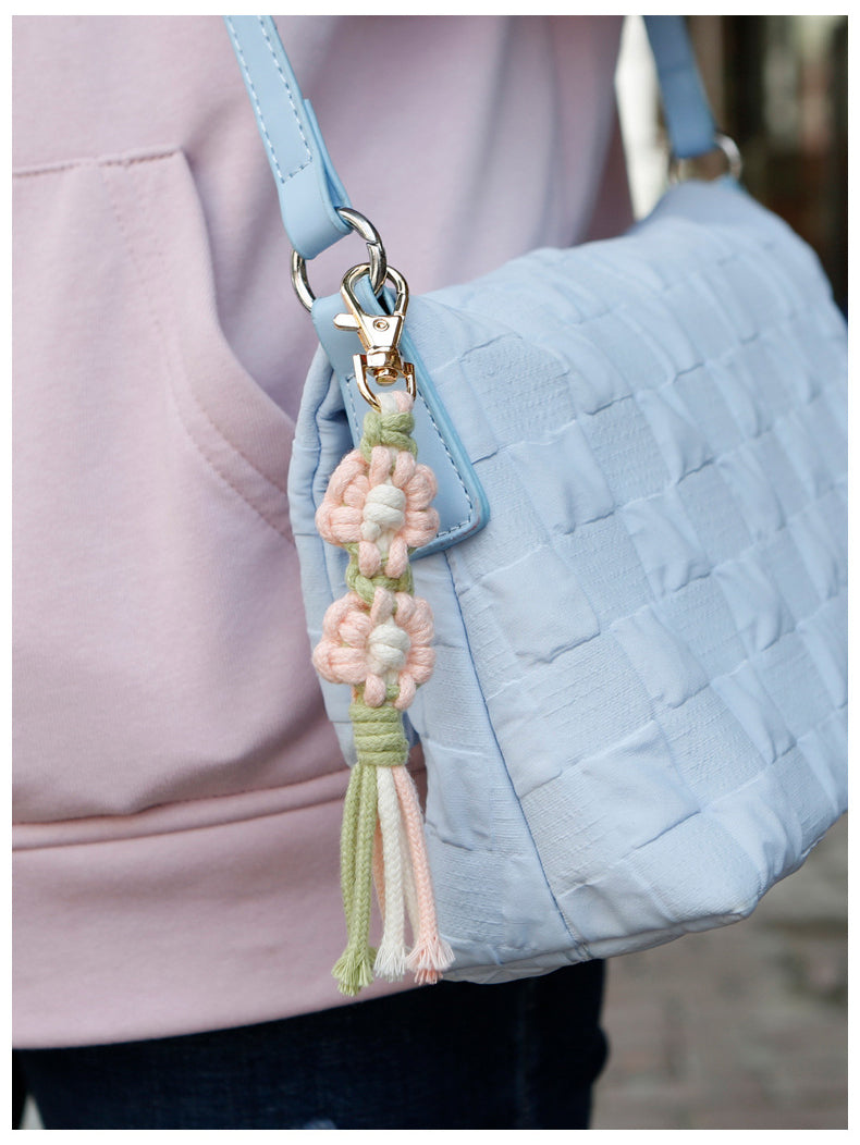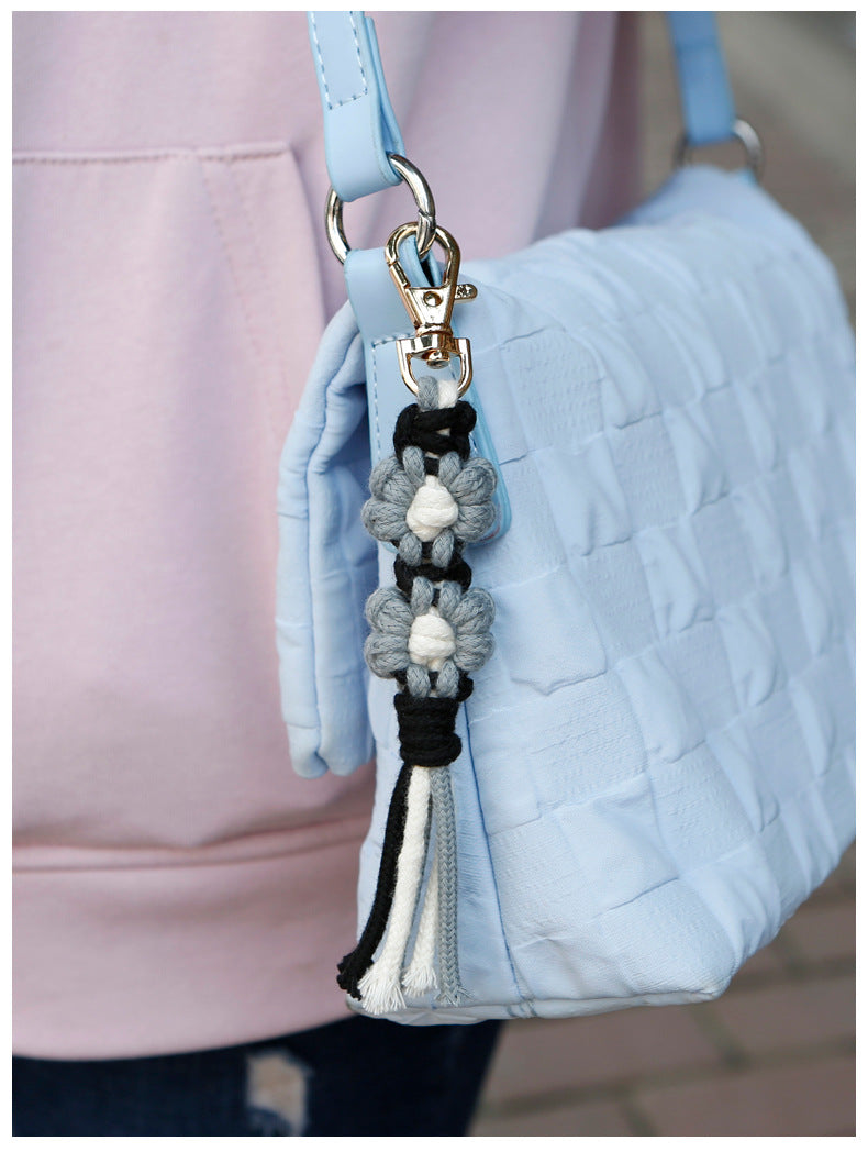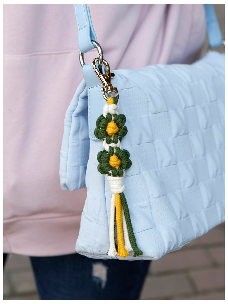 Llavero con borlas de hilo de algodón trenzado con flores K1284