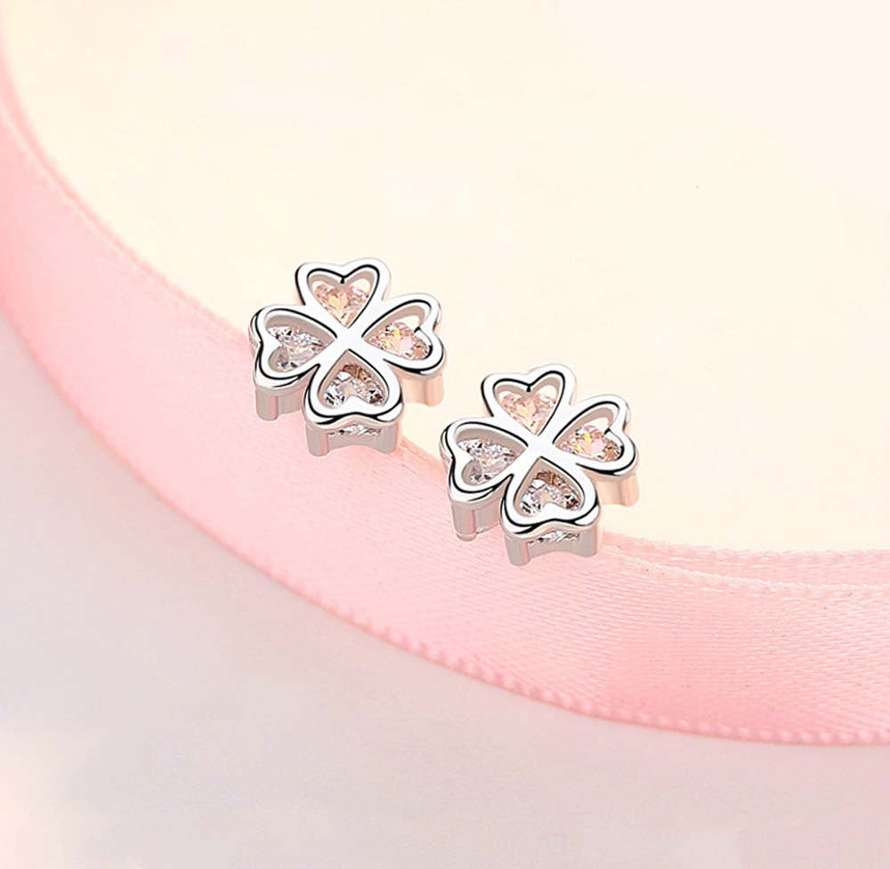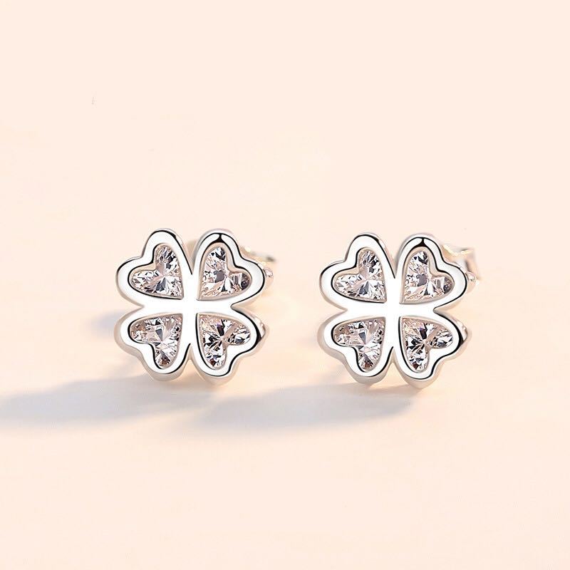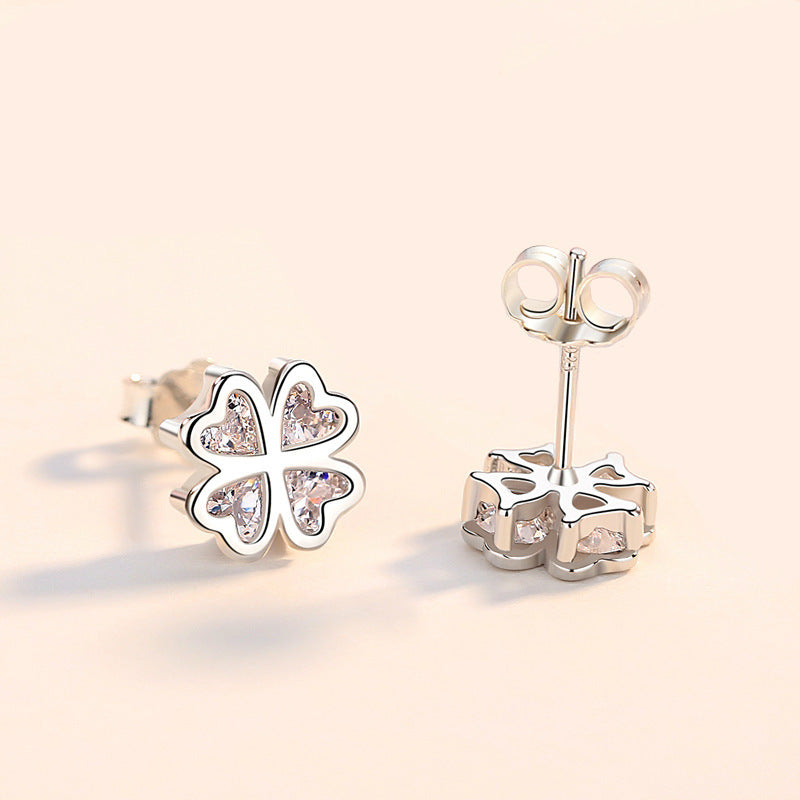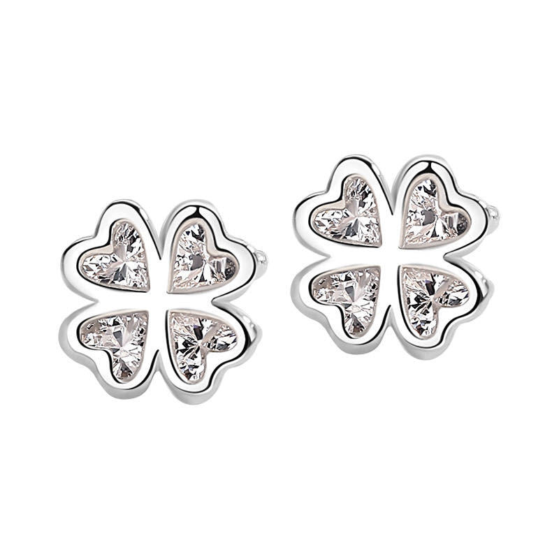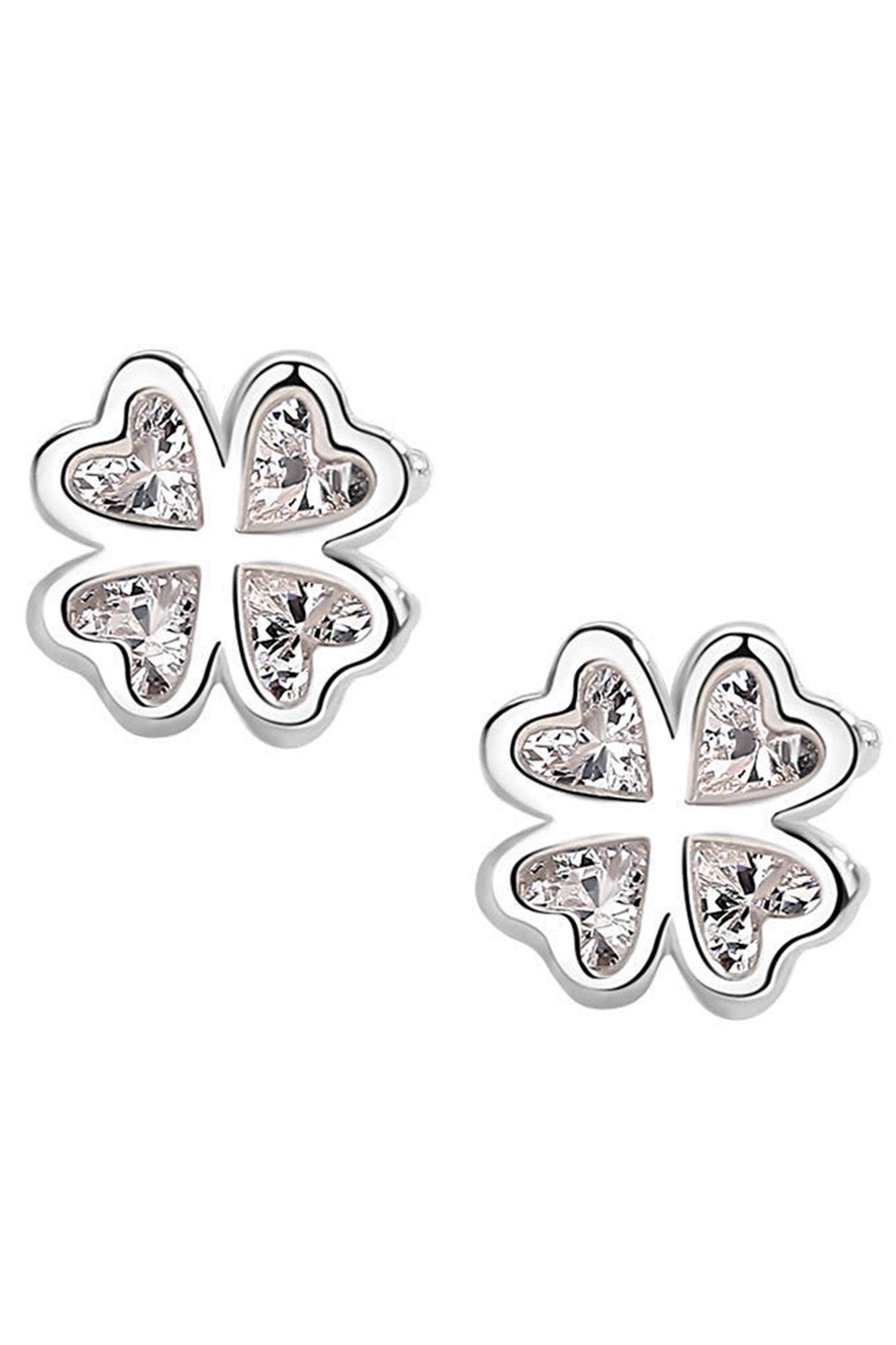 Pendientes de botón de plata 925 con forma de trébol E6220