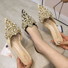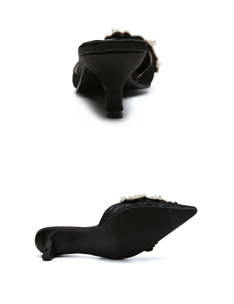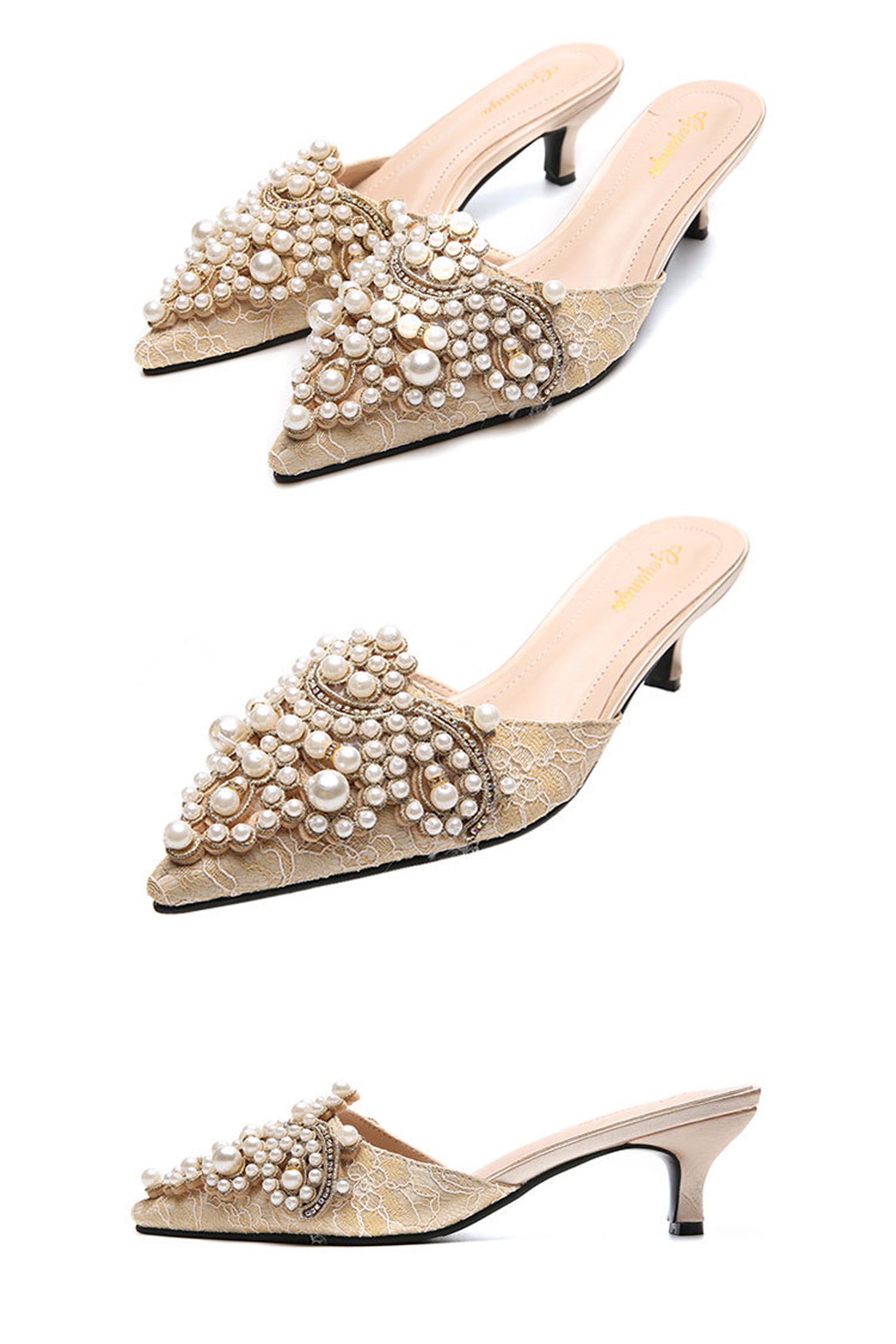 3. Zapatillas planas con encaje y cuentas de perlas SH0036