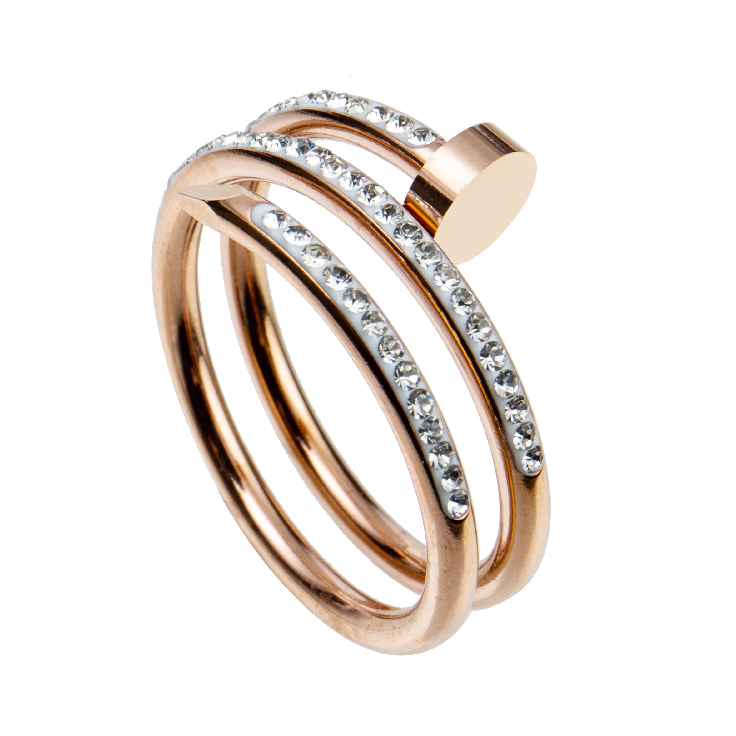 Anillos de acero inoxidable con diamantes de imitación y tres vueltas para uñas R2142-RG