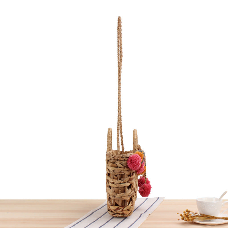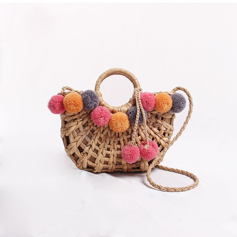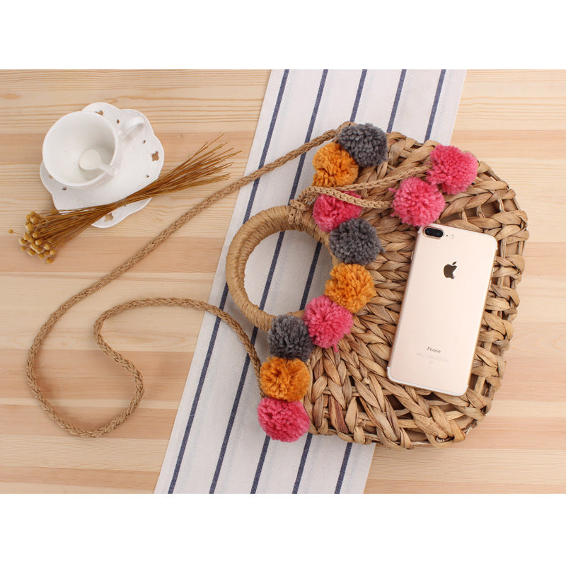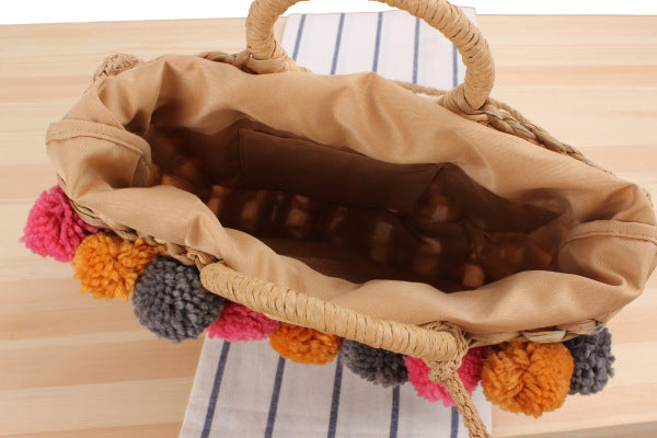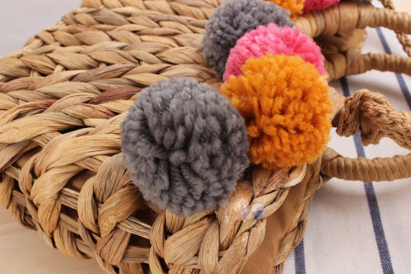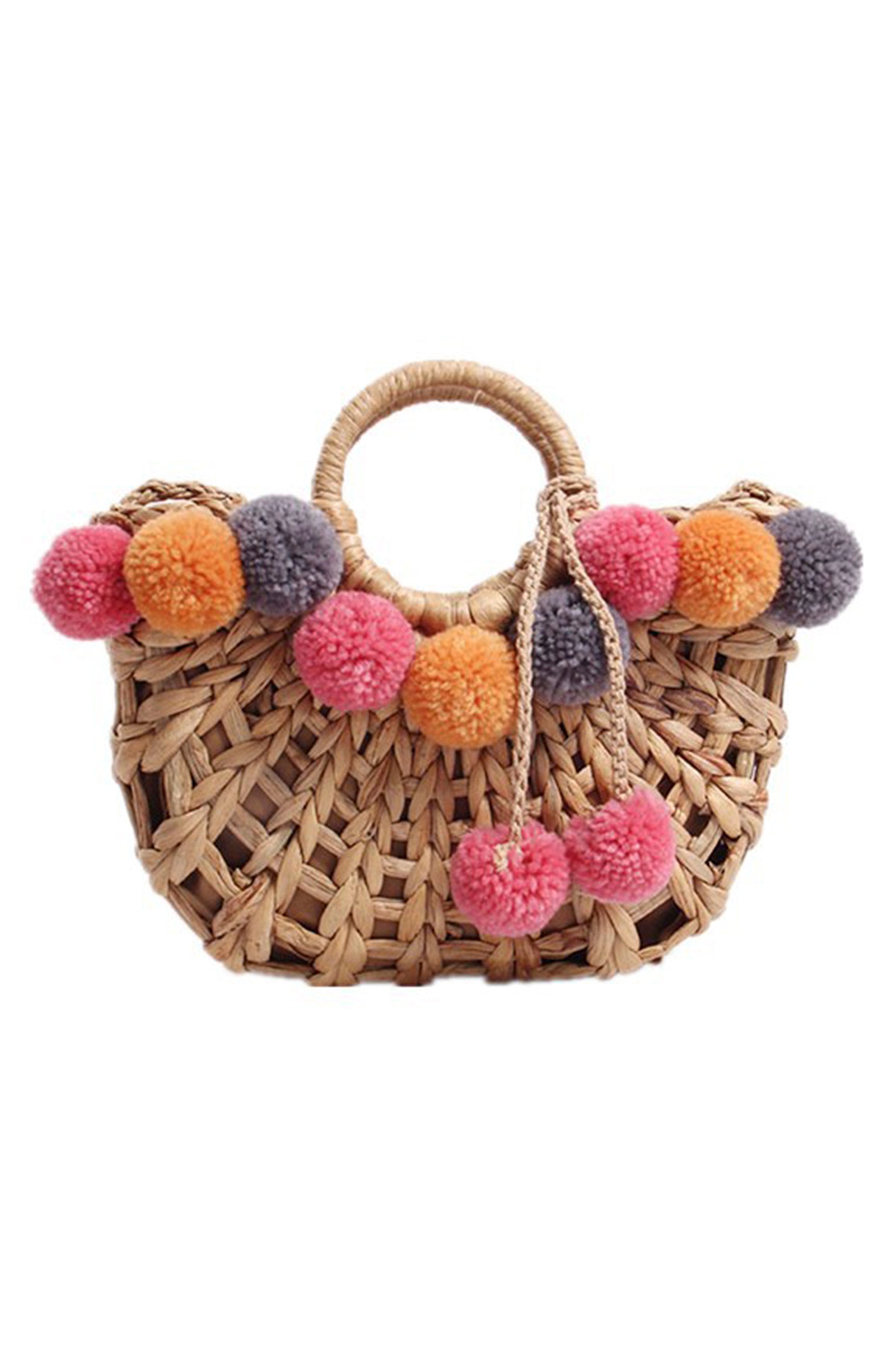 Bolso de mano de paja con pompones HB1391