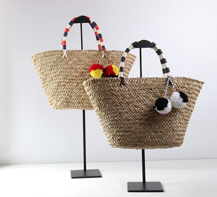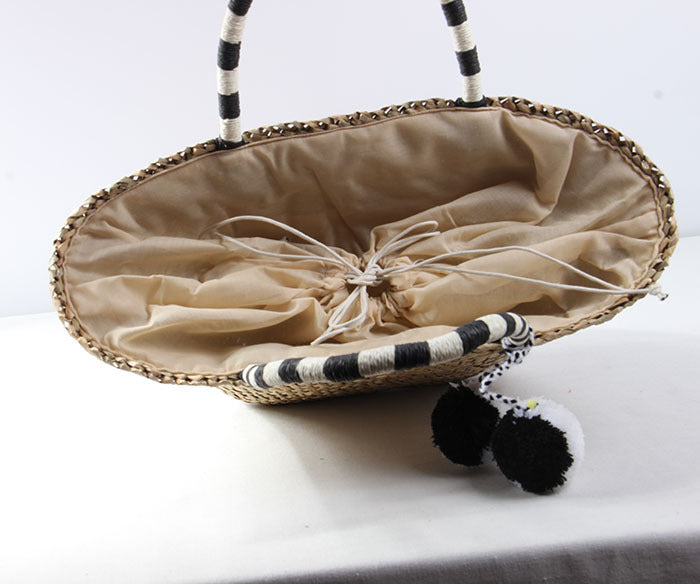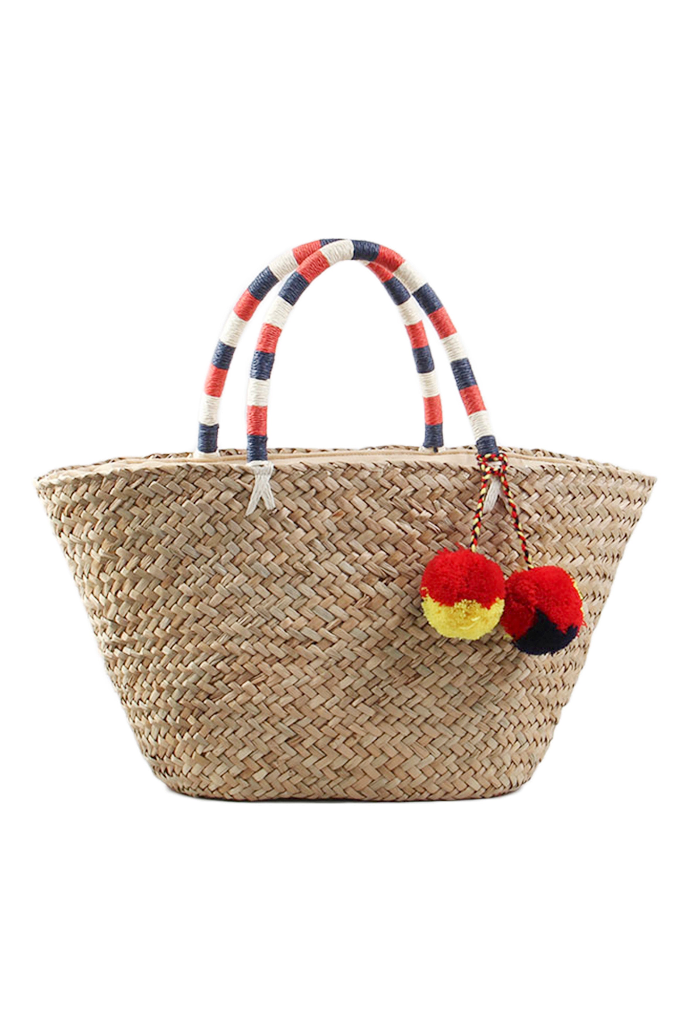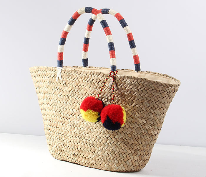 Bolso de playa de paja con pompones HB2370