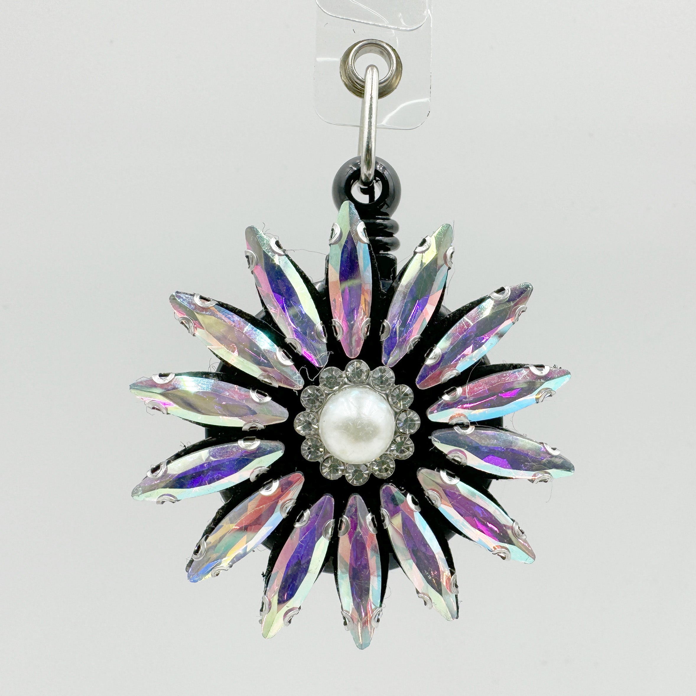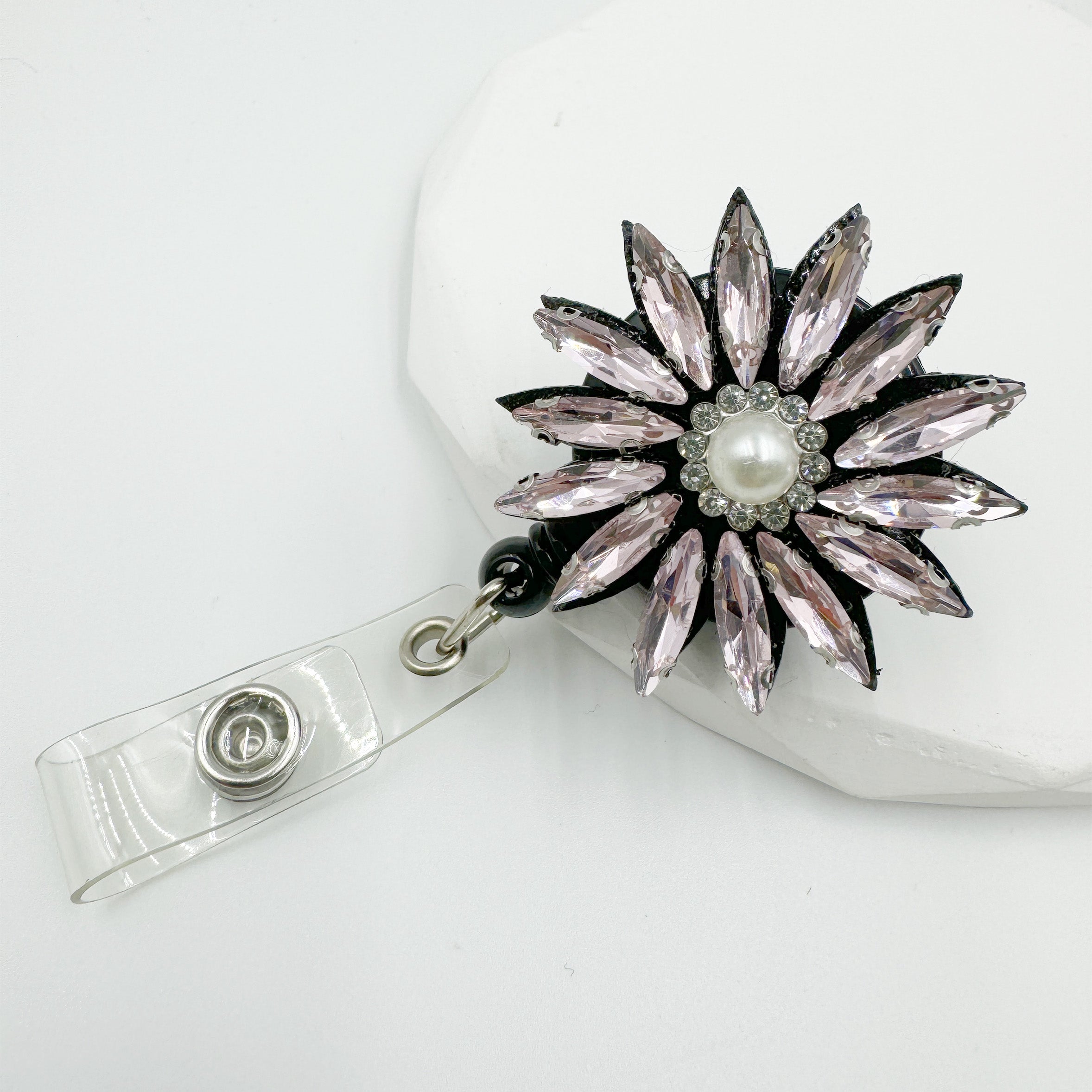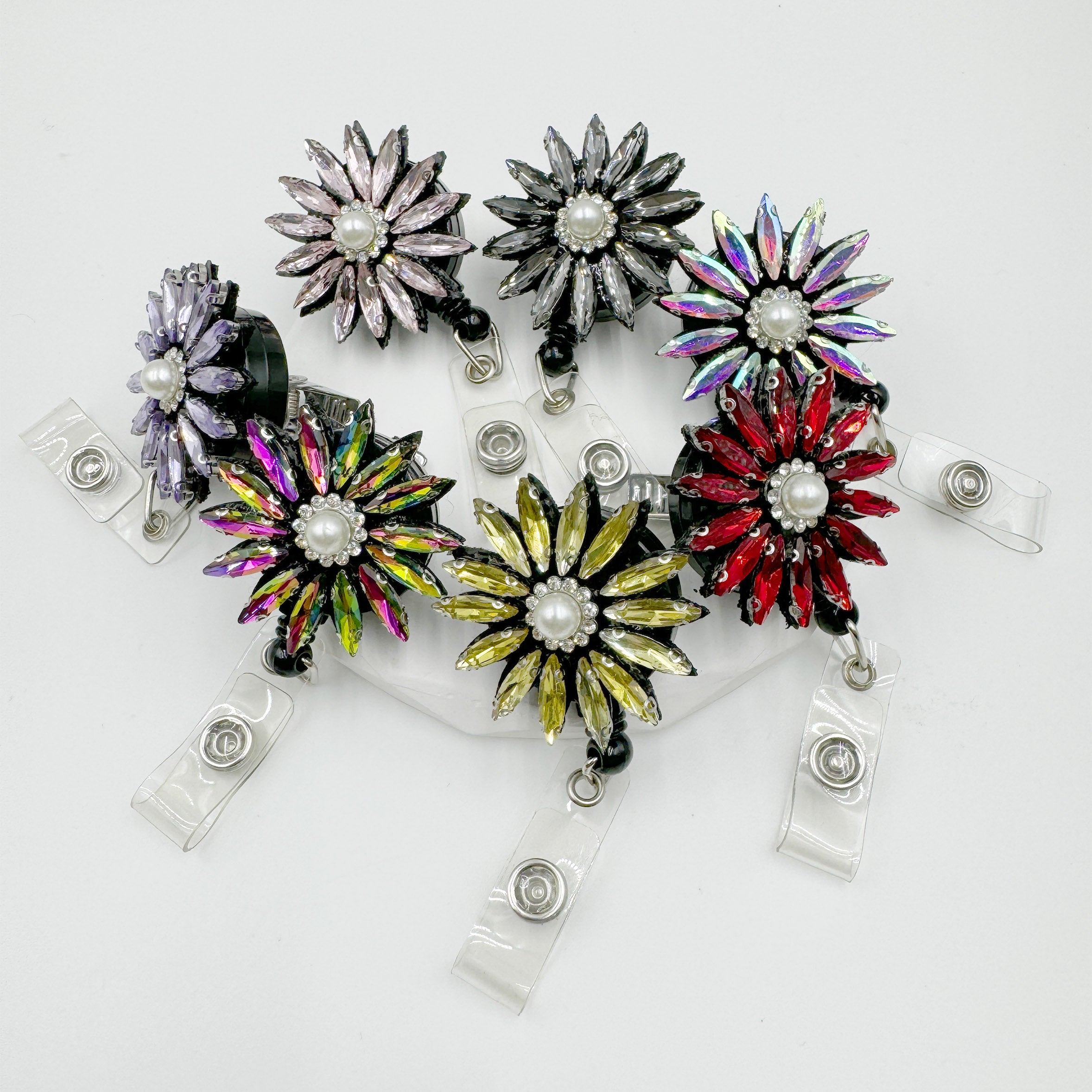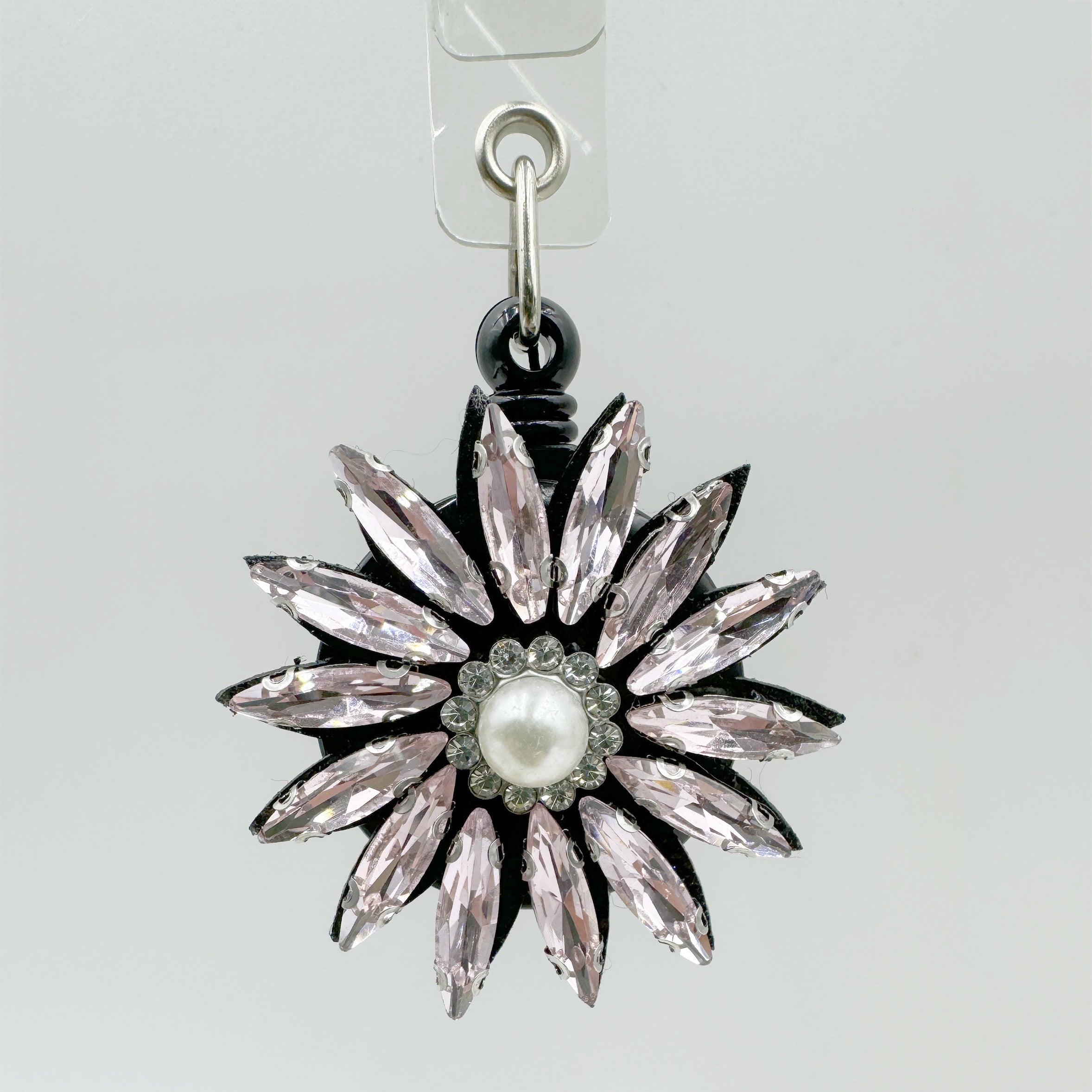 Hebilla porta credencial con diamantes de imitación y flores MIS1007