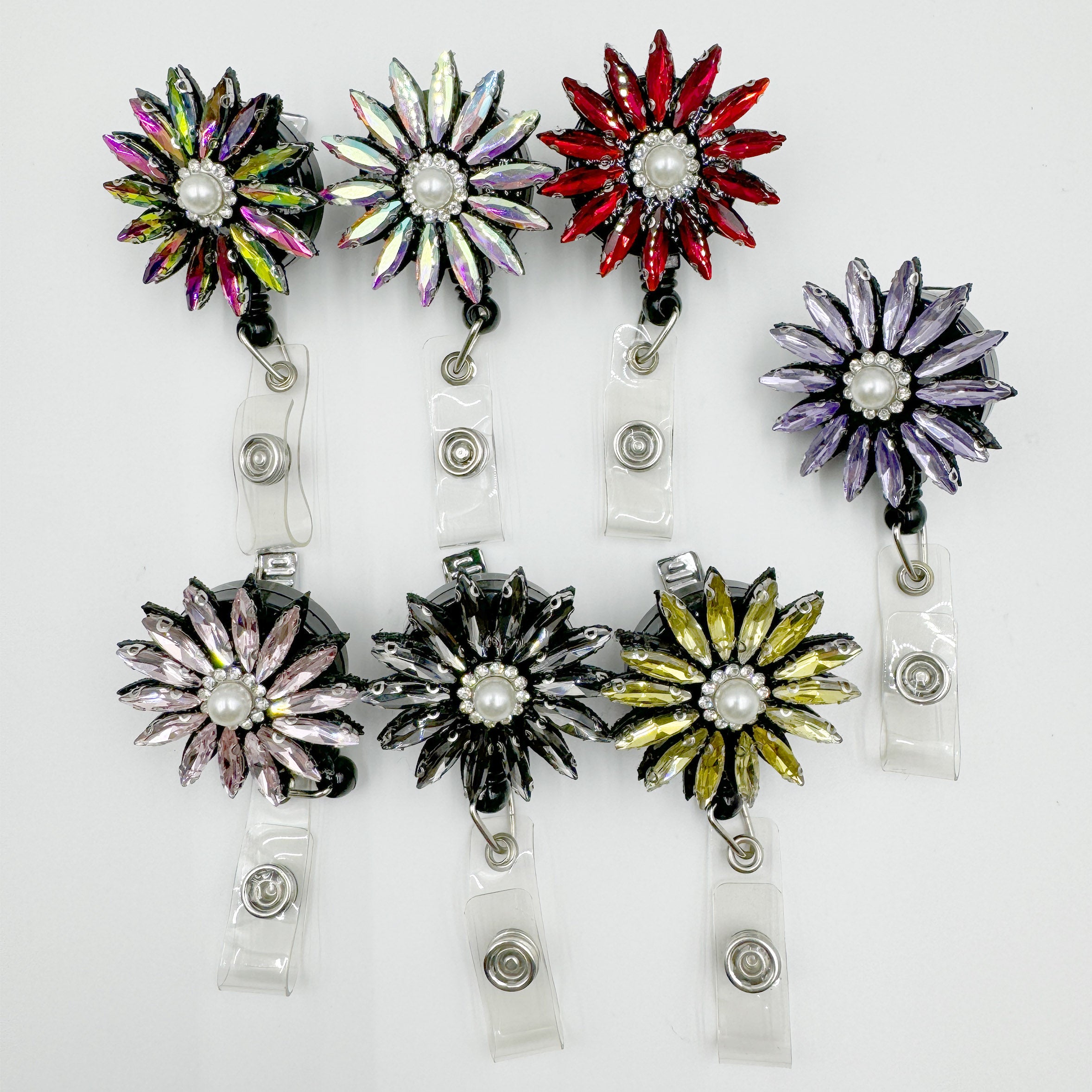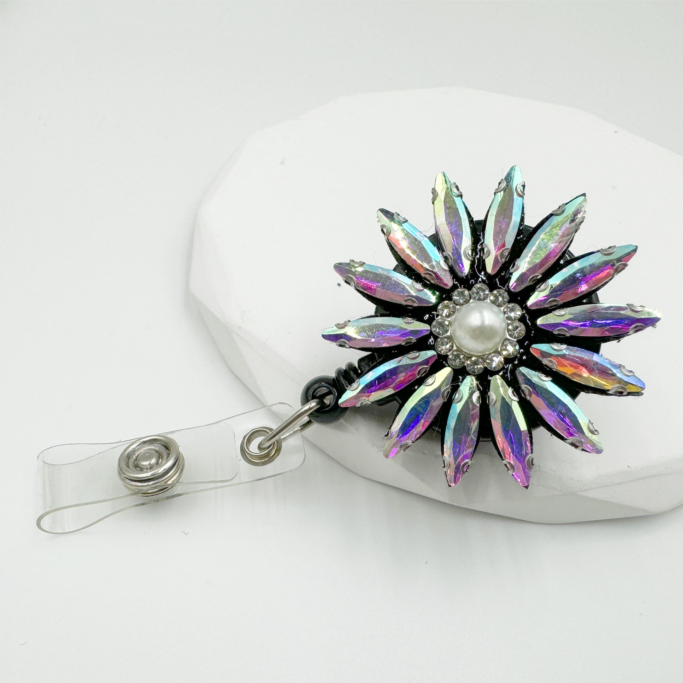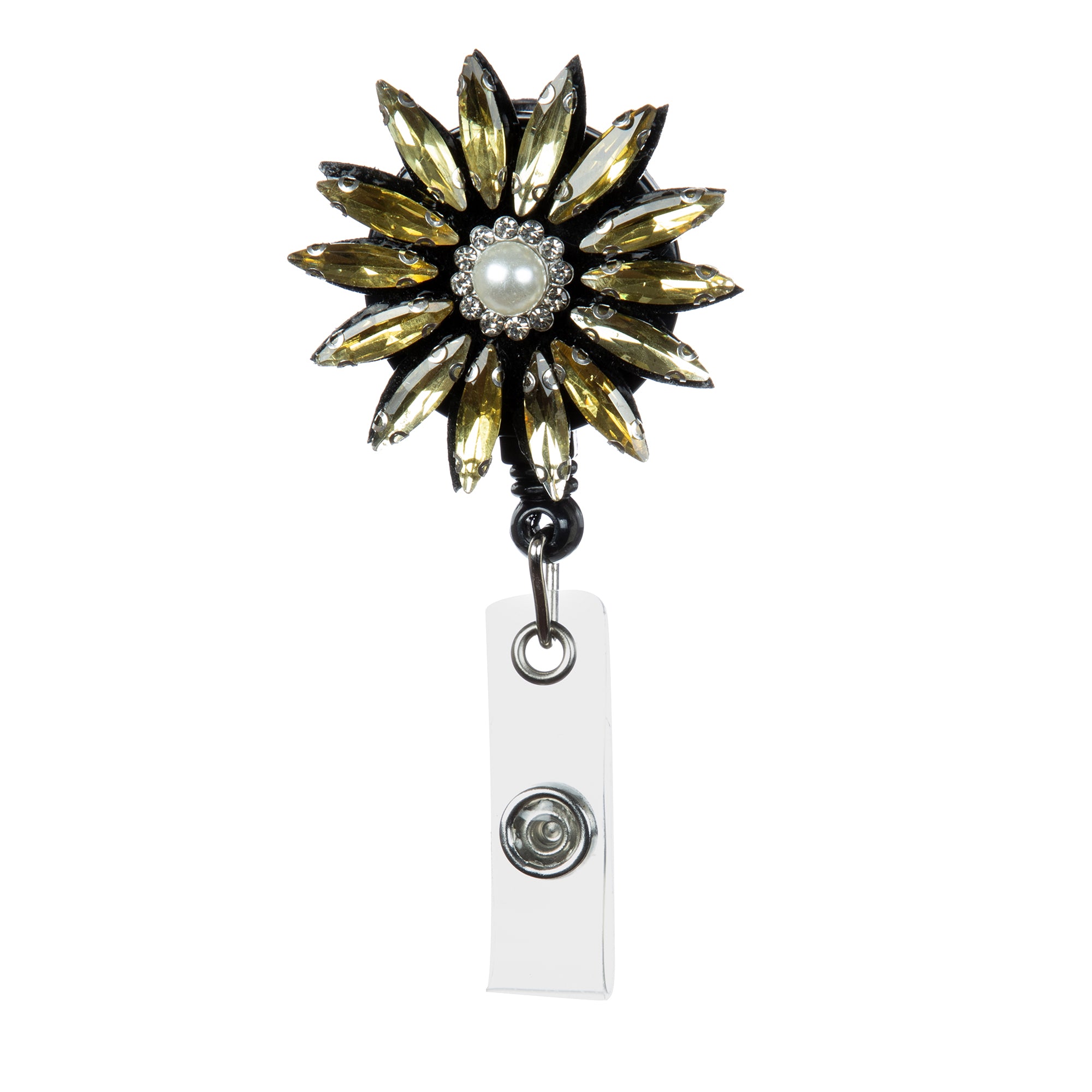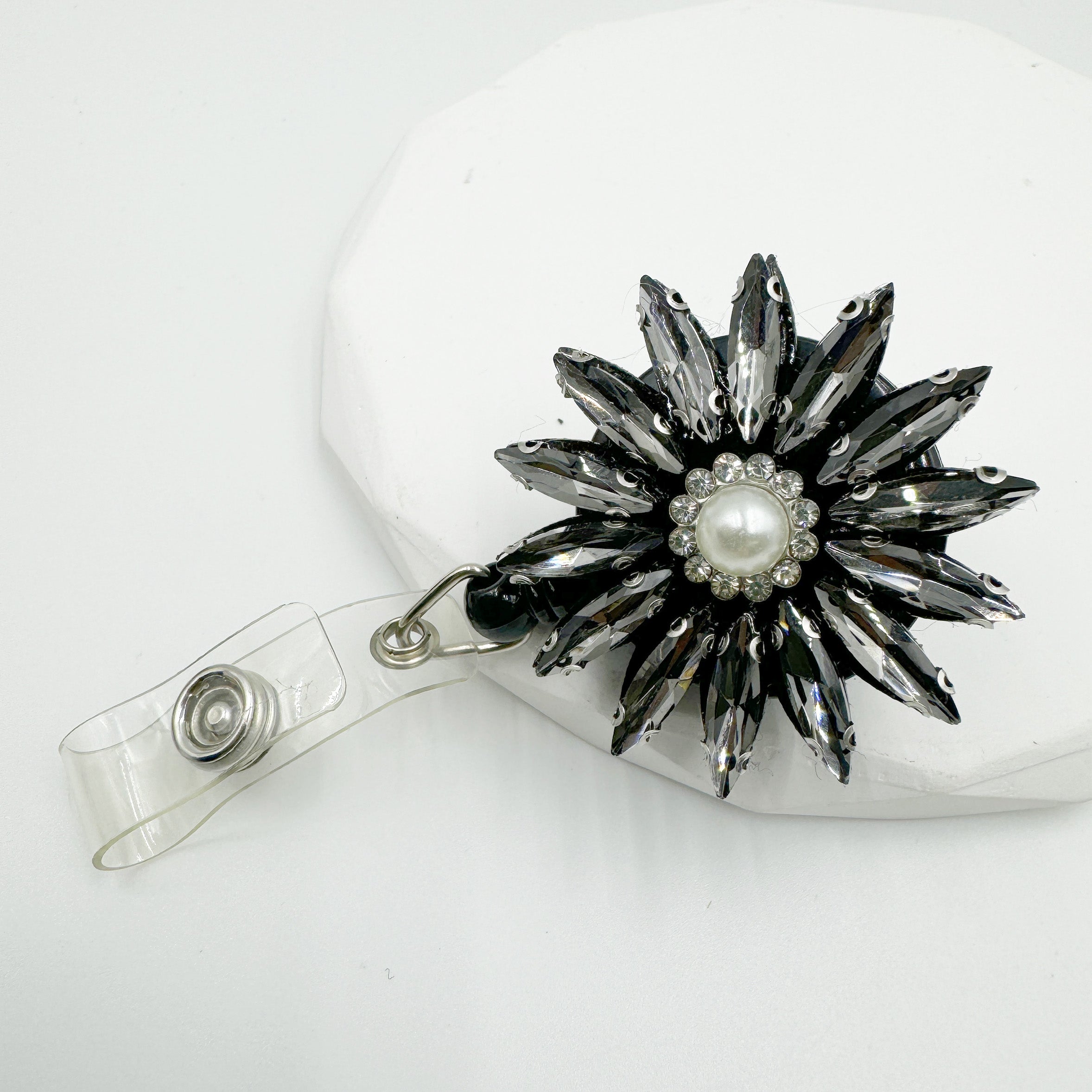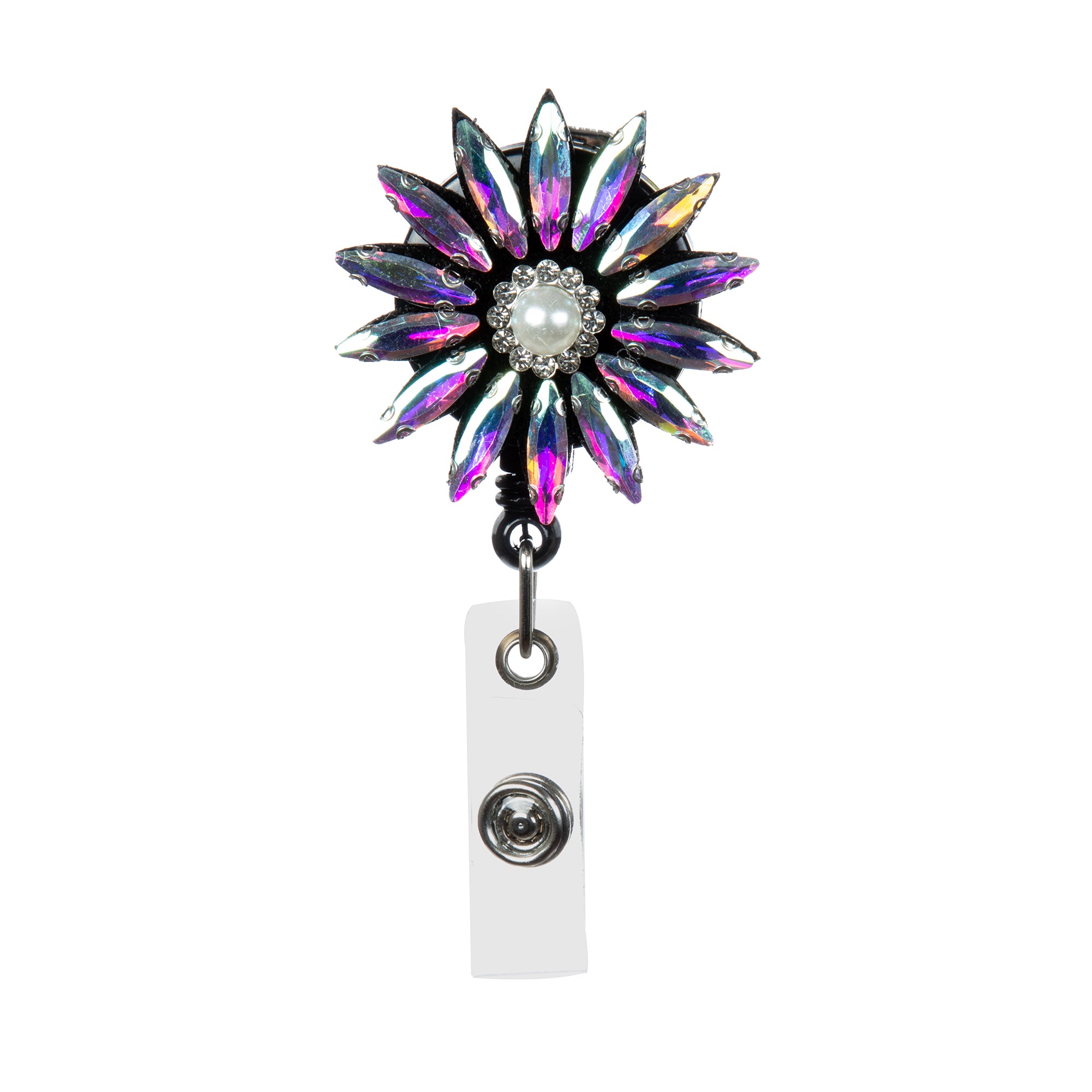 Hebilla porta credencial con diamantes de imitación y flores MIS1007