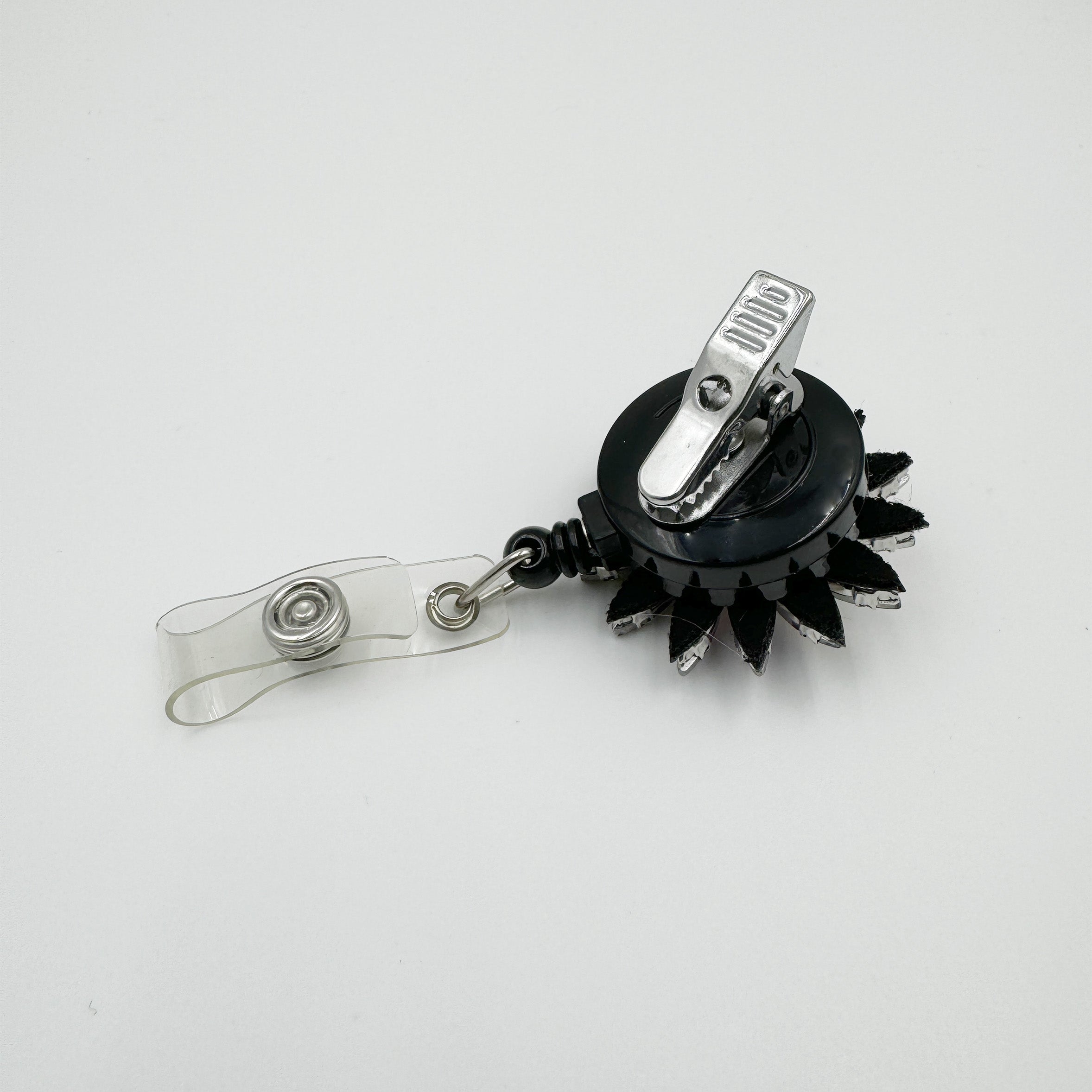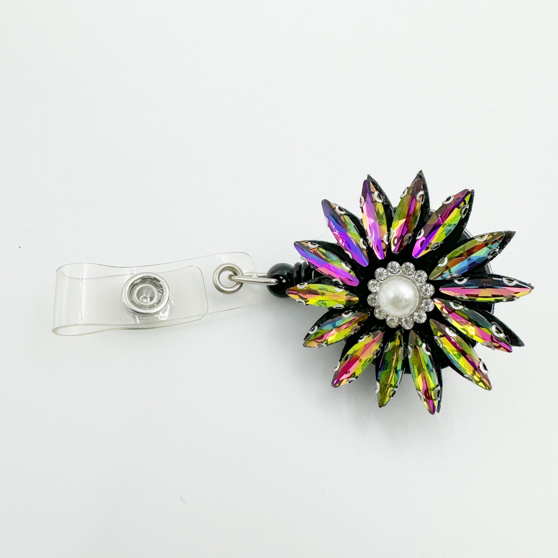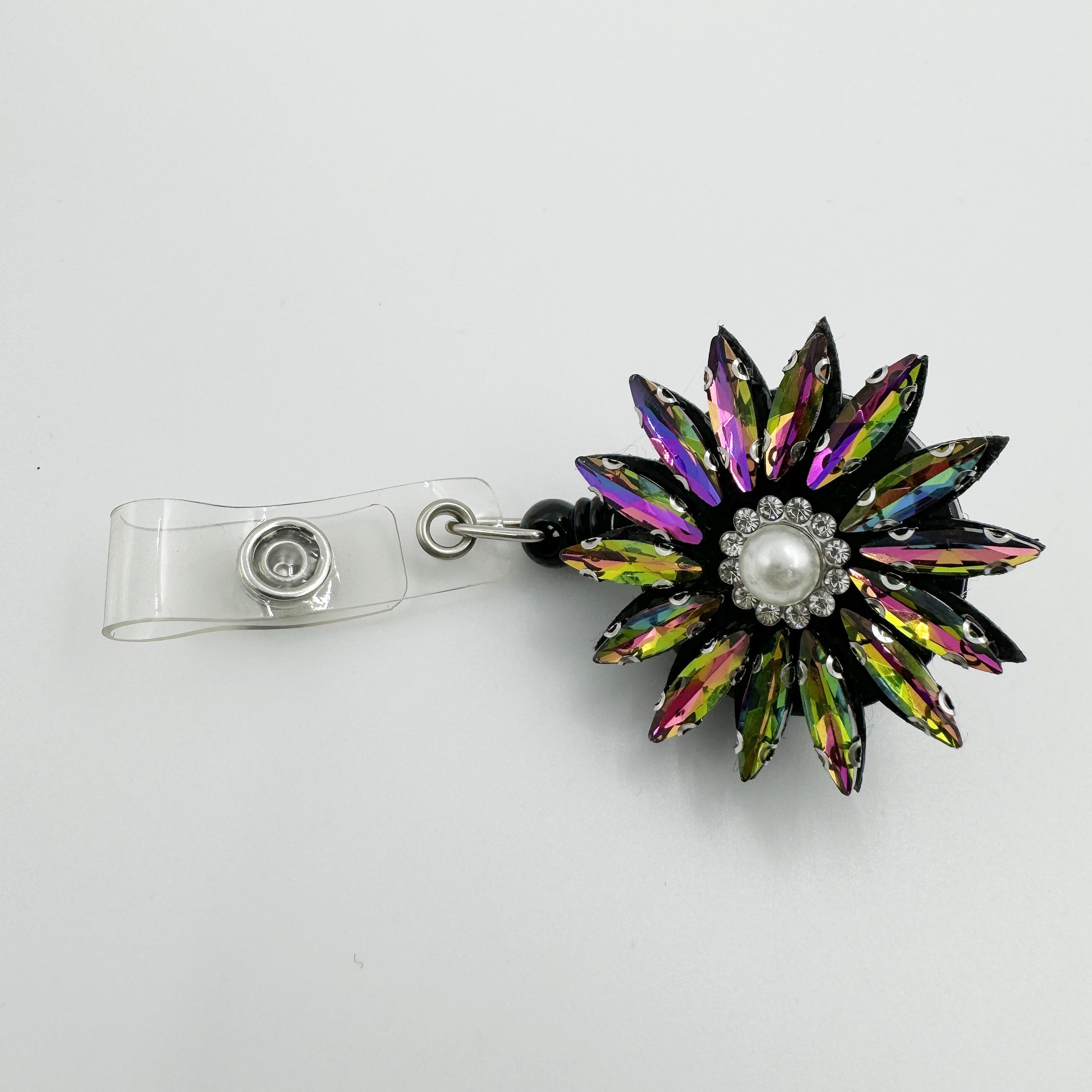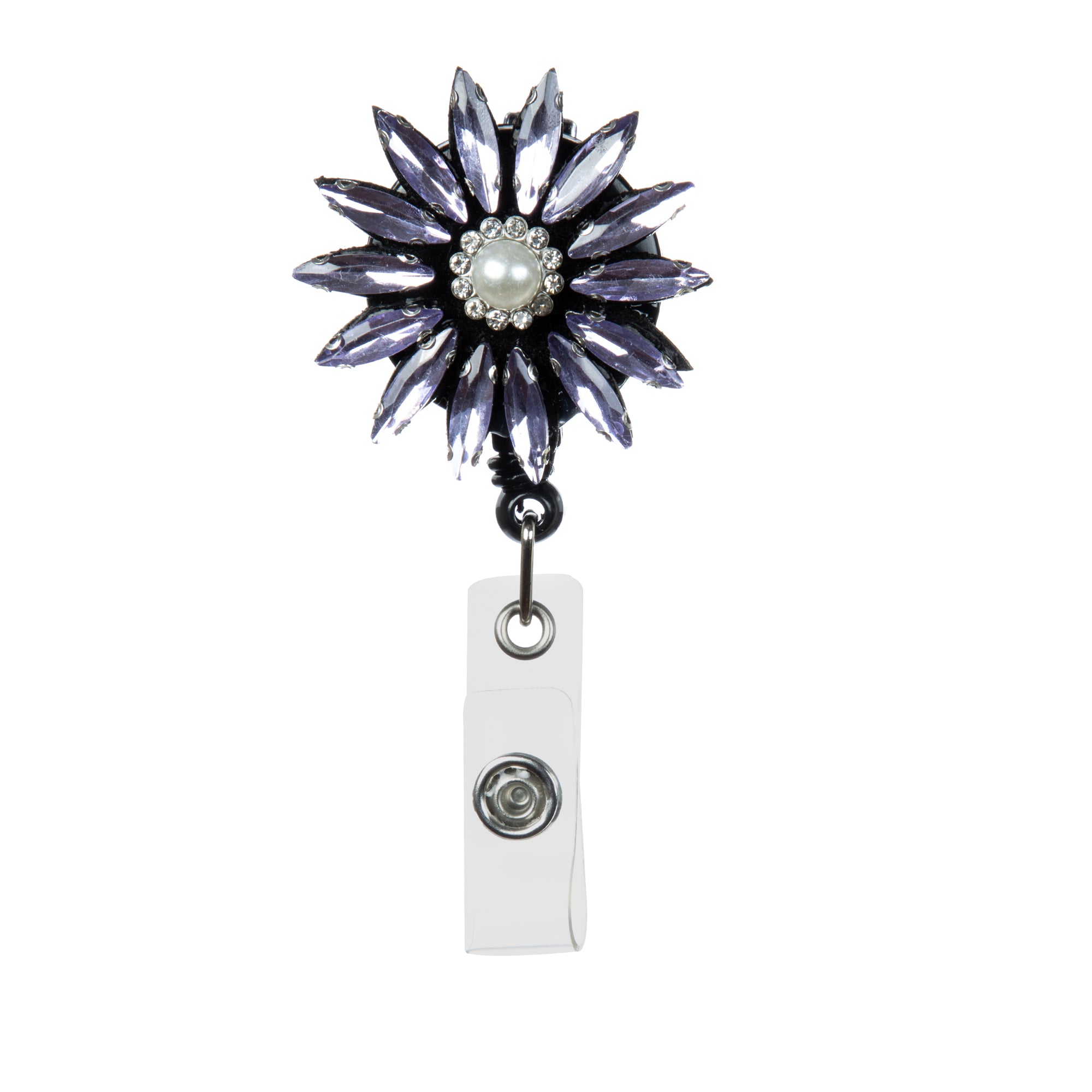 Hebilla porta credencial con diamantes de imitación y flores MIS1007