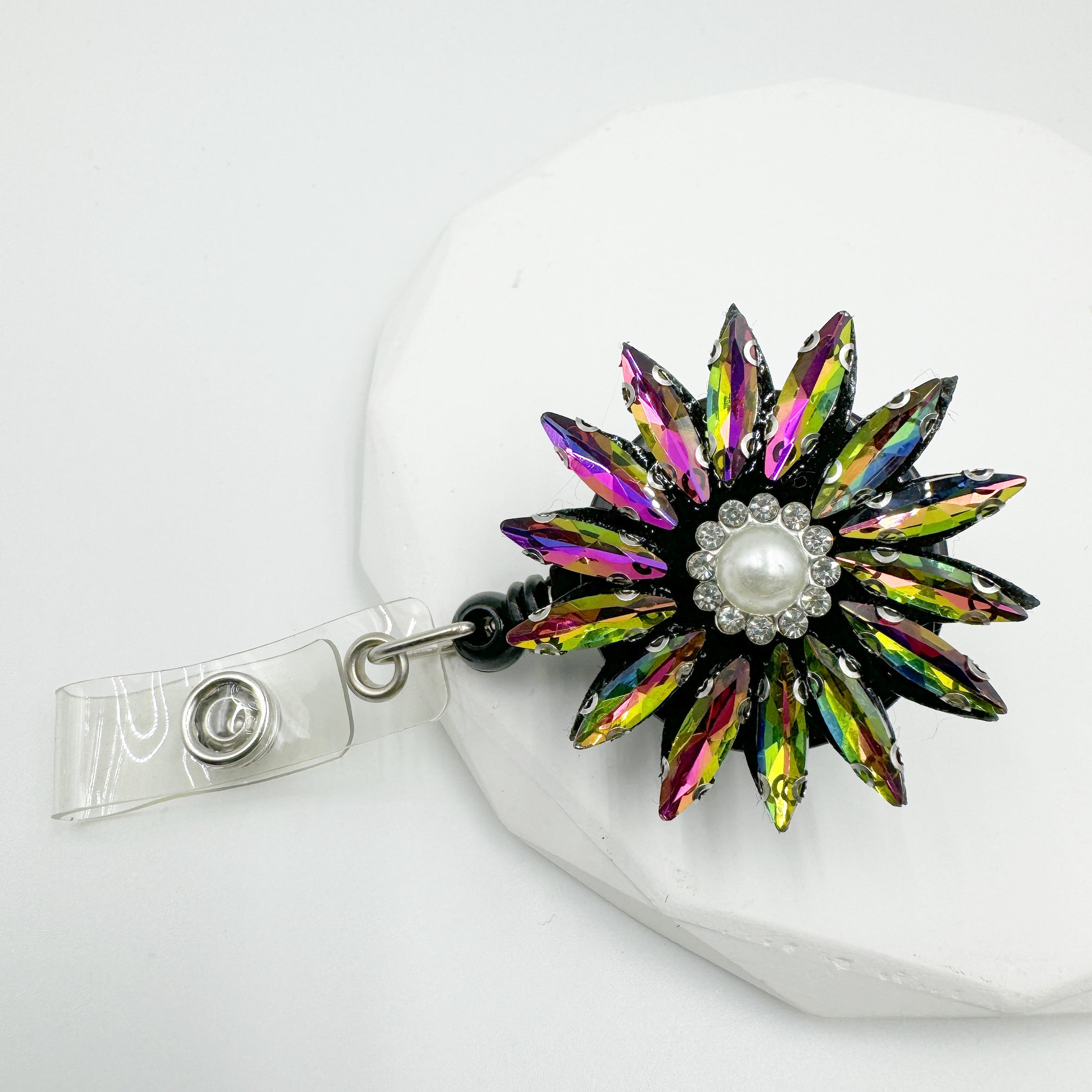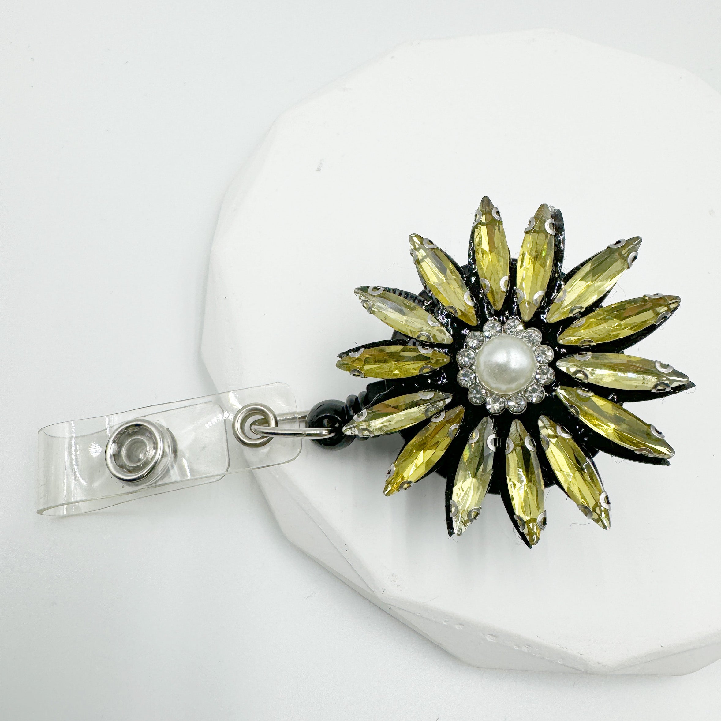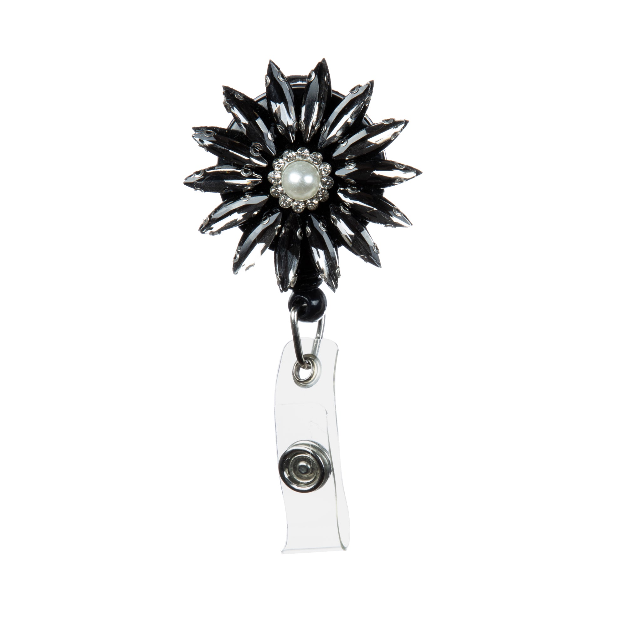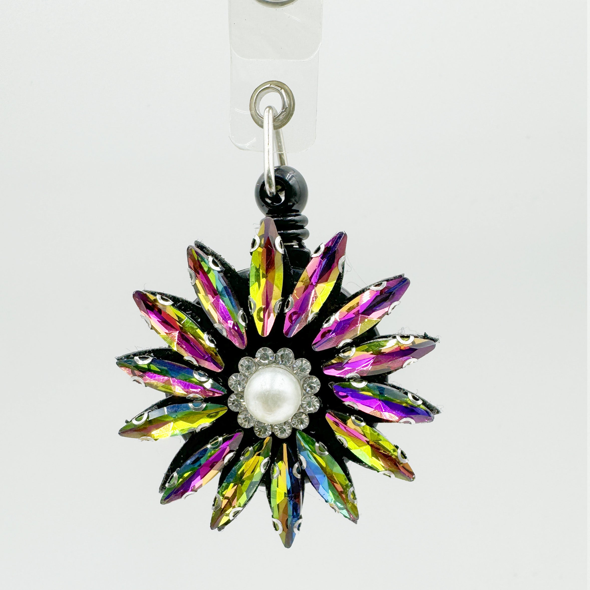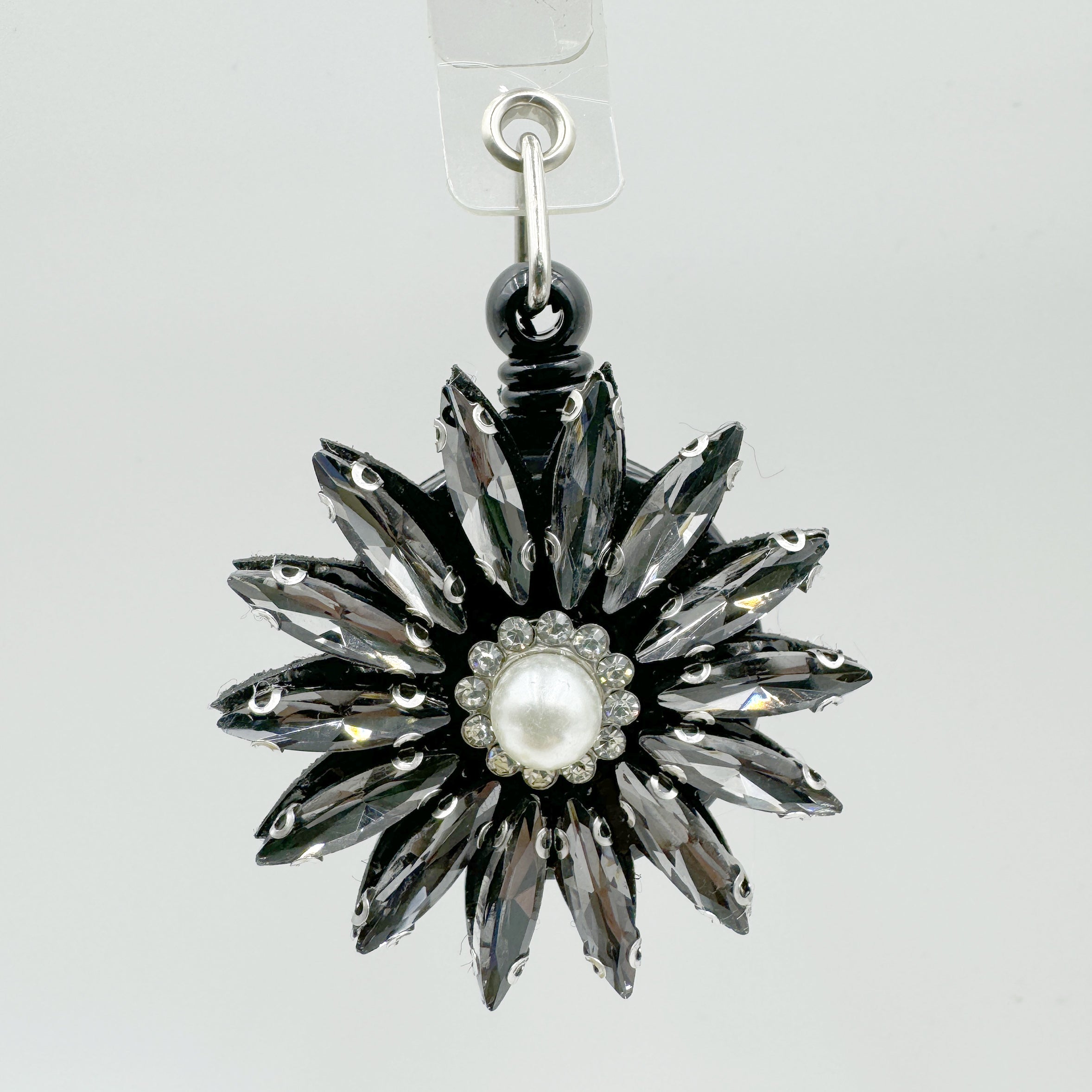 Hebilla porta credencial con diamantes de imitación y flores MIS1007