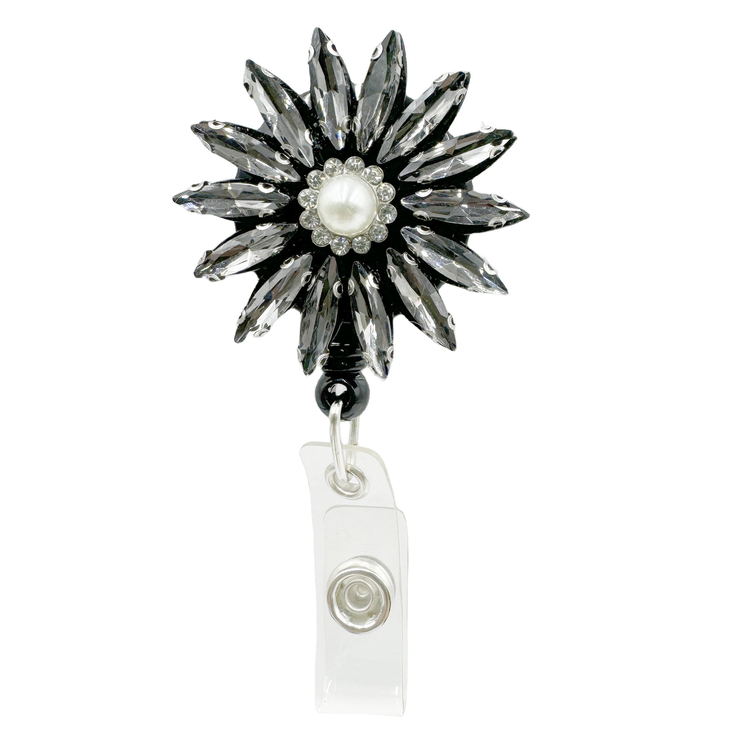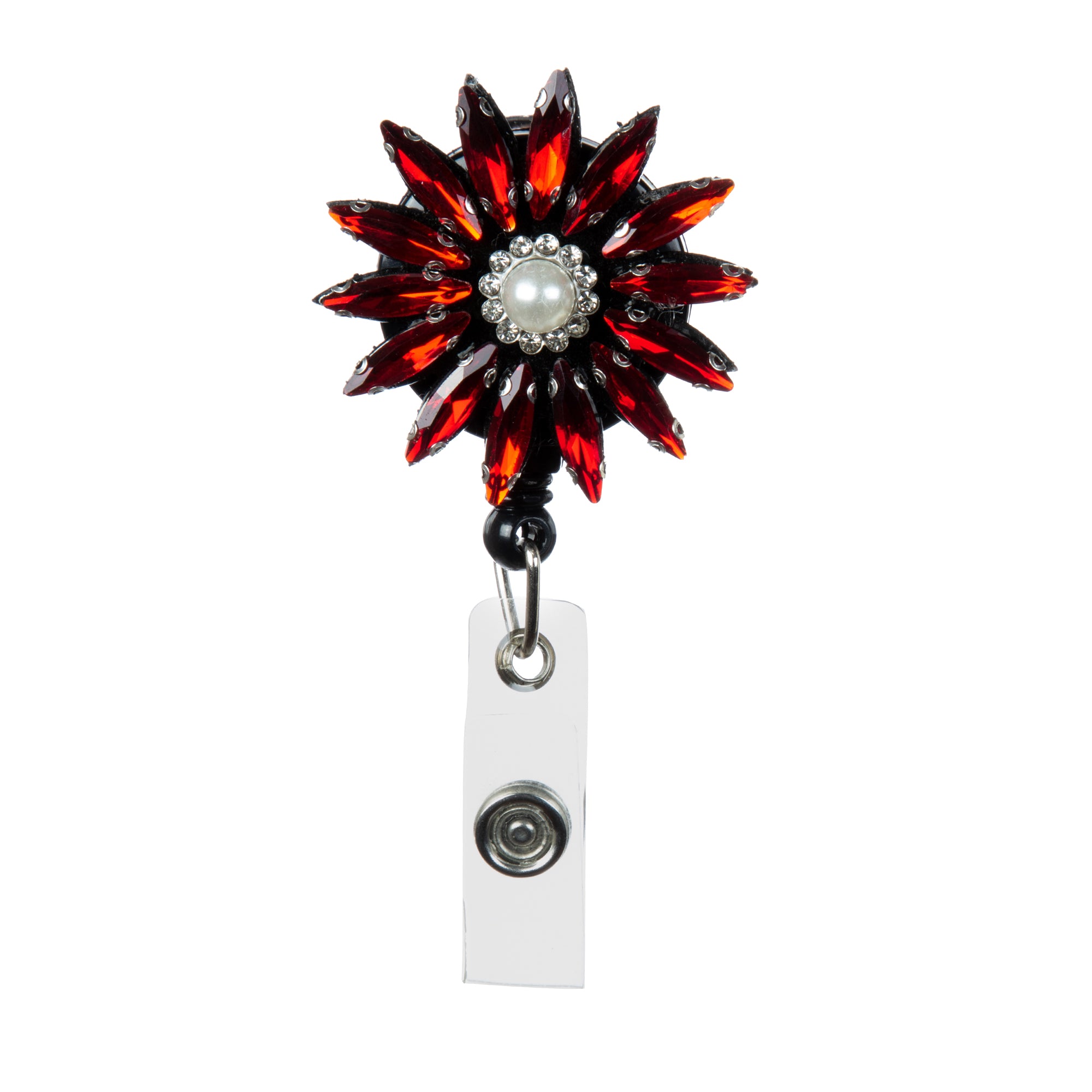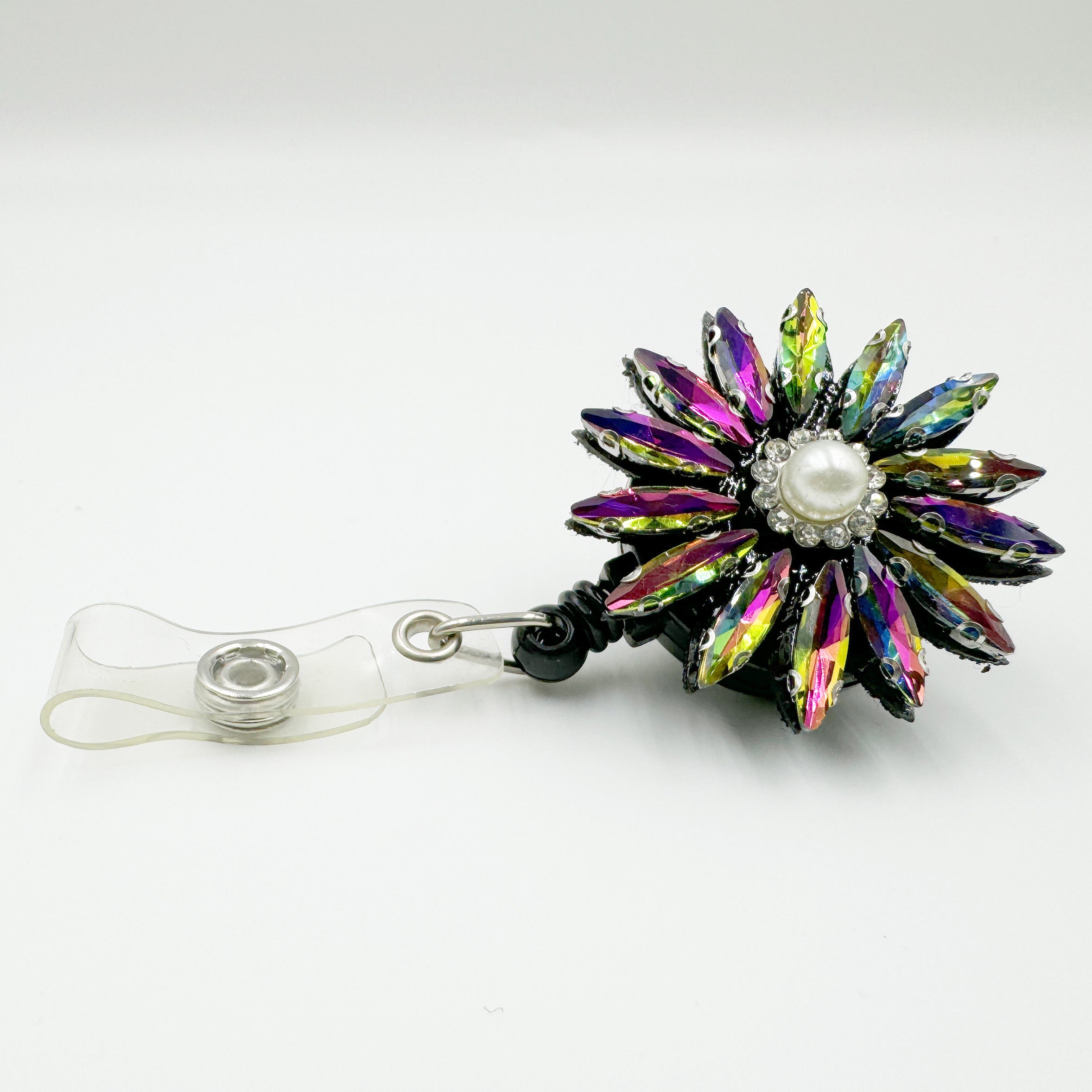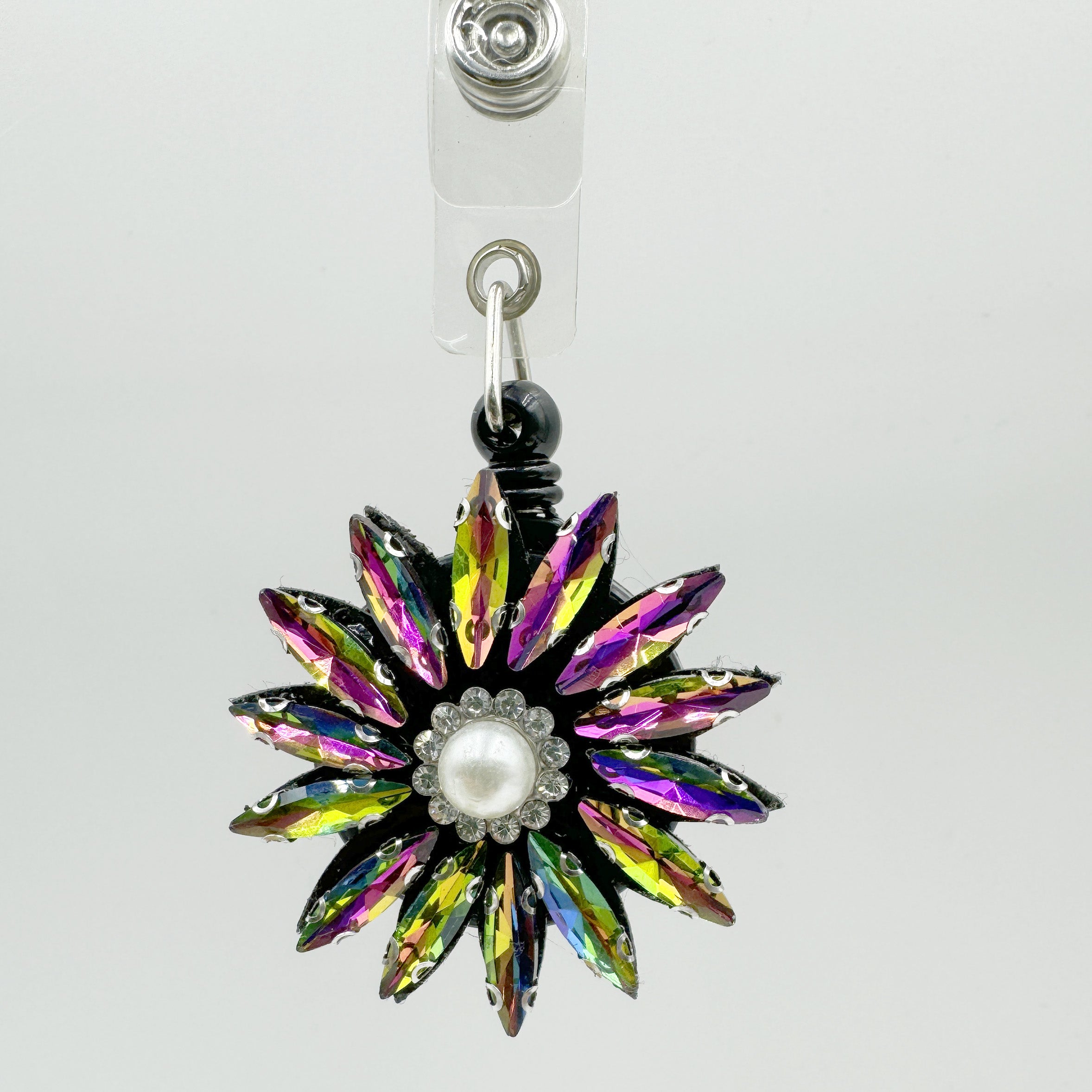 Hebilla porta credencial con diamantes de imitación y flores MIS1007