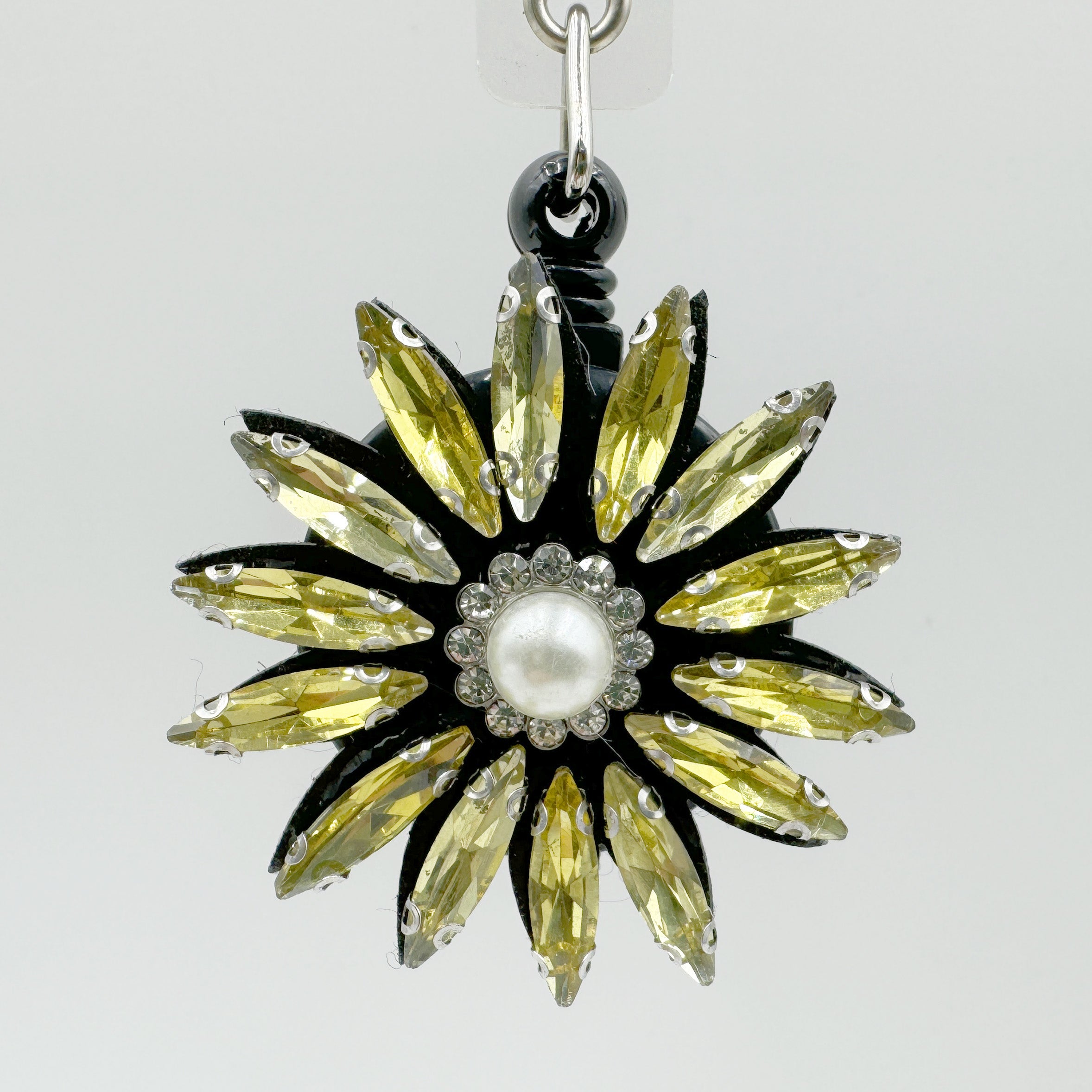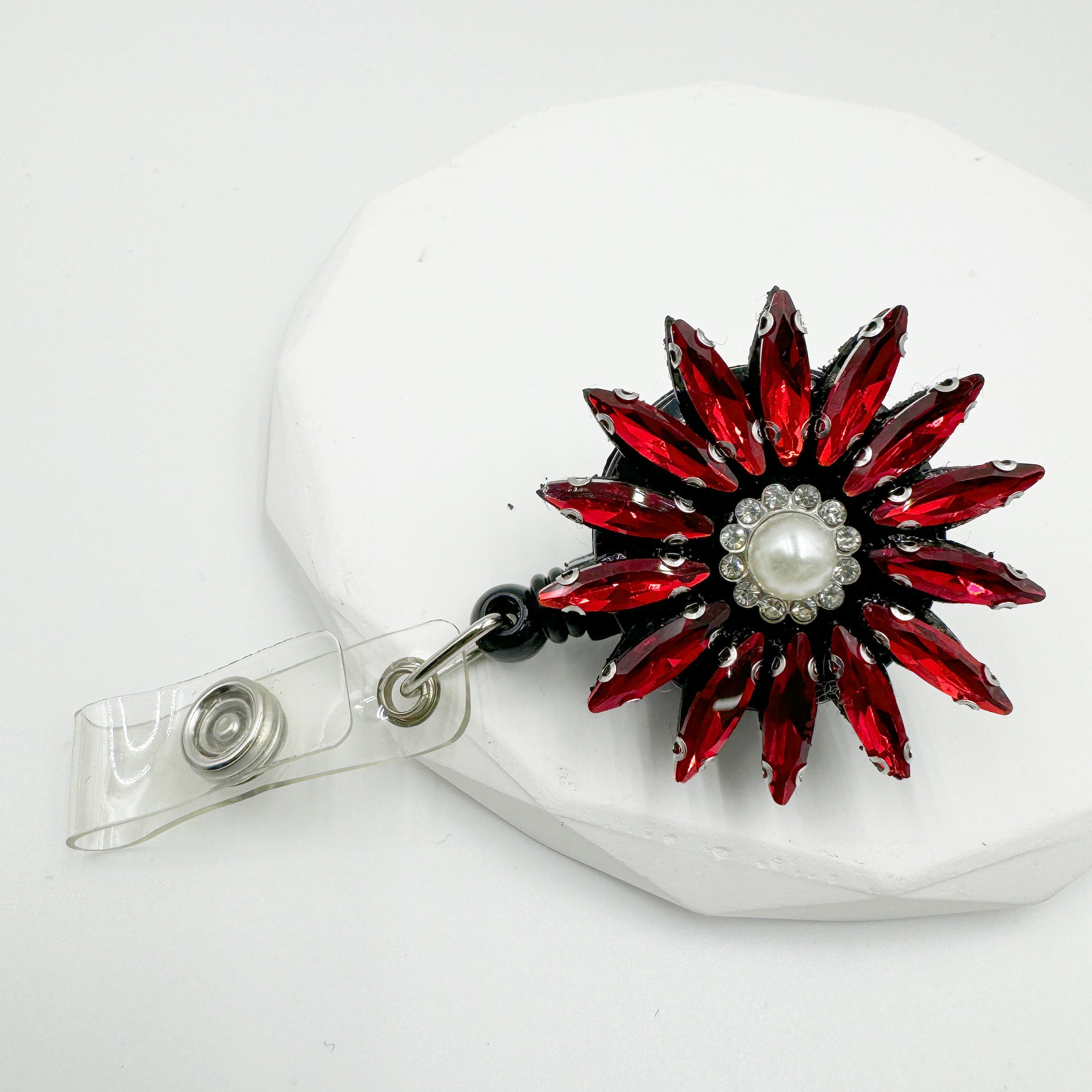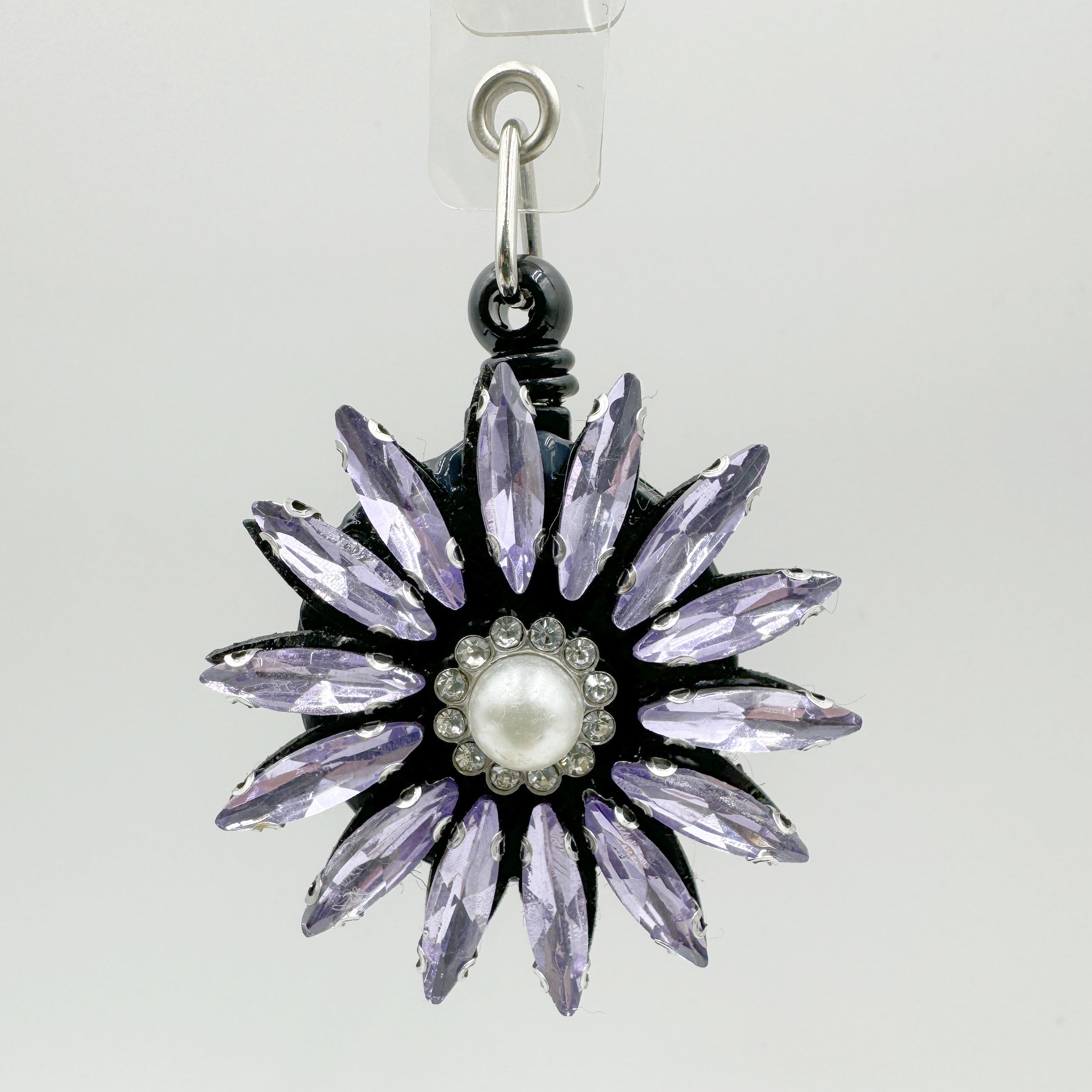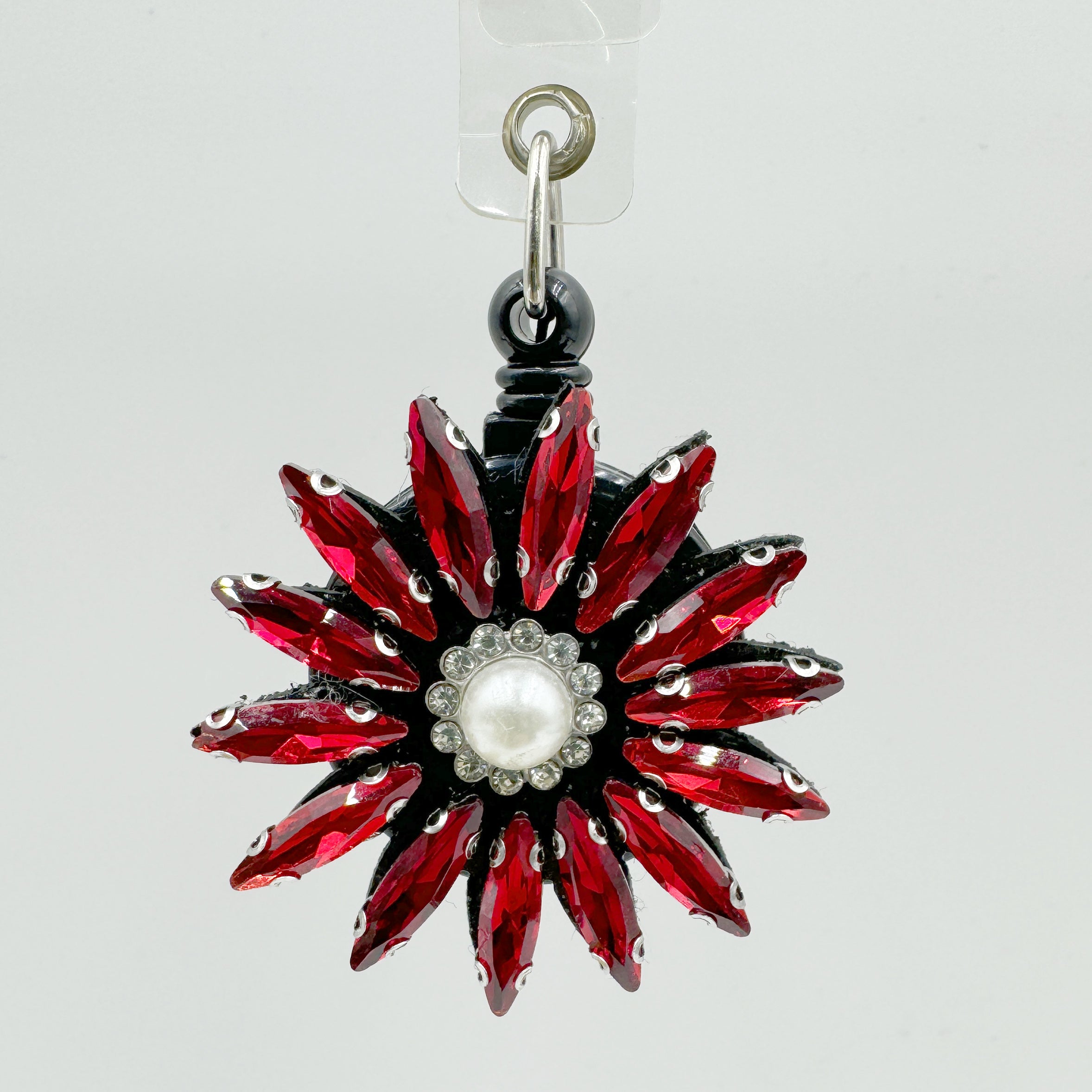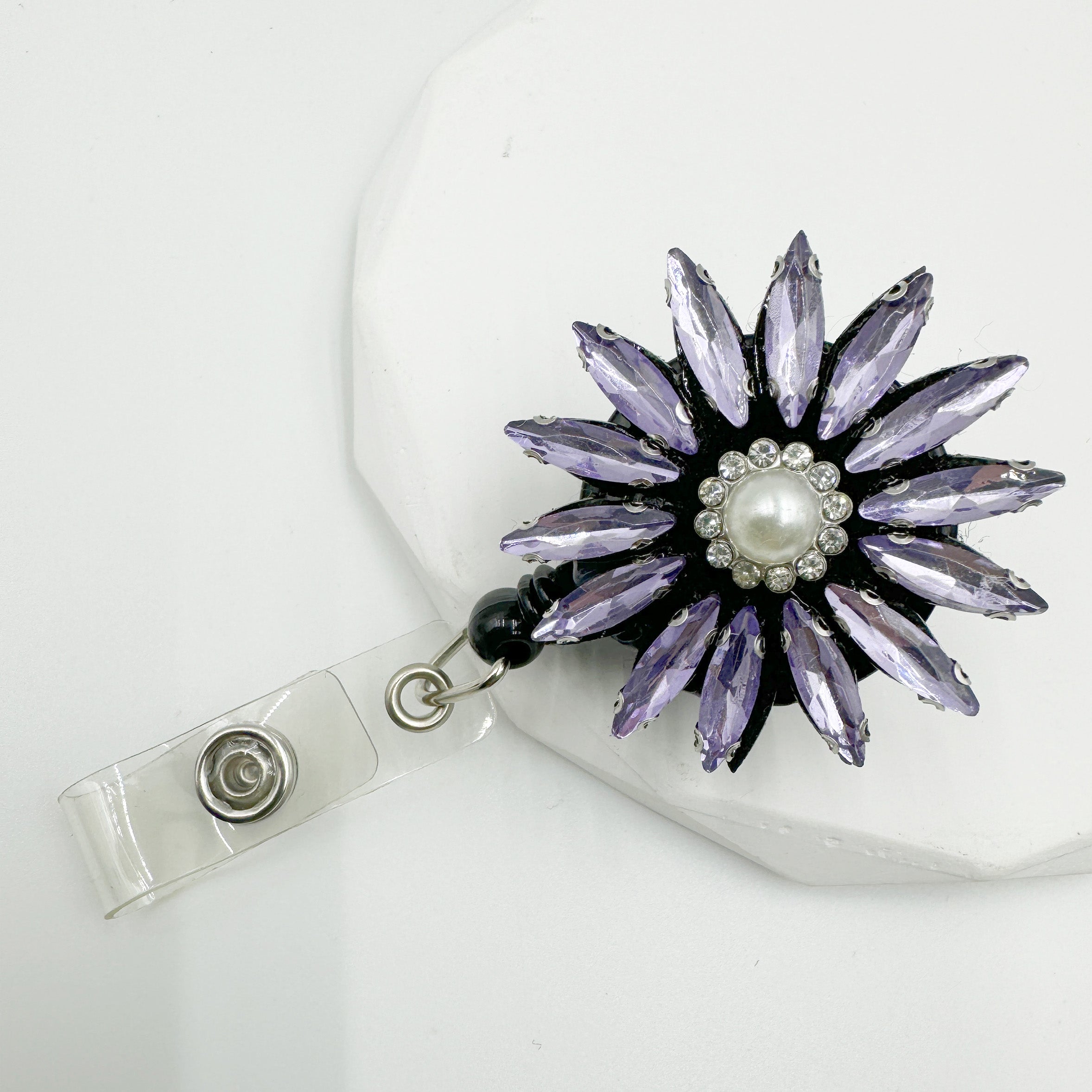 Hebilla porta credencial con diamantes de imitación y flores MIS1007