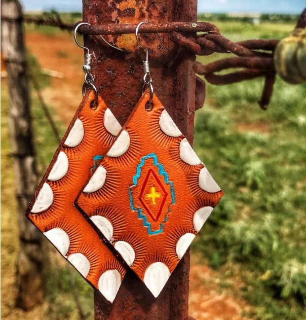 Pendientes de piel sintética con forma de diamante E6795