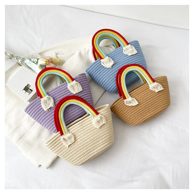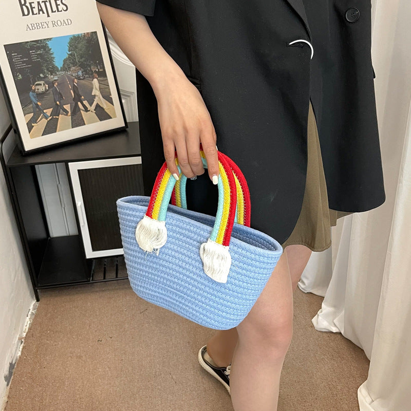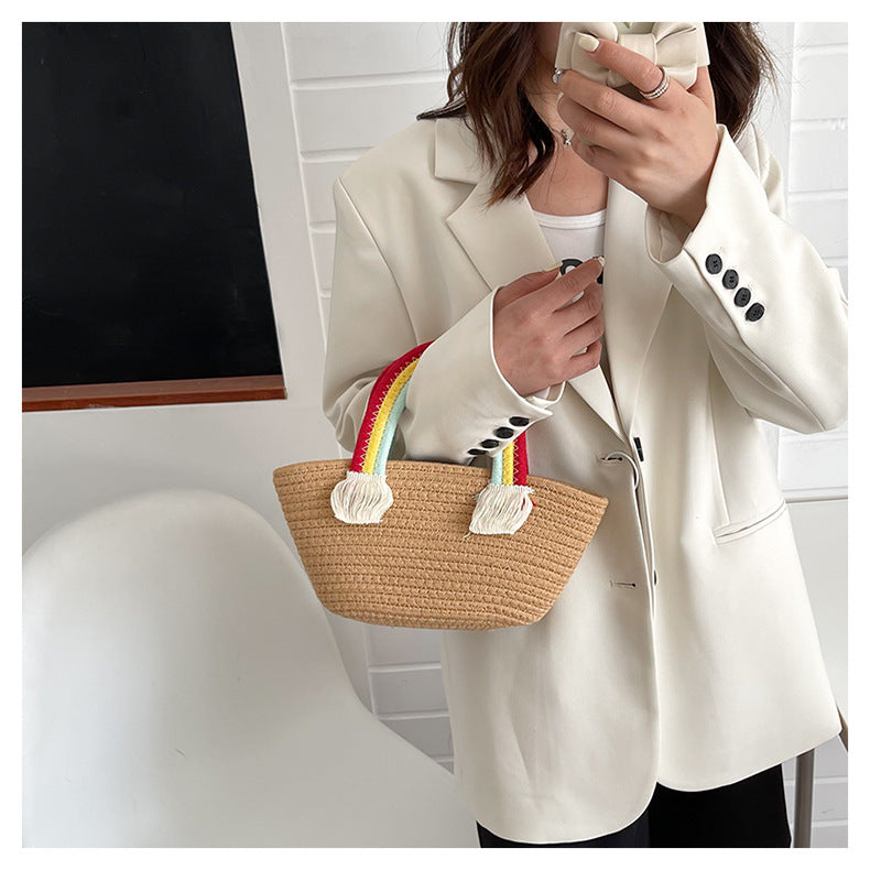 Mini bolso de mano de paja arcoíris HB2037