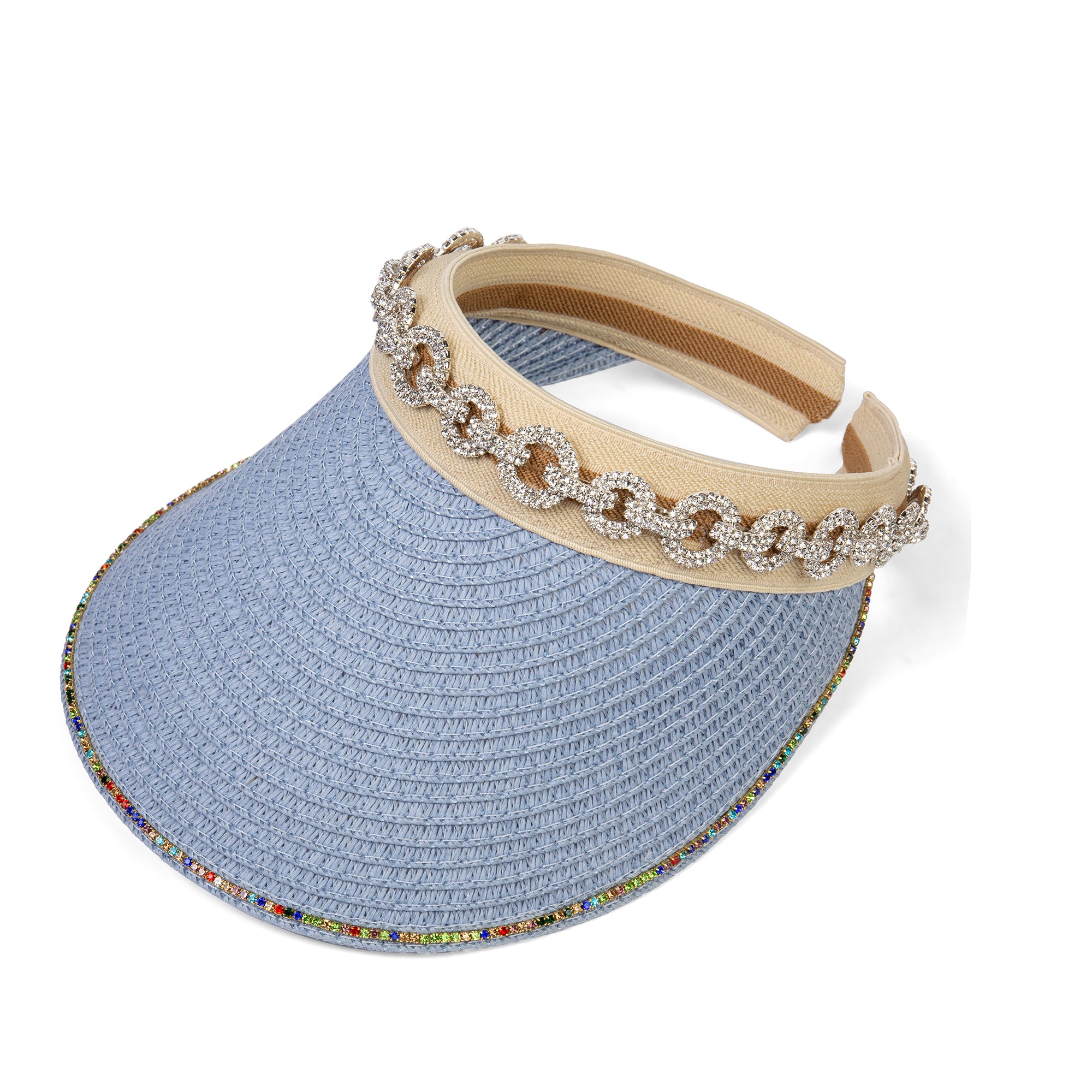 Sombrero de paja con diamantes de imitación hecho a mano C0172