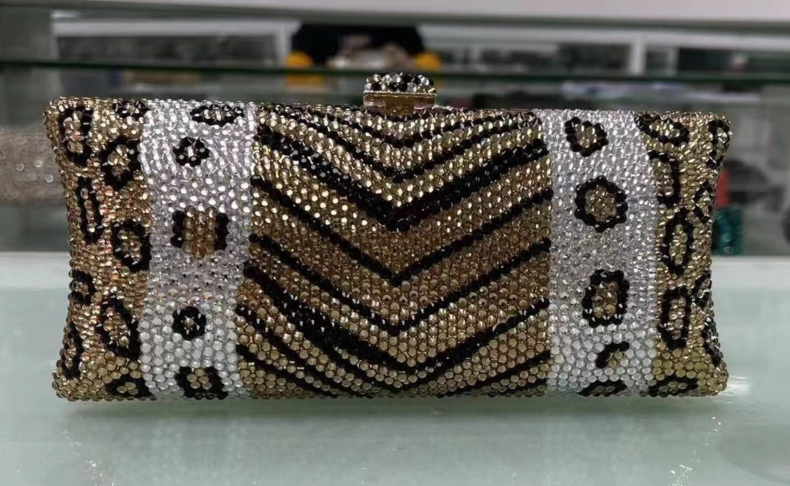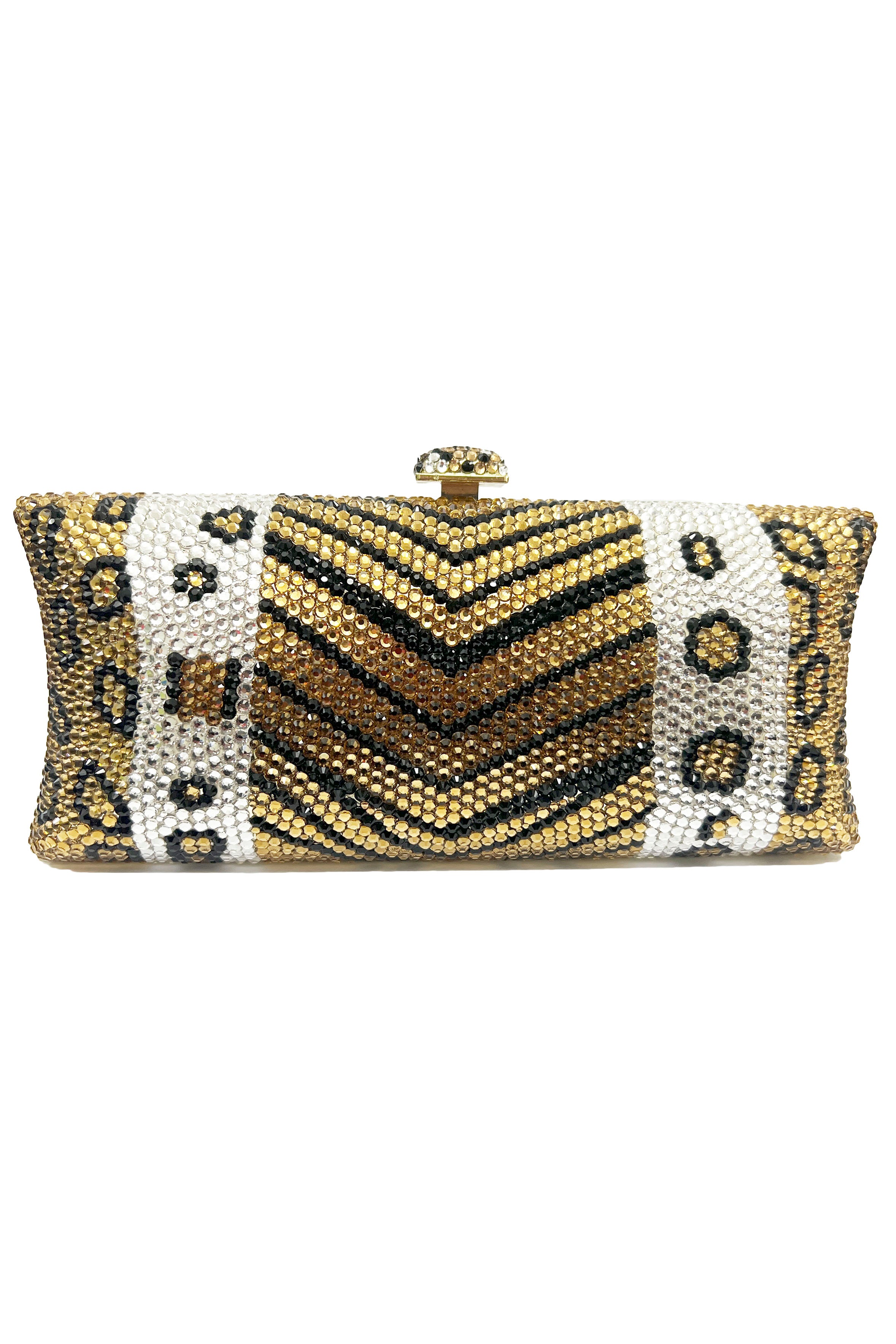 Bolso de noche rectangular con diamantes de imitación y estampado animal HB2417