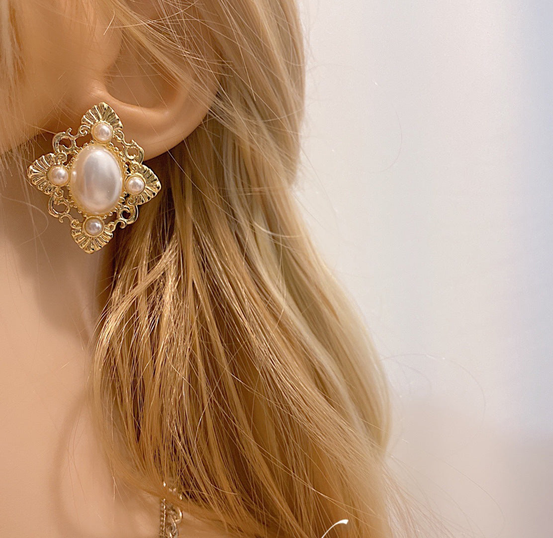 Pendientes de clip con perlas barrocas ovaladas E7899