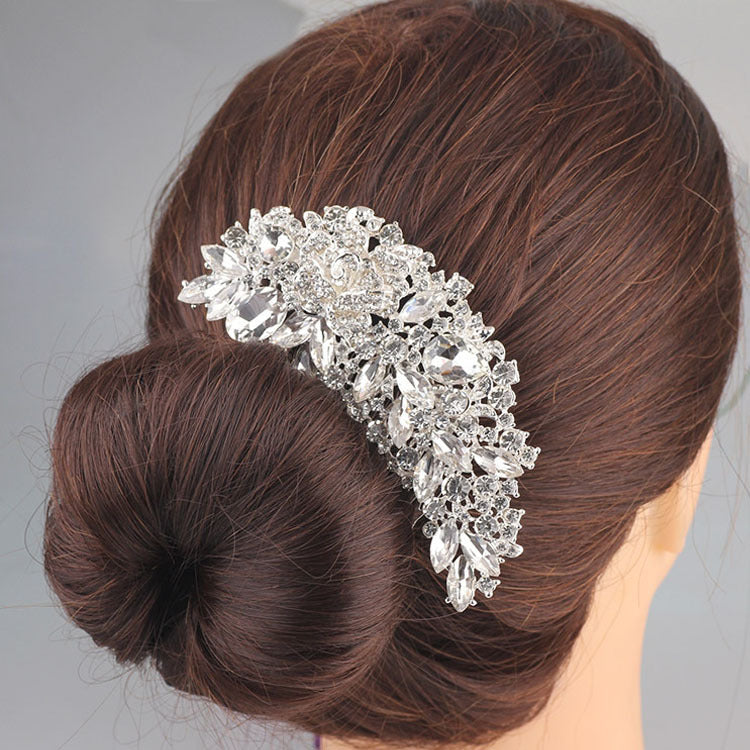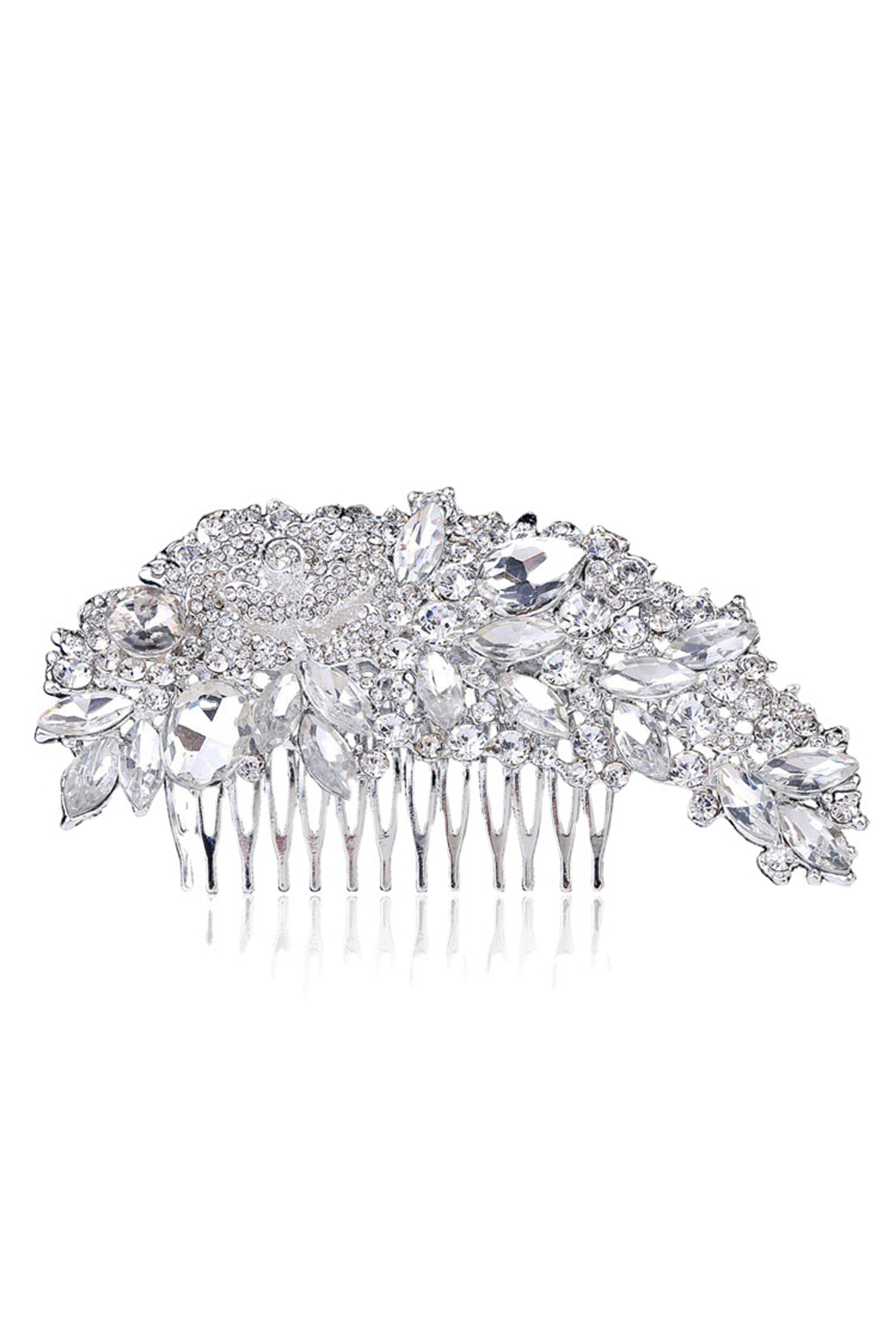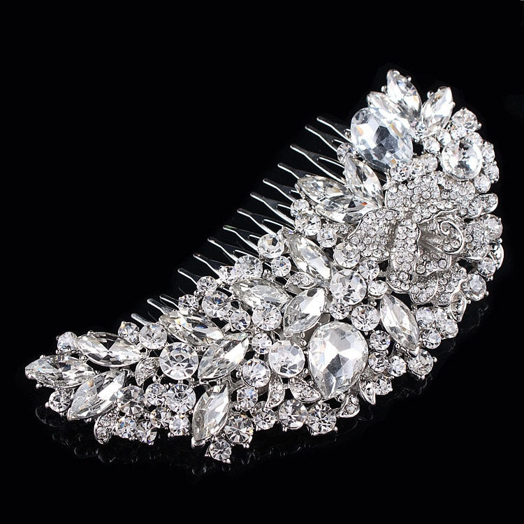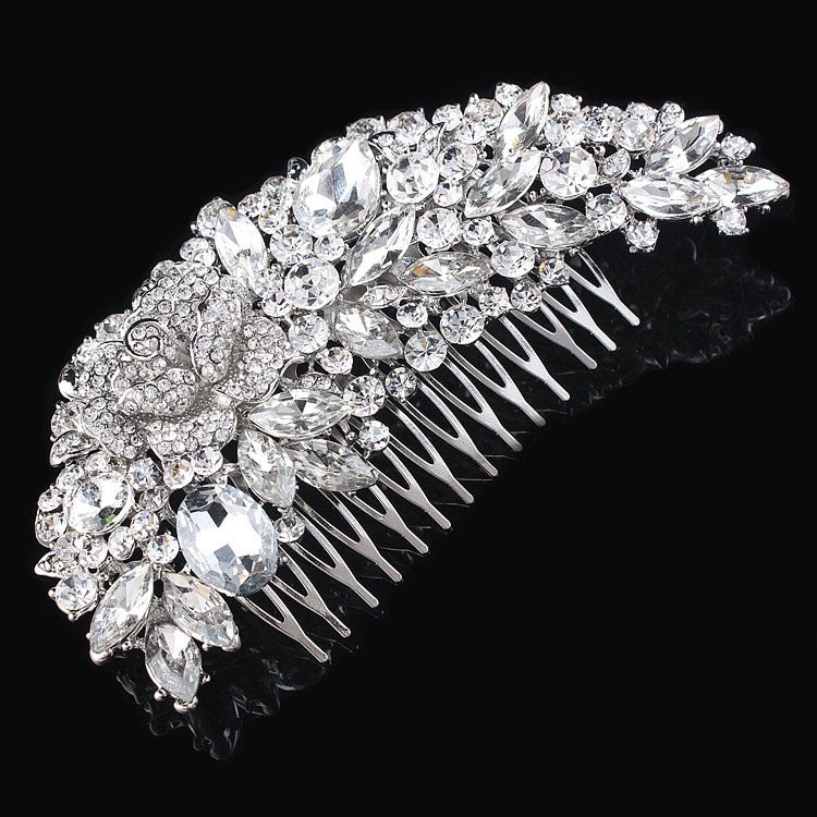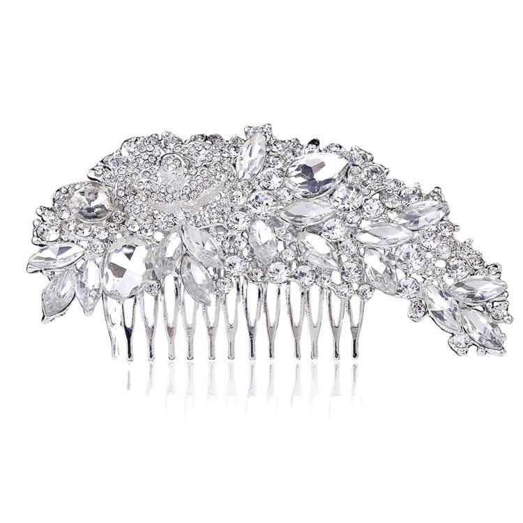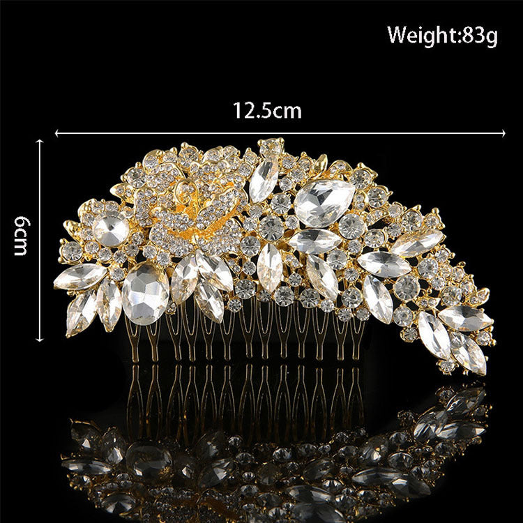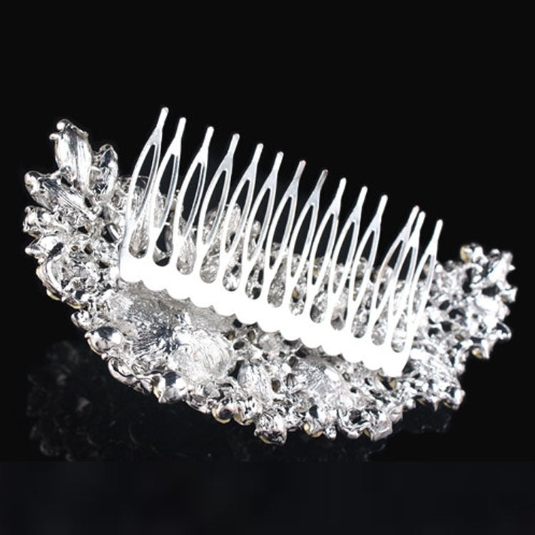 Este peine para el cabello con diamantes de imitación barrocos L4271 presenta diamantes de imitación y material de aleación, con un tamaño de 12,5 * 6 cm y un peso de 83 g.