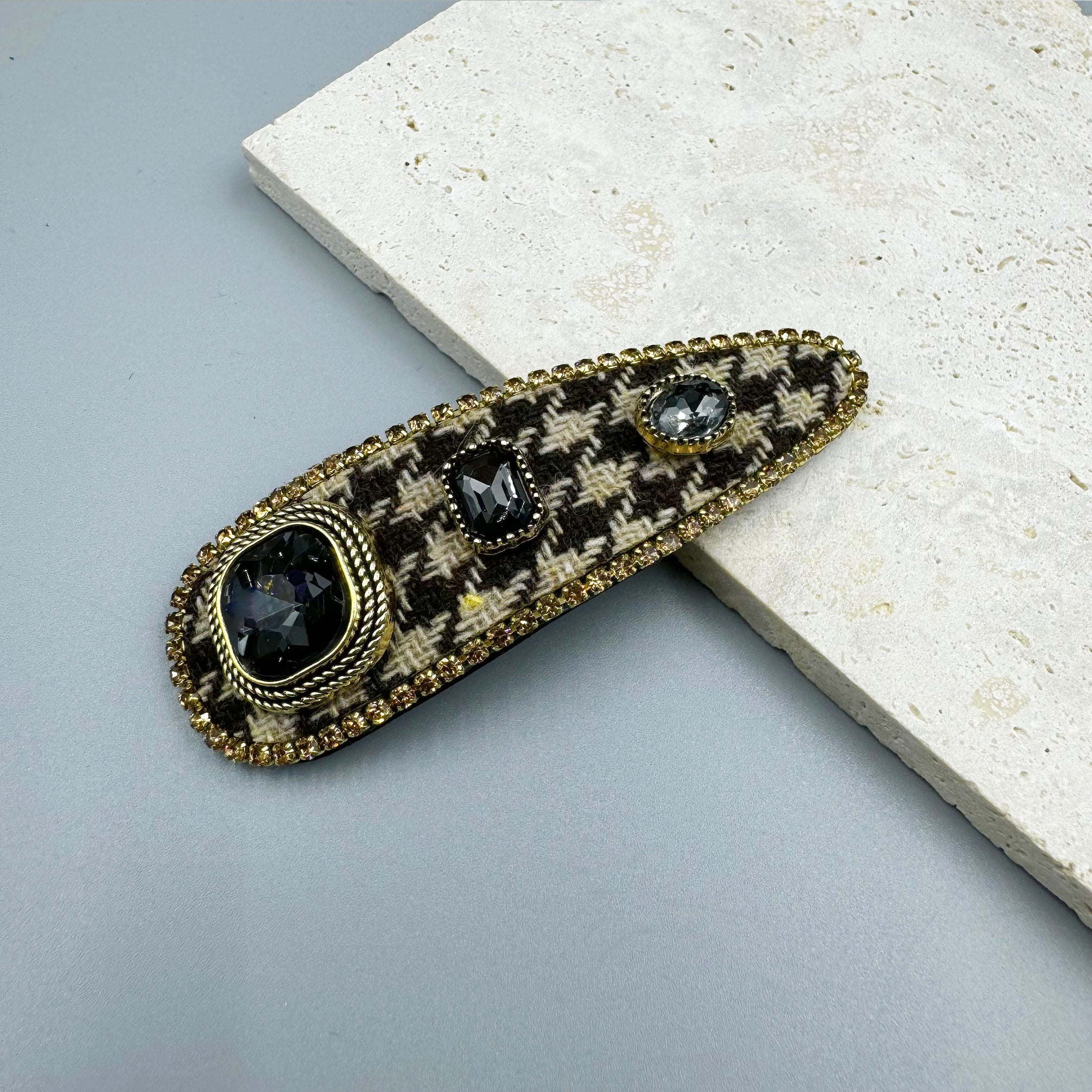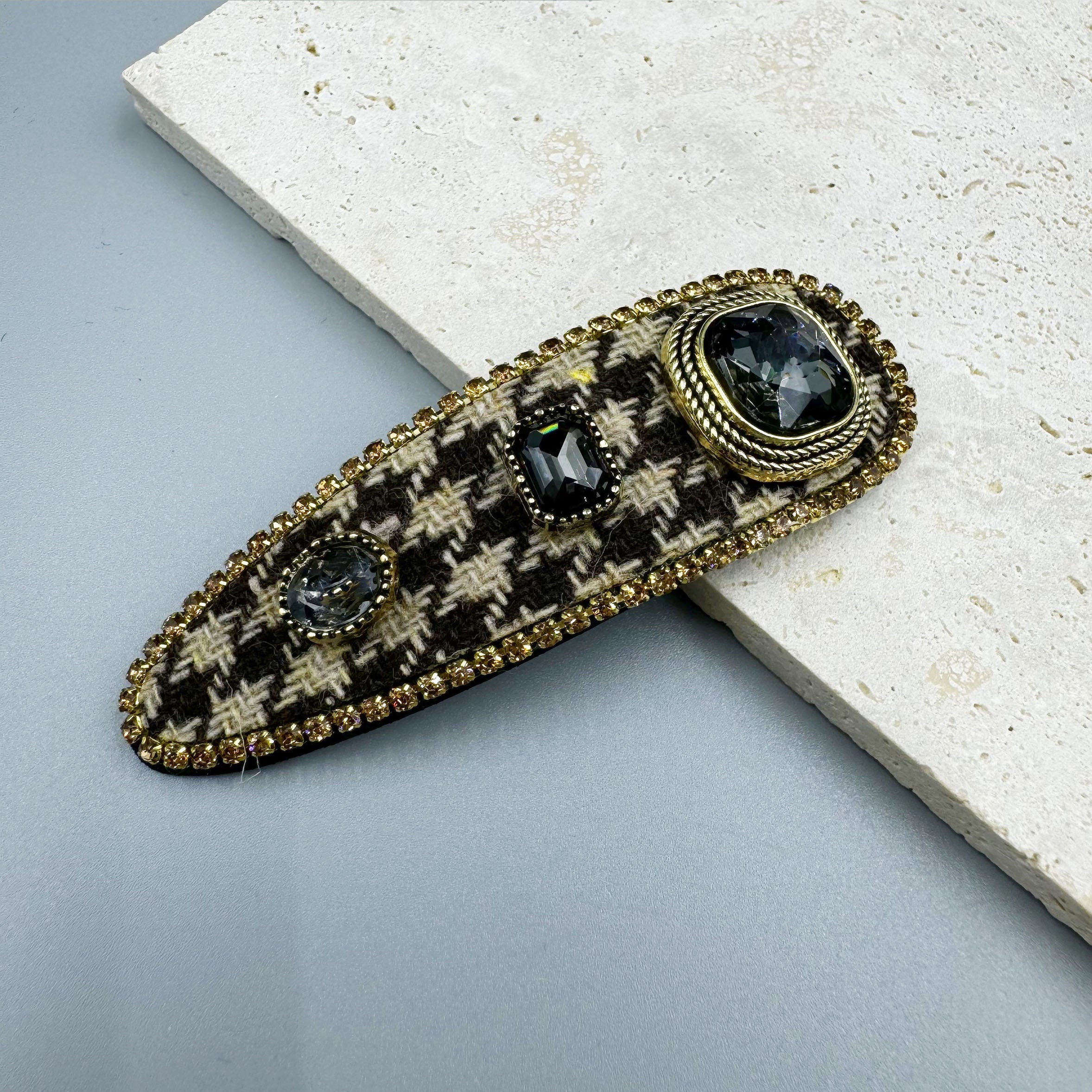 Horquilla para el pelo con forma de lágrima y diseño de pata de gallo con diamantes de imitación Barque L4745