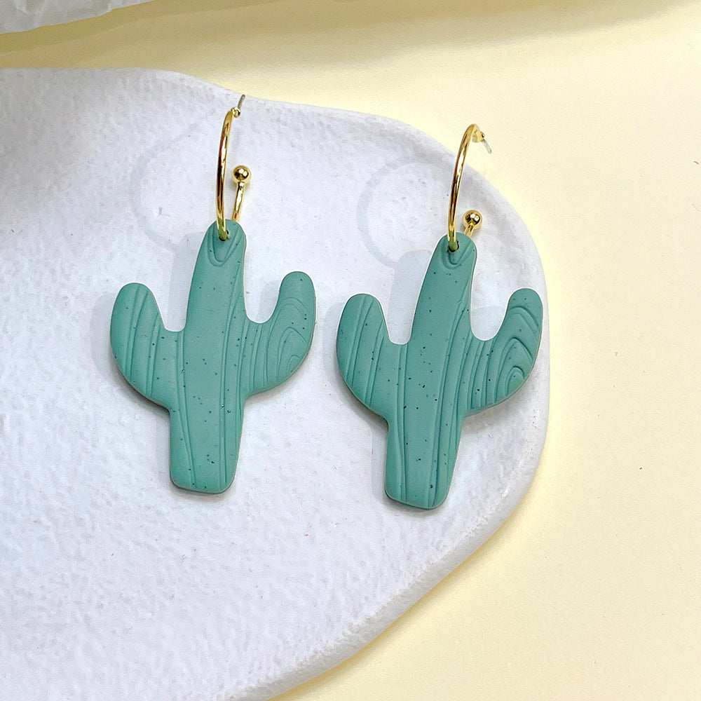 Pendientes de arcilla polimérica con forma de cactus E6972