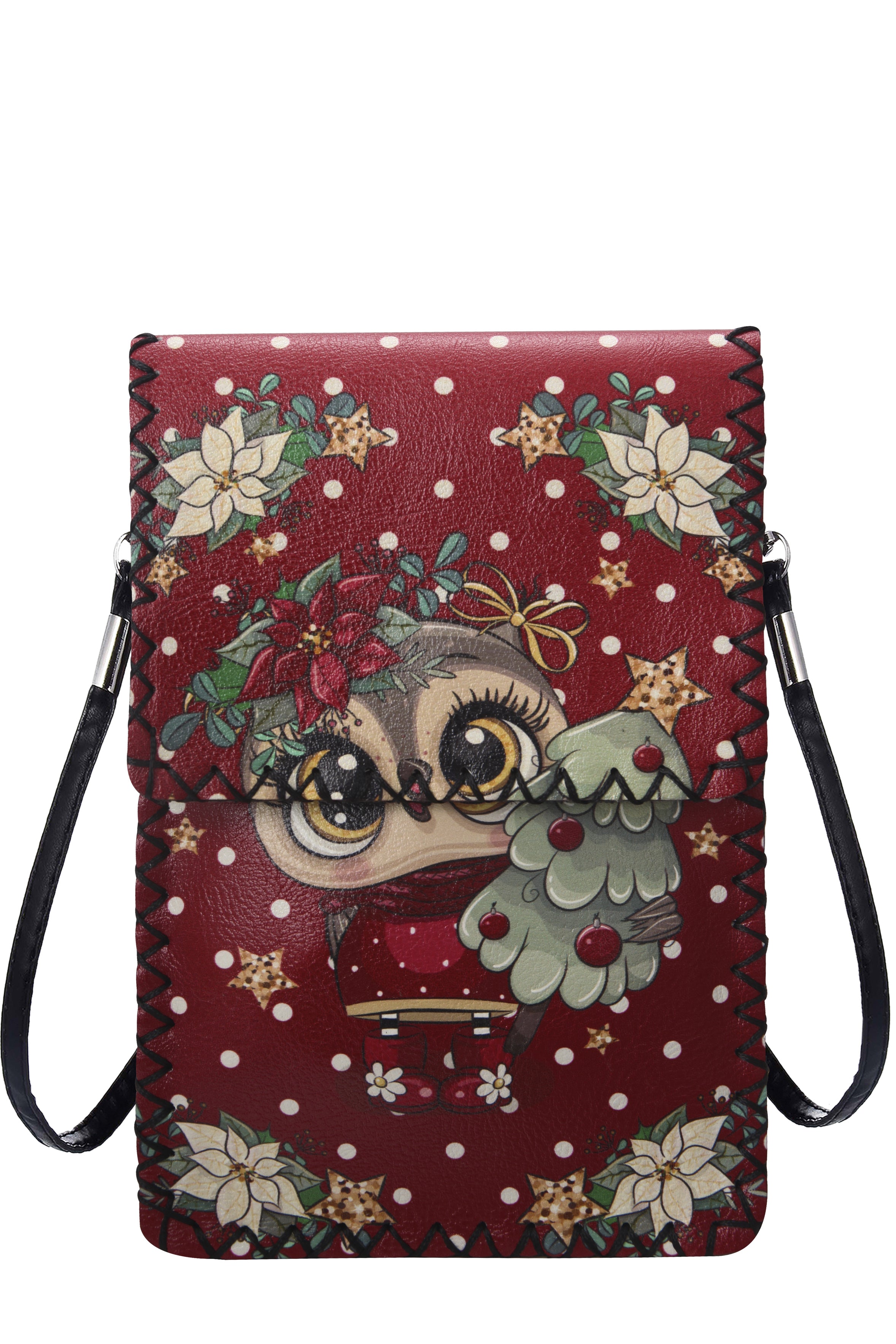 Bolso bandolera con estampado navideño de búho HB0580 - N.º 129BK