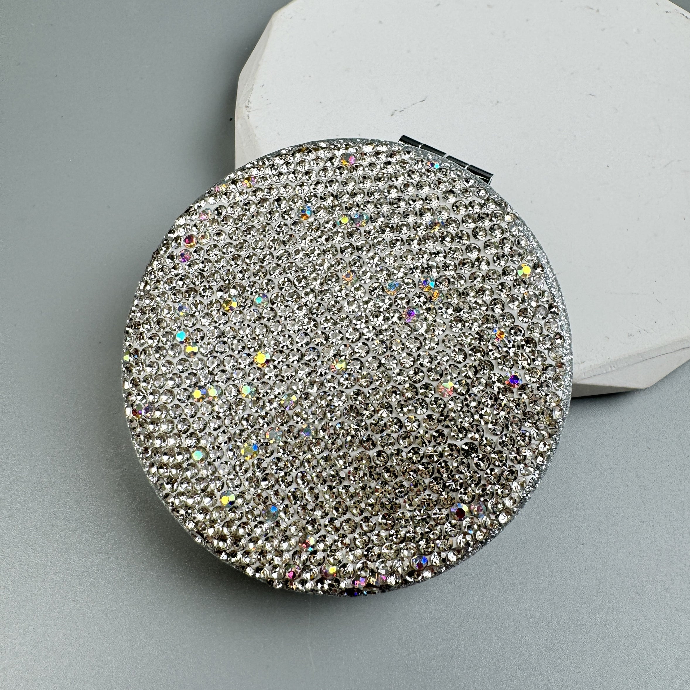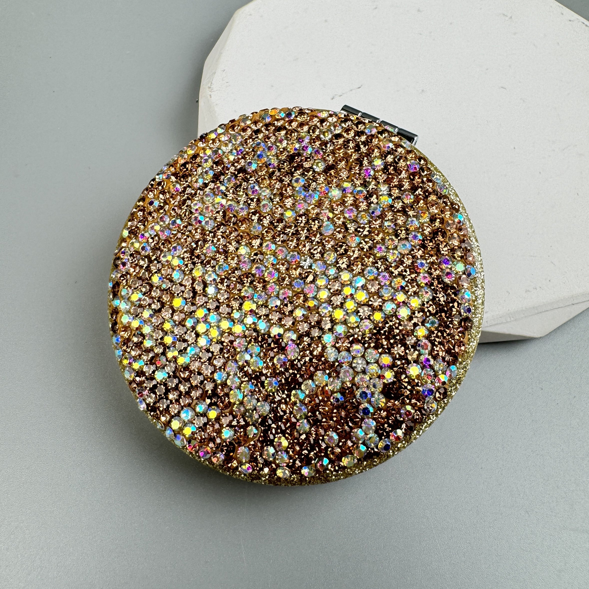 Circle Ceramic Rhinestone Folding Makeup Mirror M0449