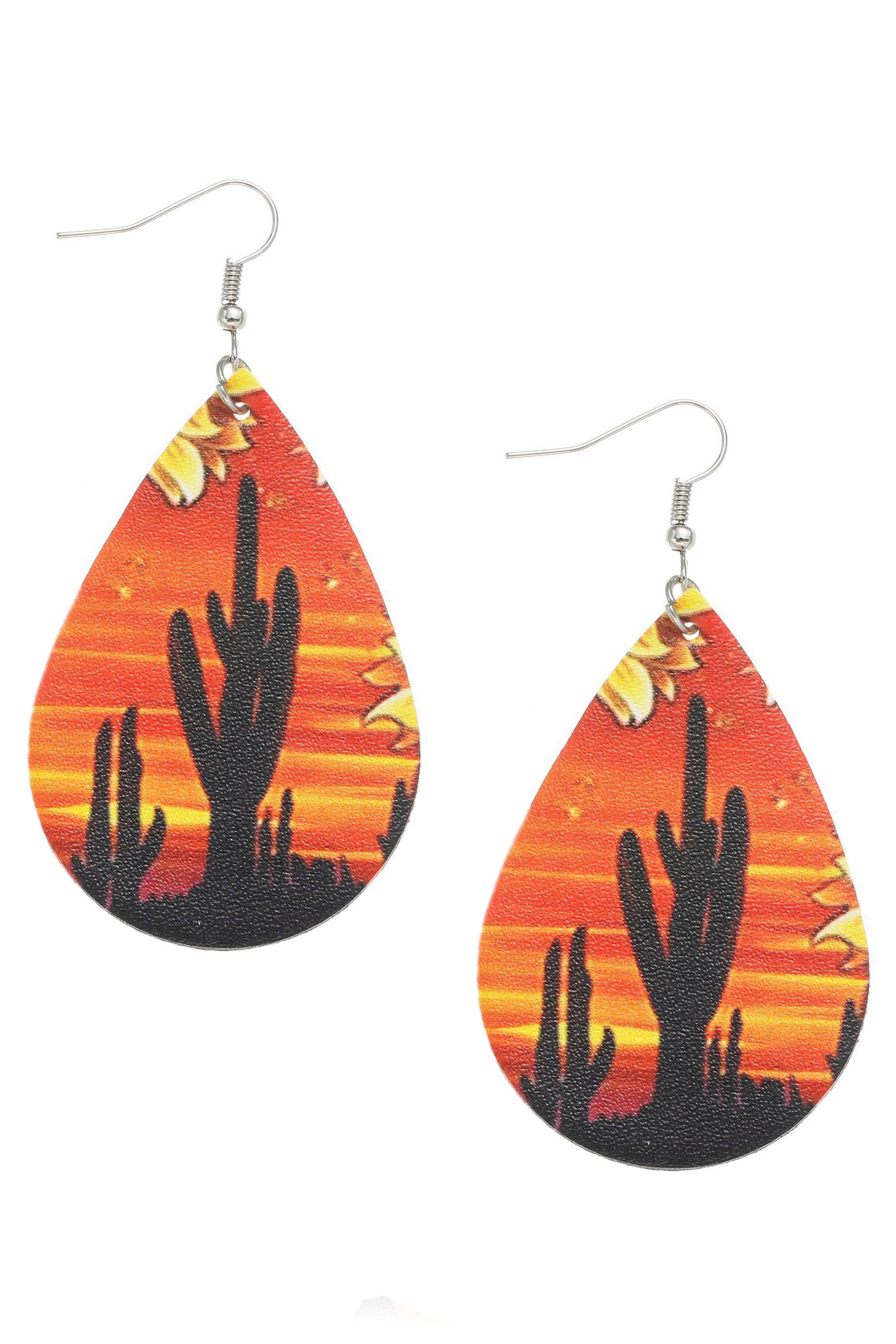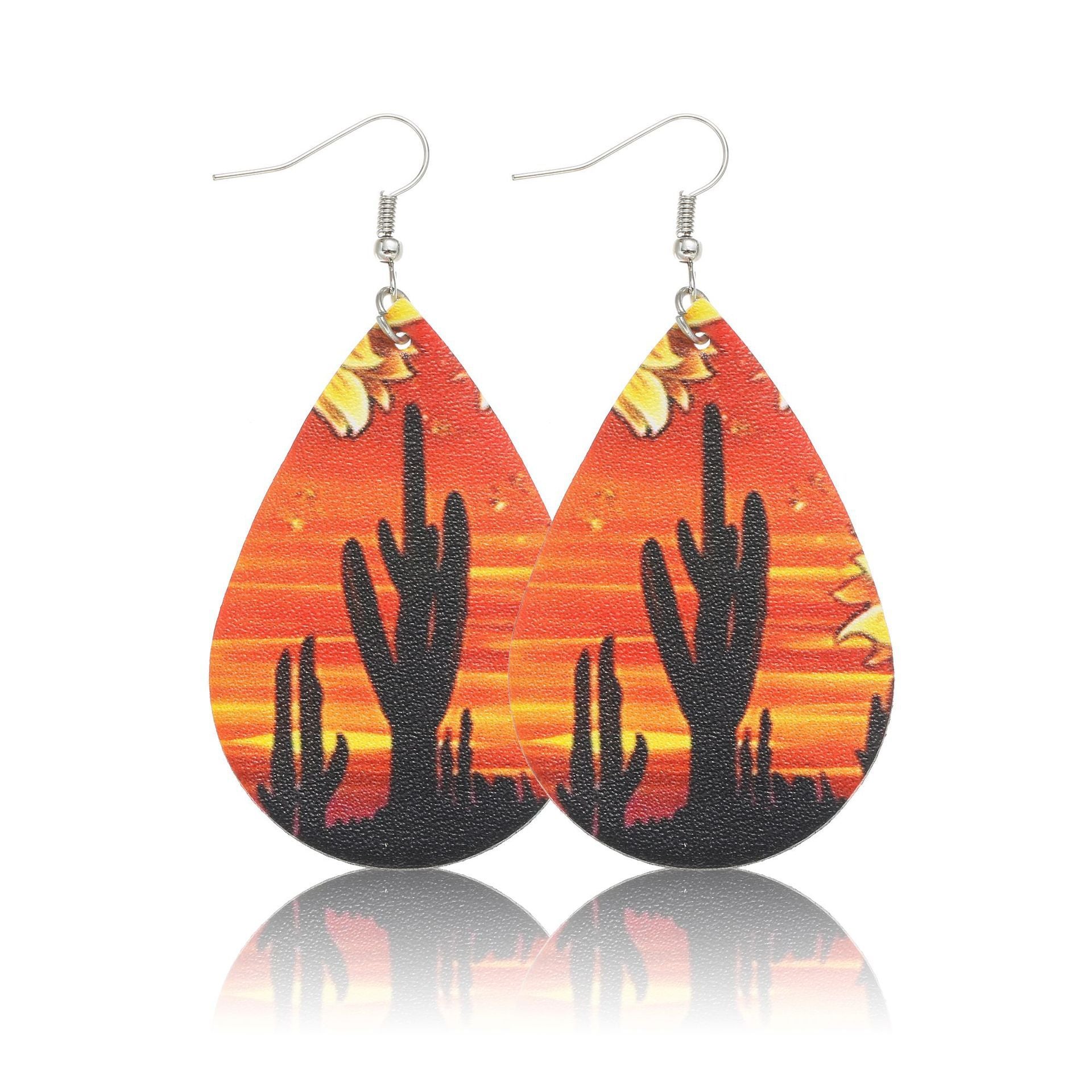 Pendientes de madera con forma de lágrima de cactus del desierto E6612
