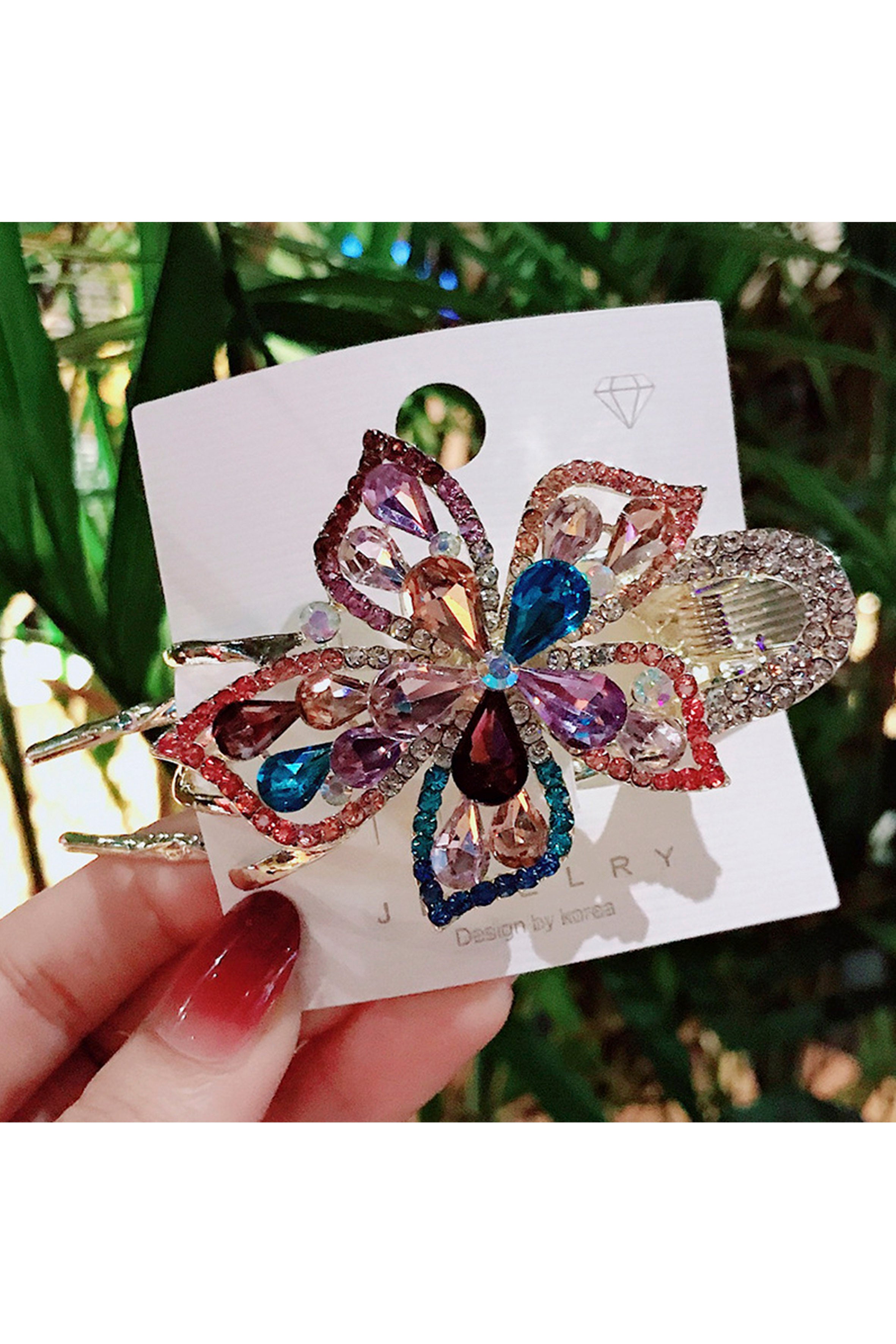 Pinza para el pelo con diamantes de imitación y diseño floral L3033