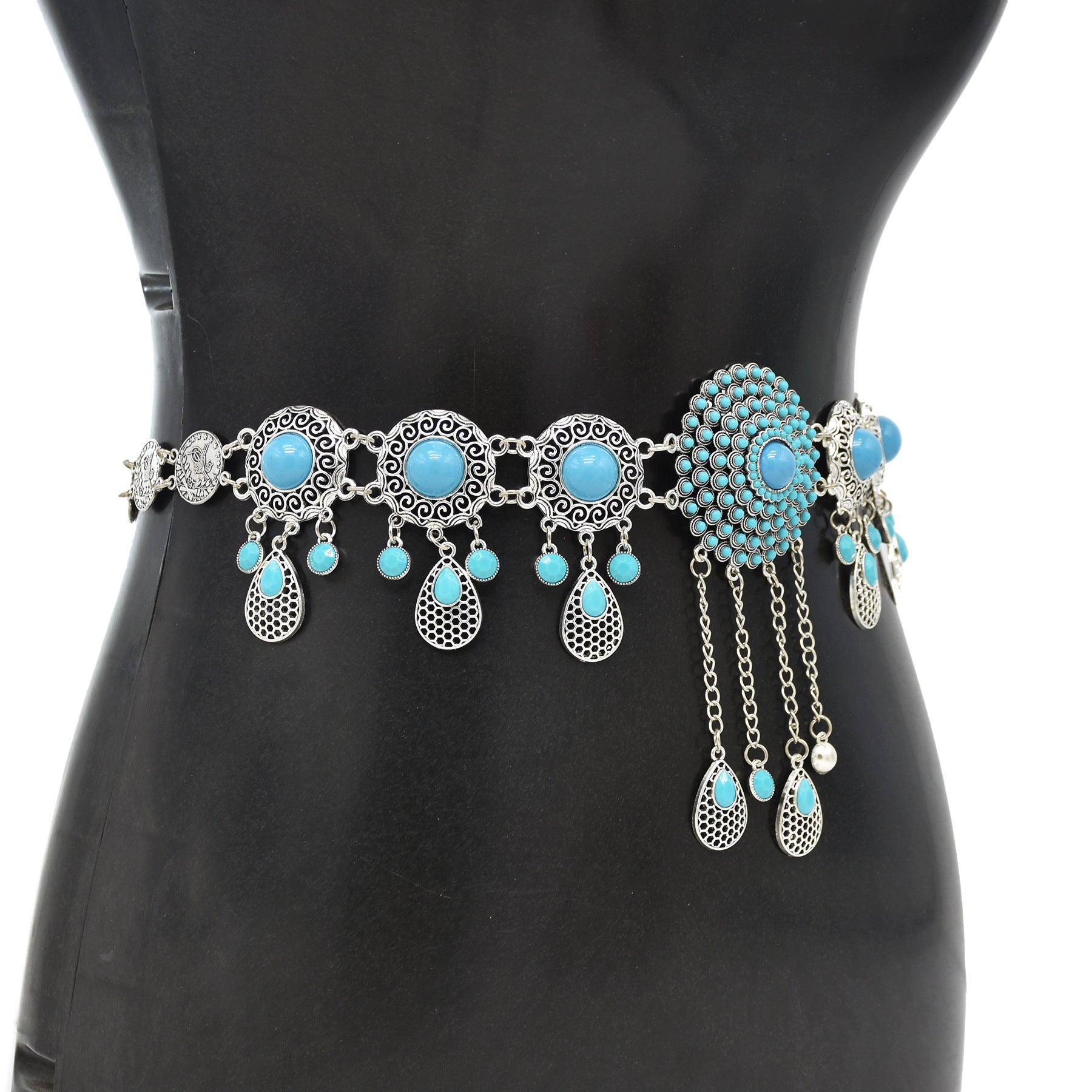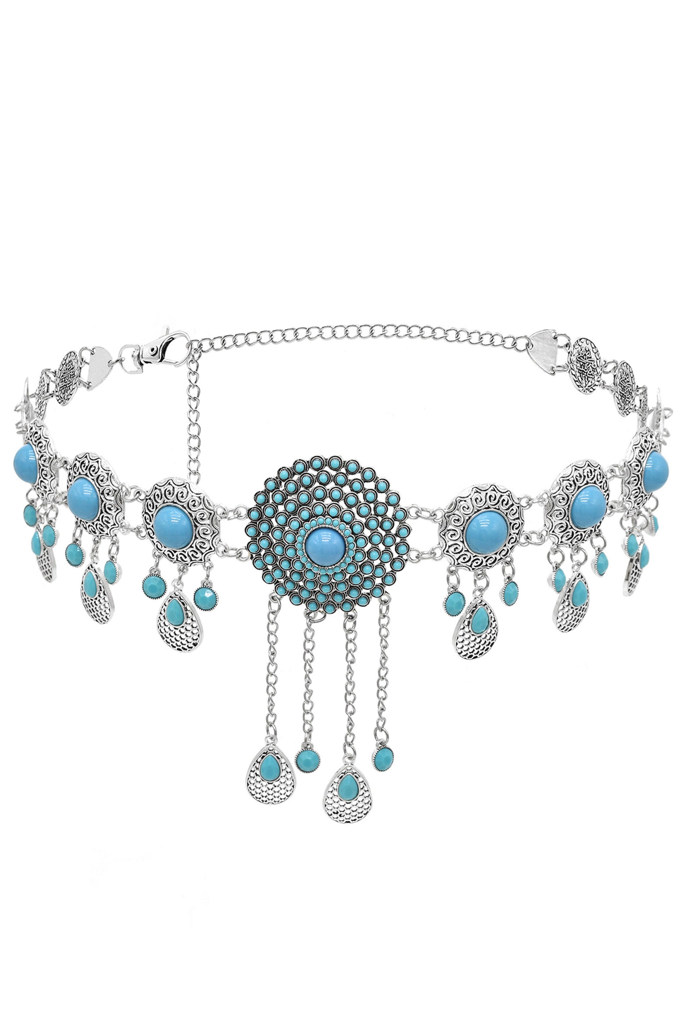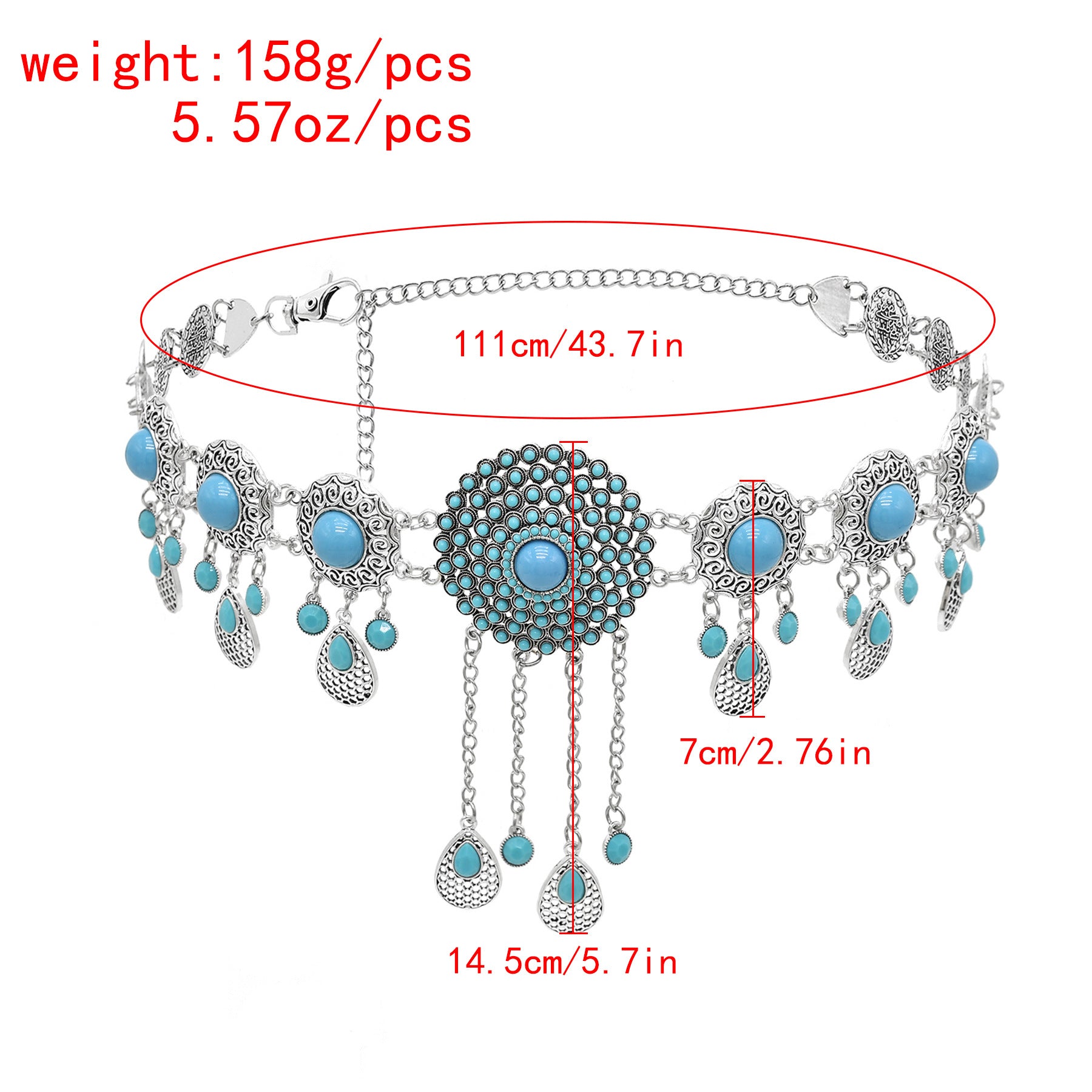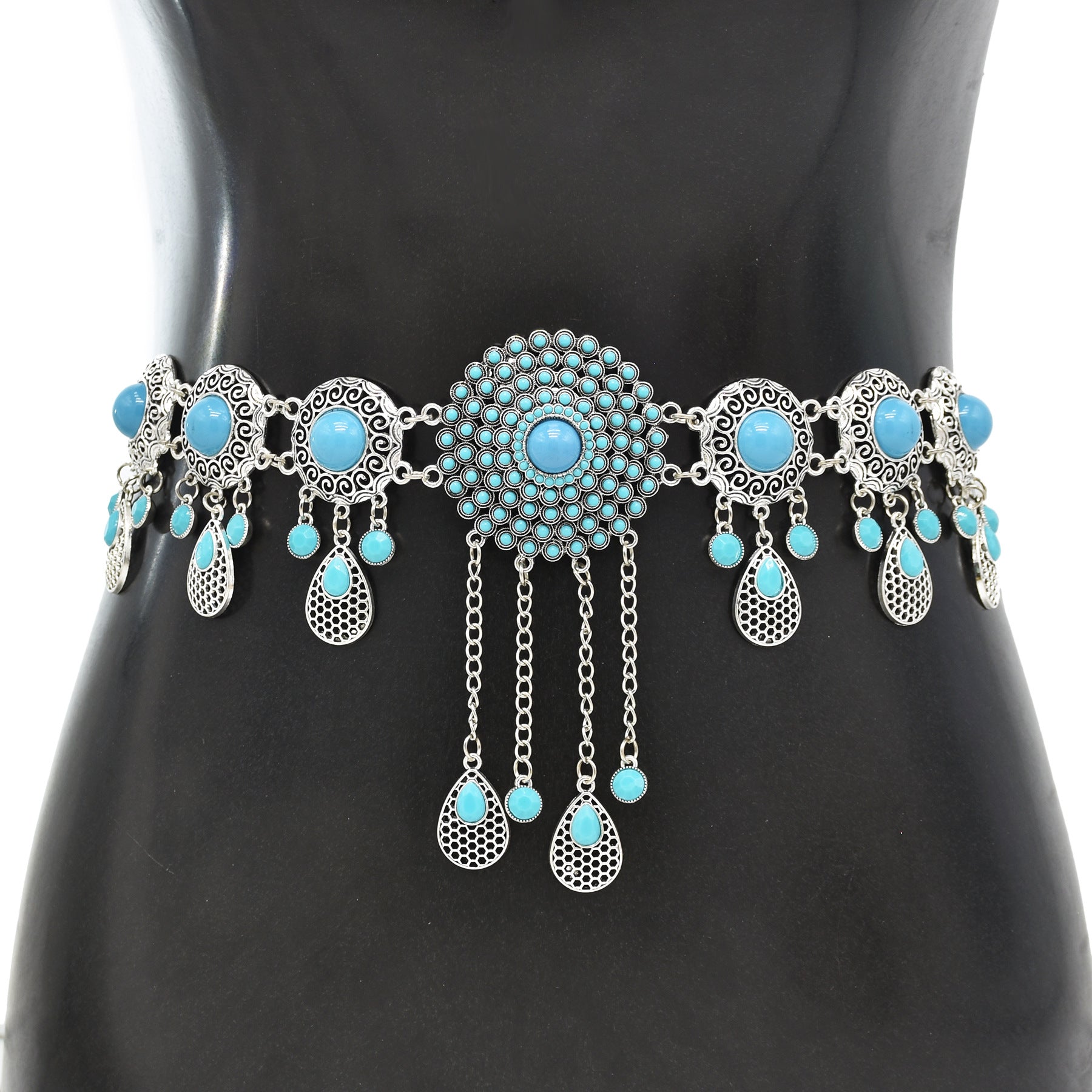Cadenas de cintura con borlas florales y color turquesa WA0231
