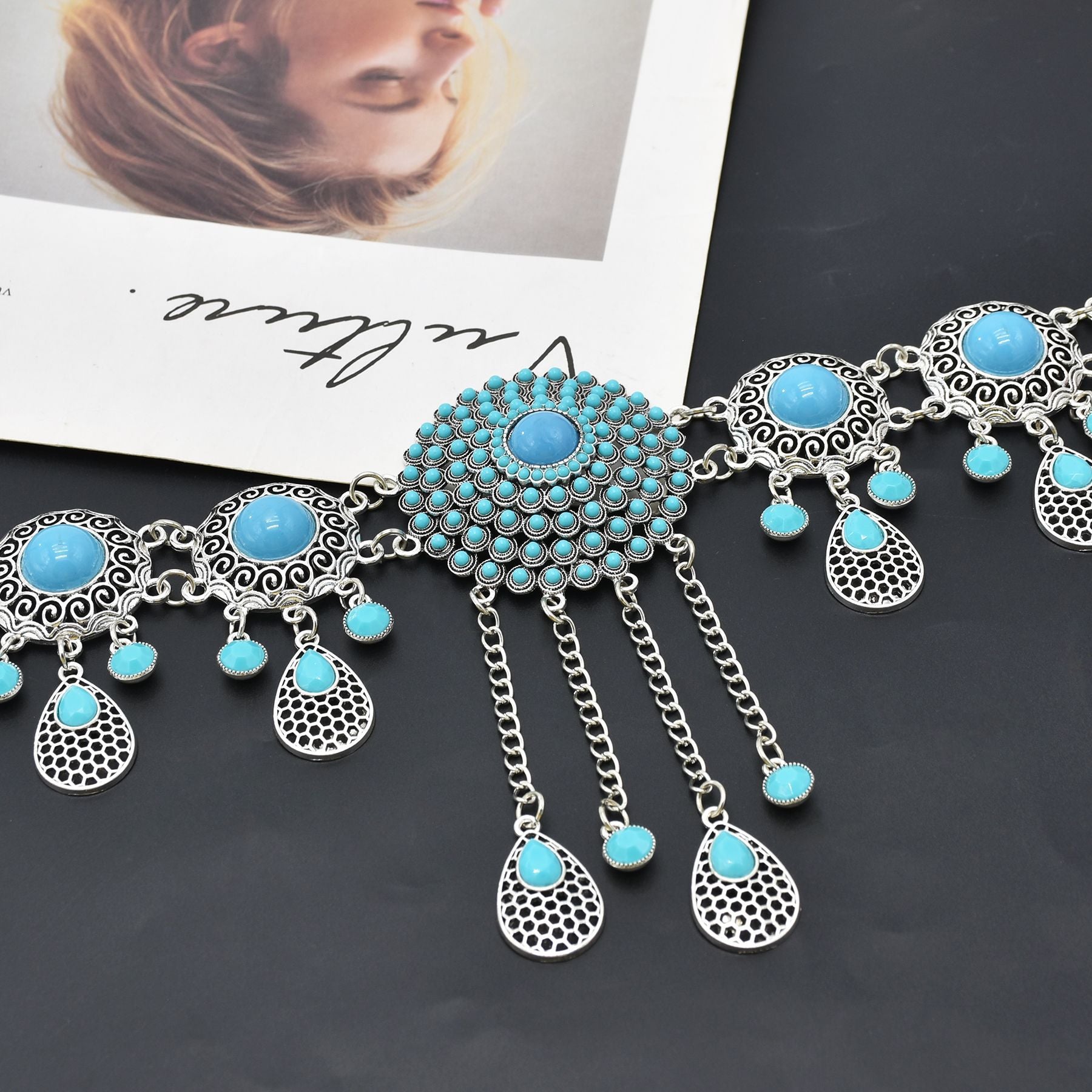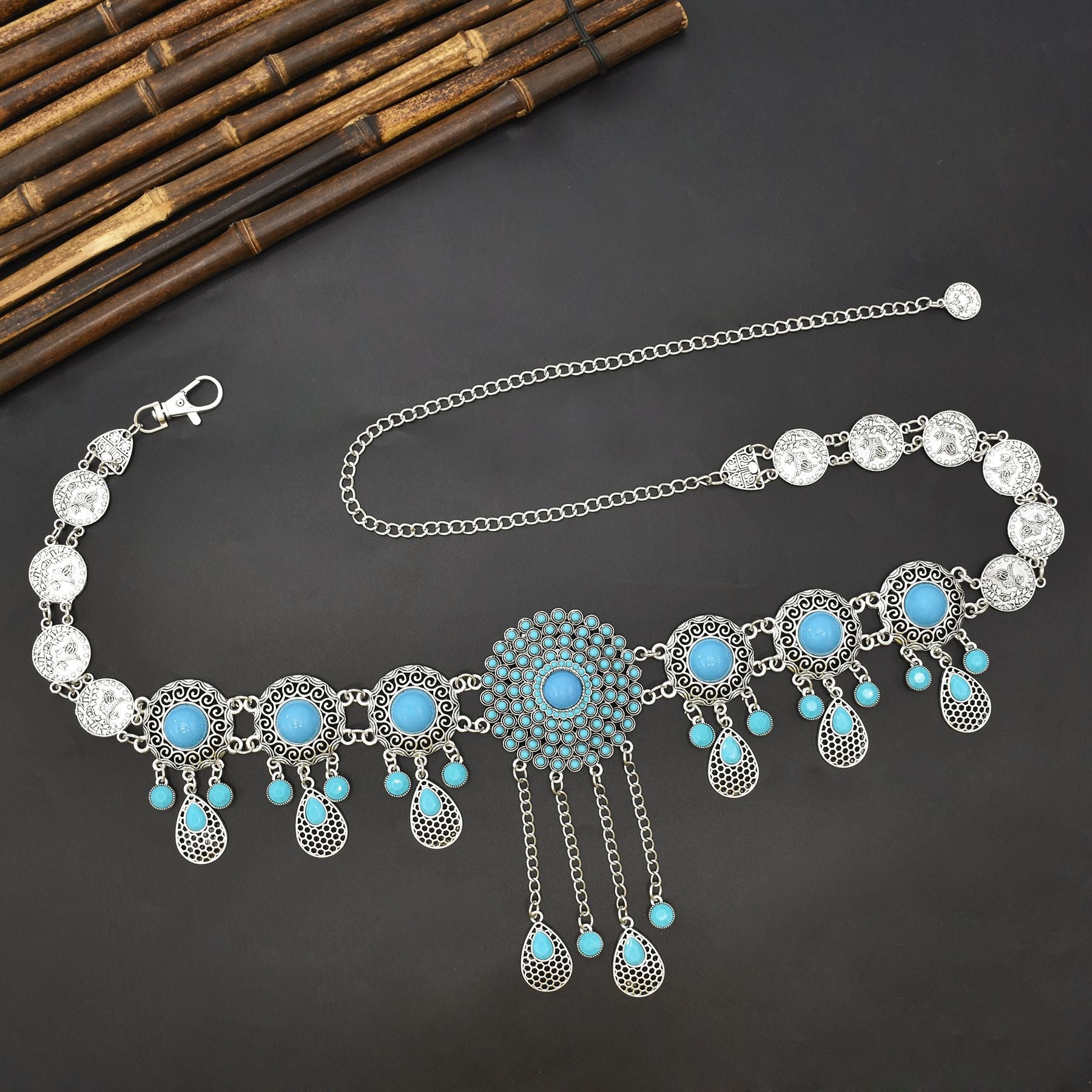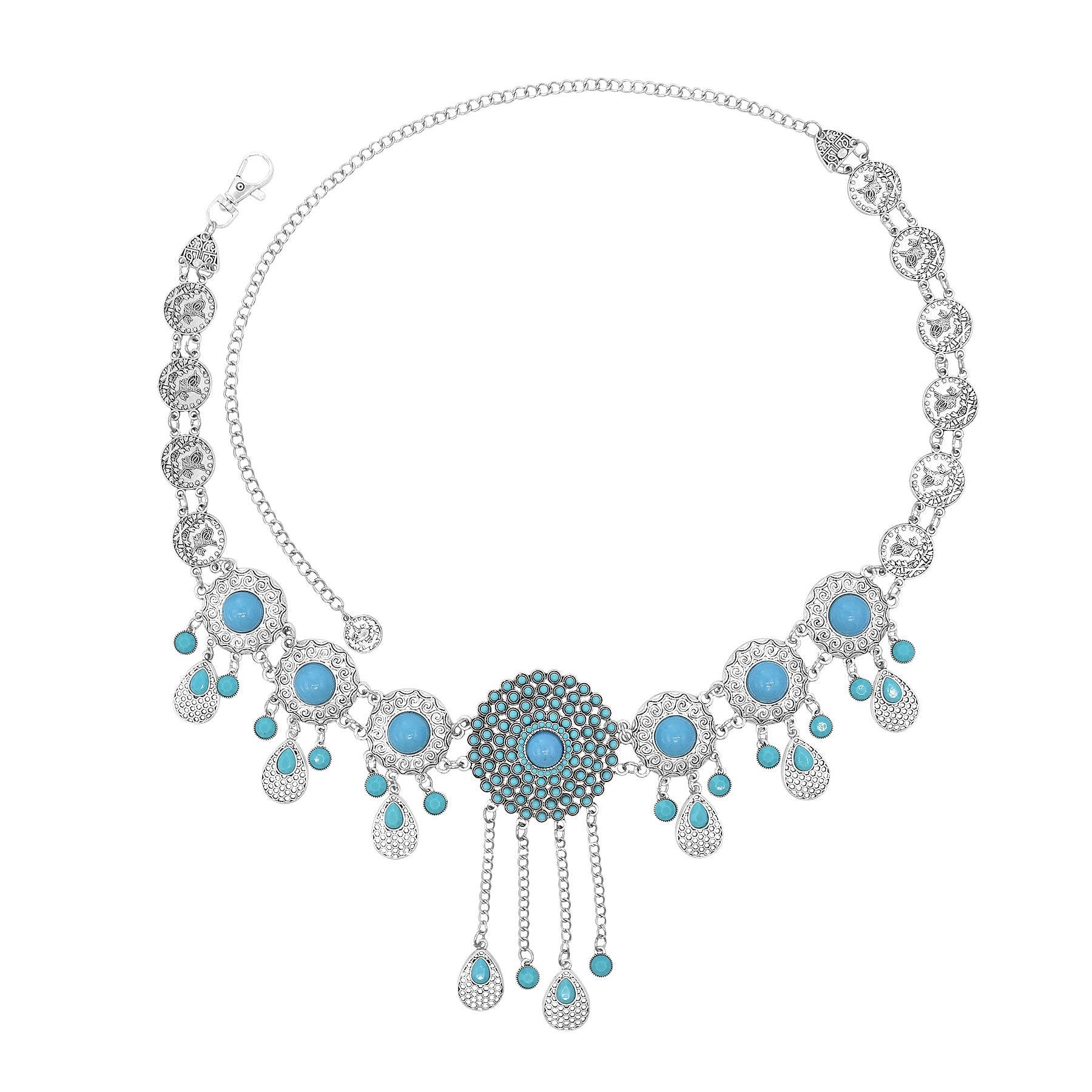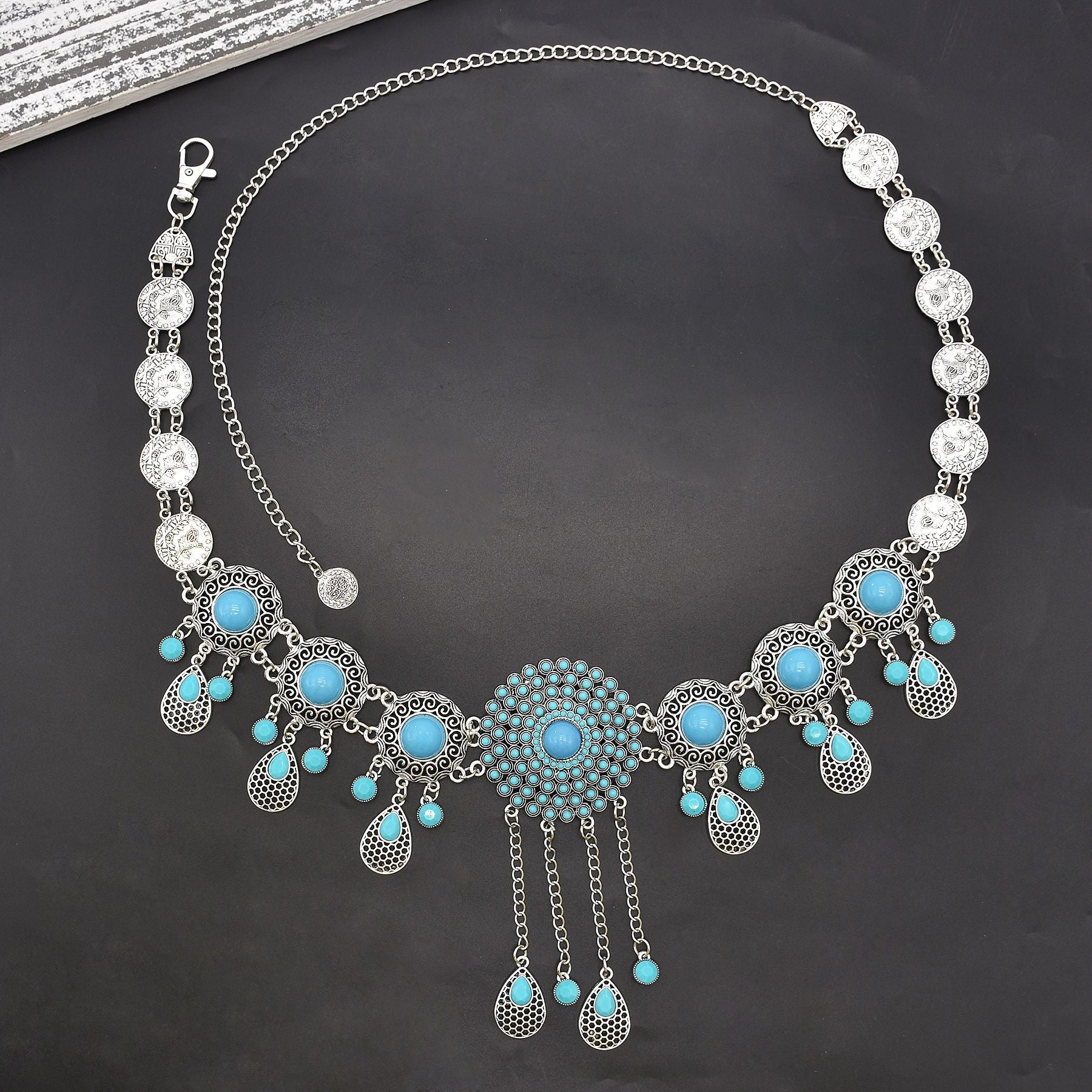 Cadenas de cintura con borlas florales y color turquesa WA0231