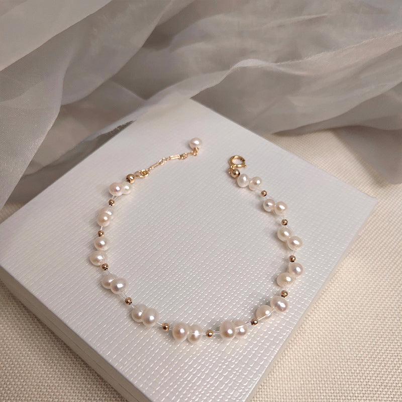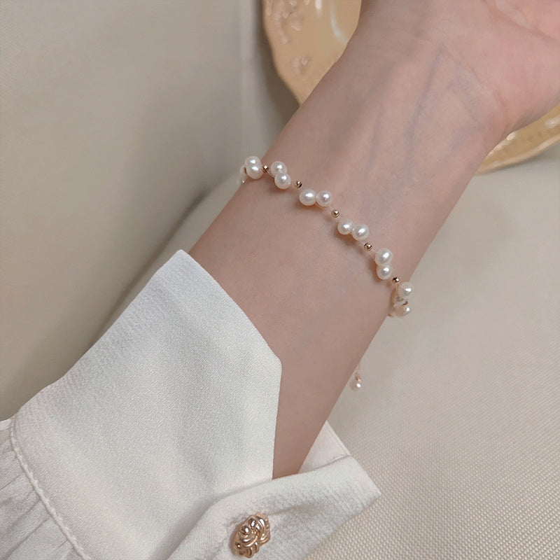 Pulsera de aleación con cuentas de perlas de agua dulce B3798