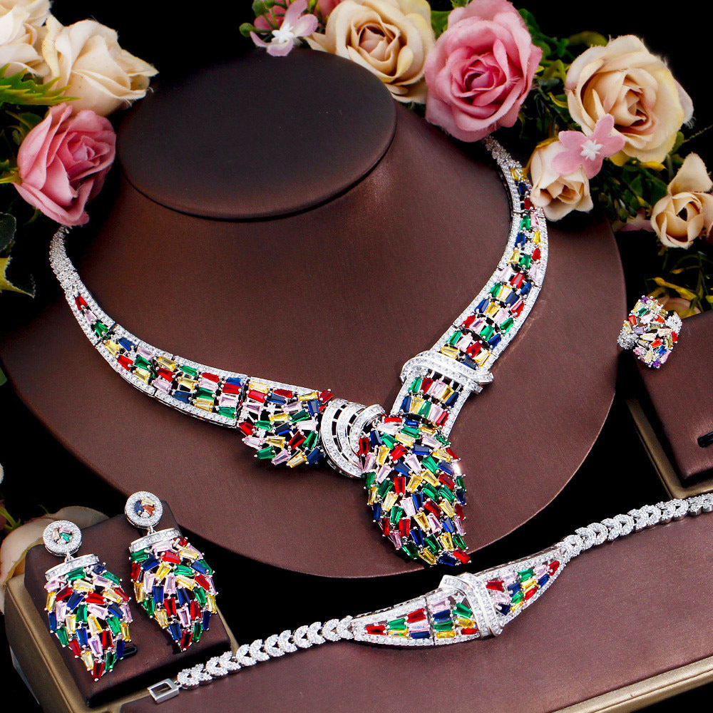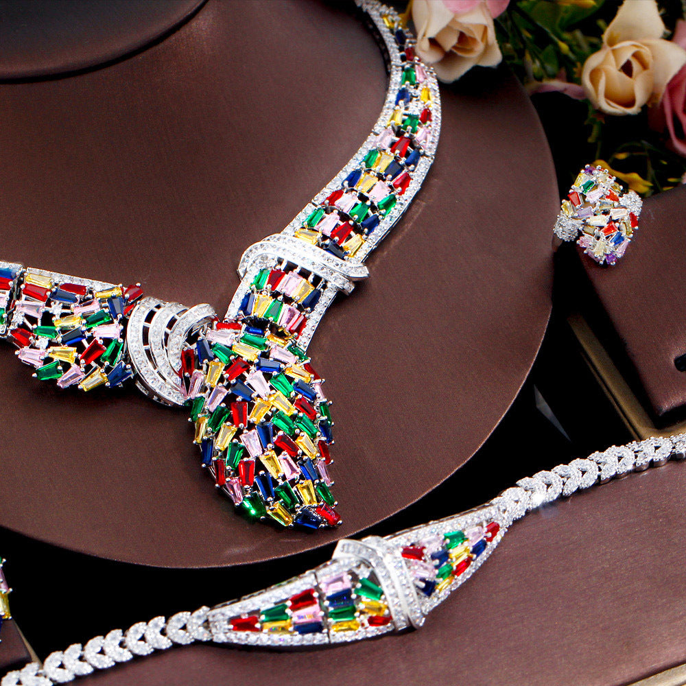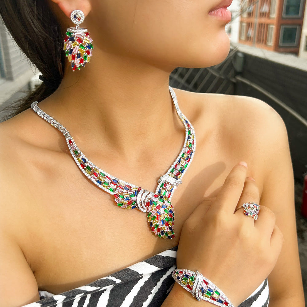 Conjunto de collar de circonita cúbica con diseño de serpiente geométrica N5142