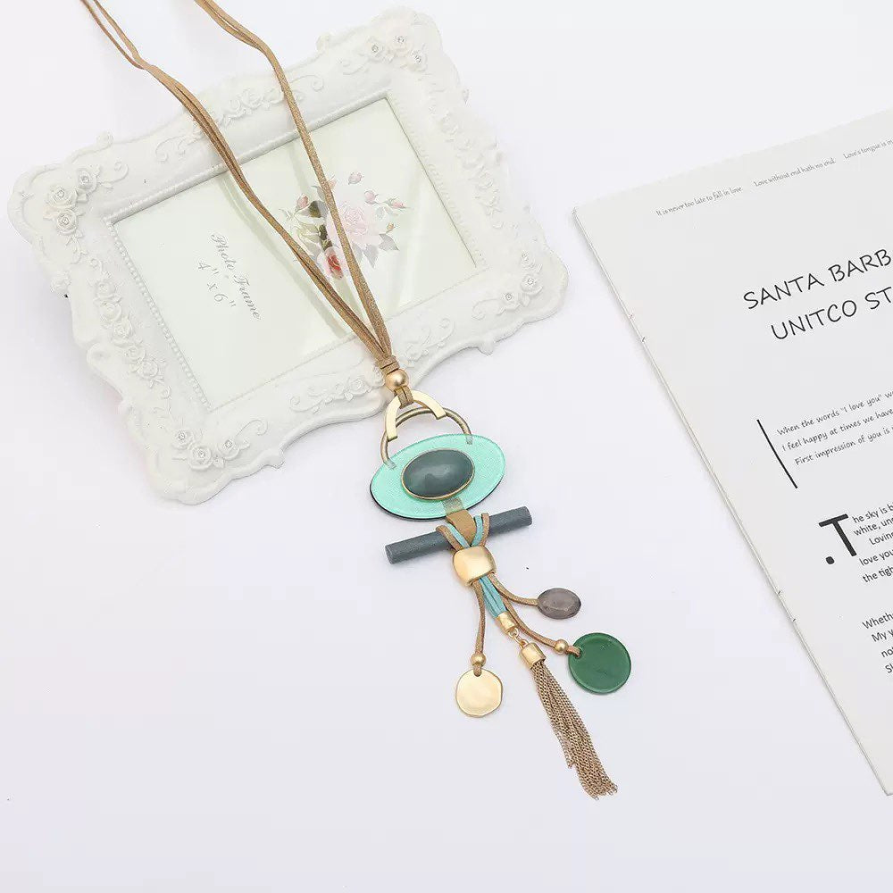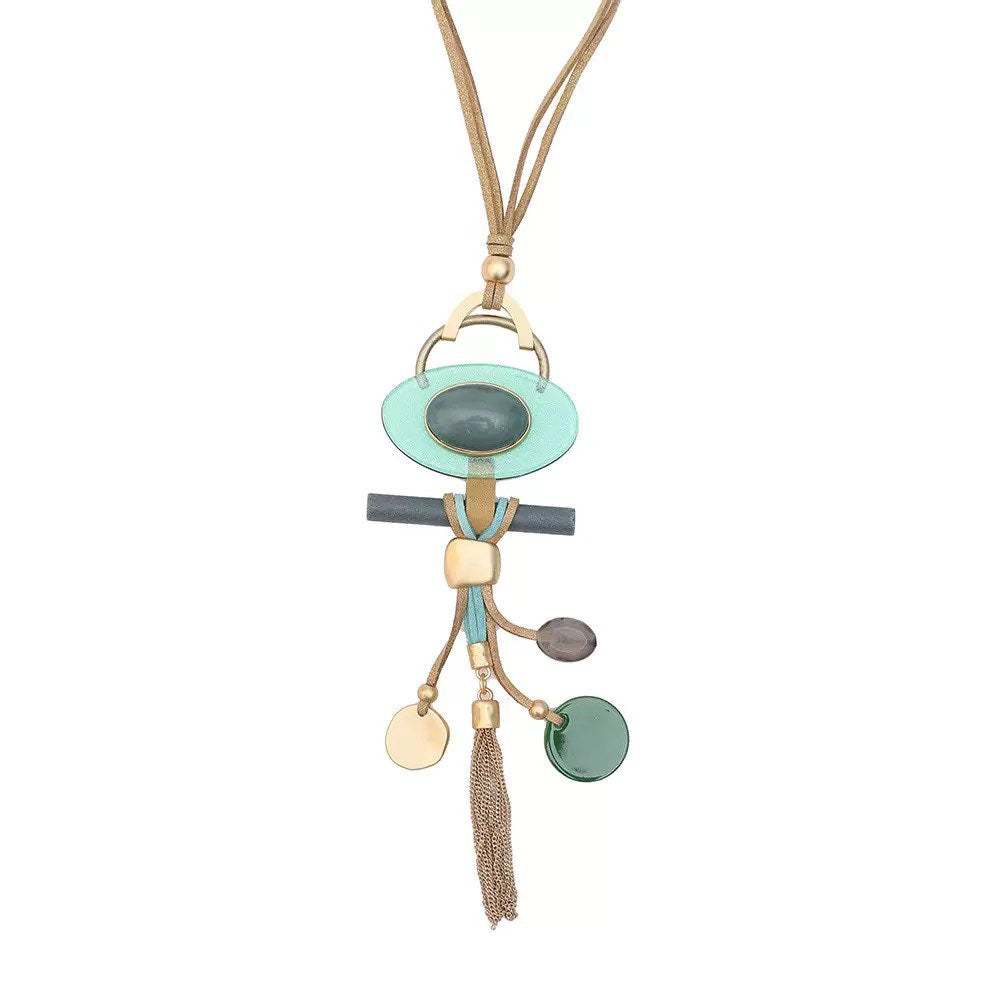 Collar de cuero con borlas geométricas N4841