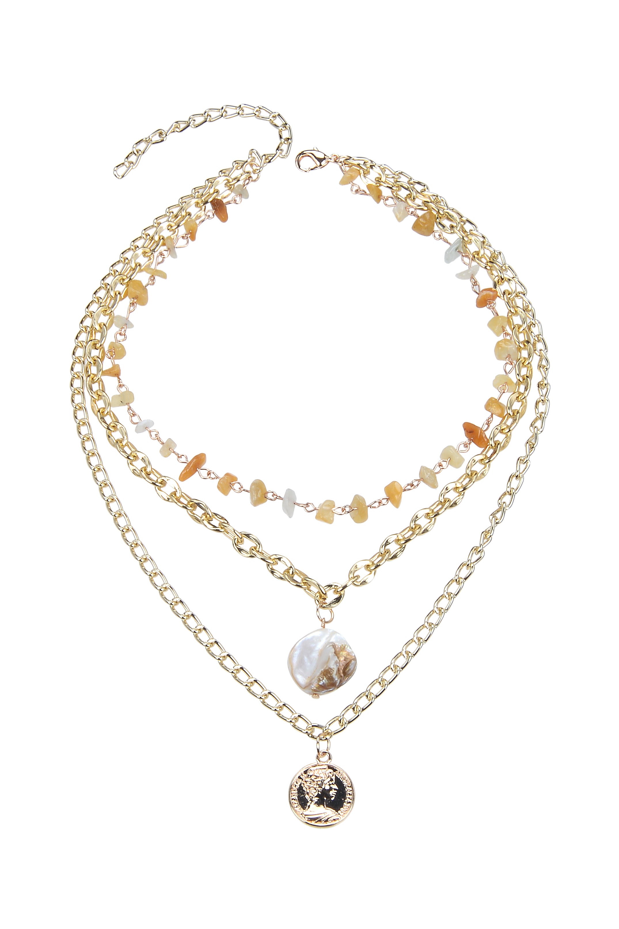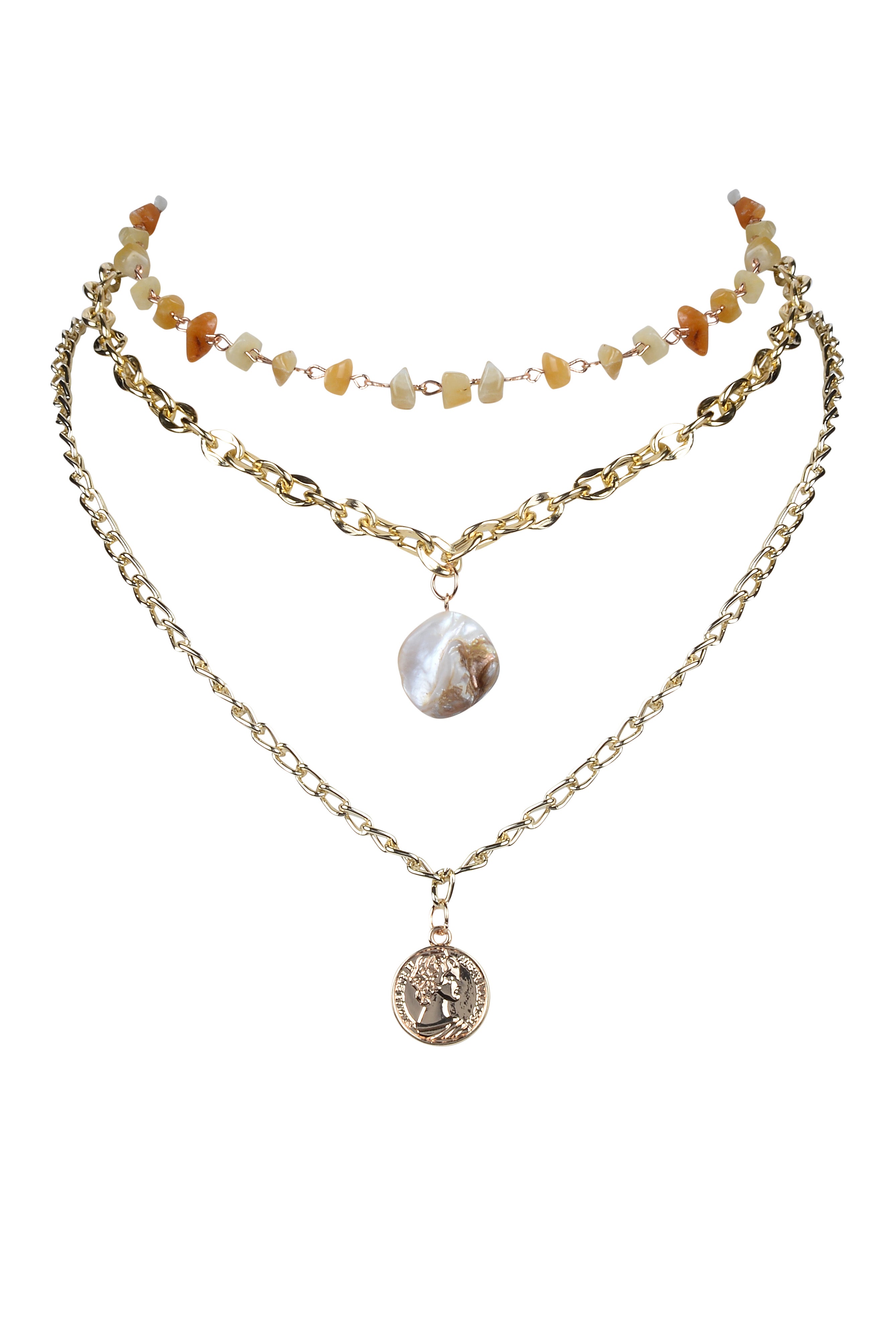 Collar de metal con hebras de perlas y medalla de oro N3196
