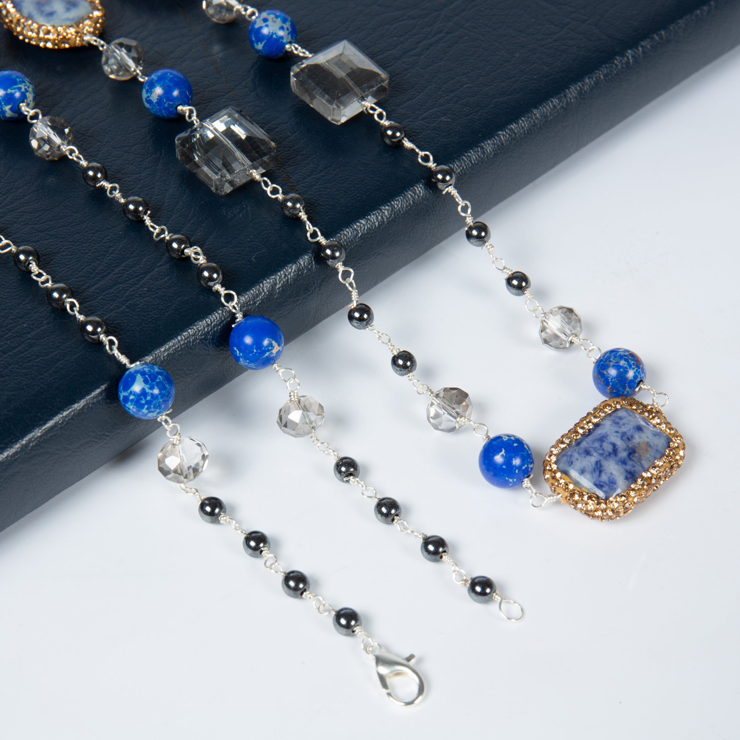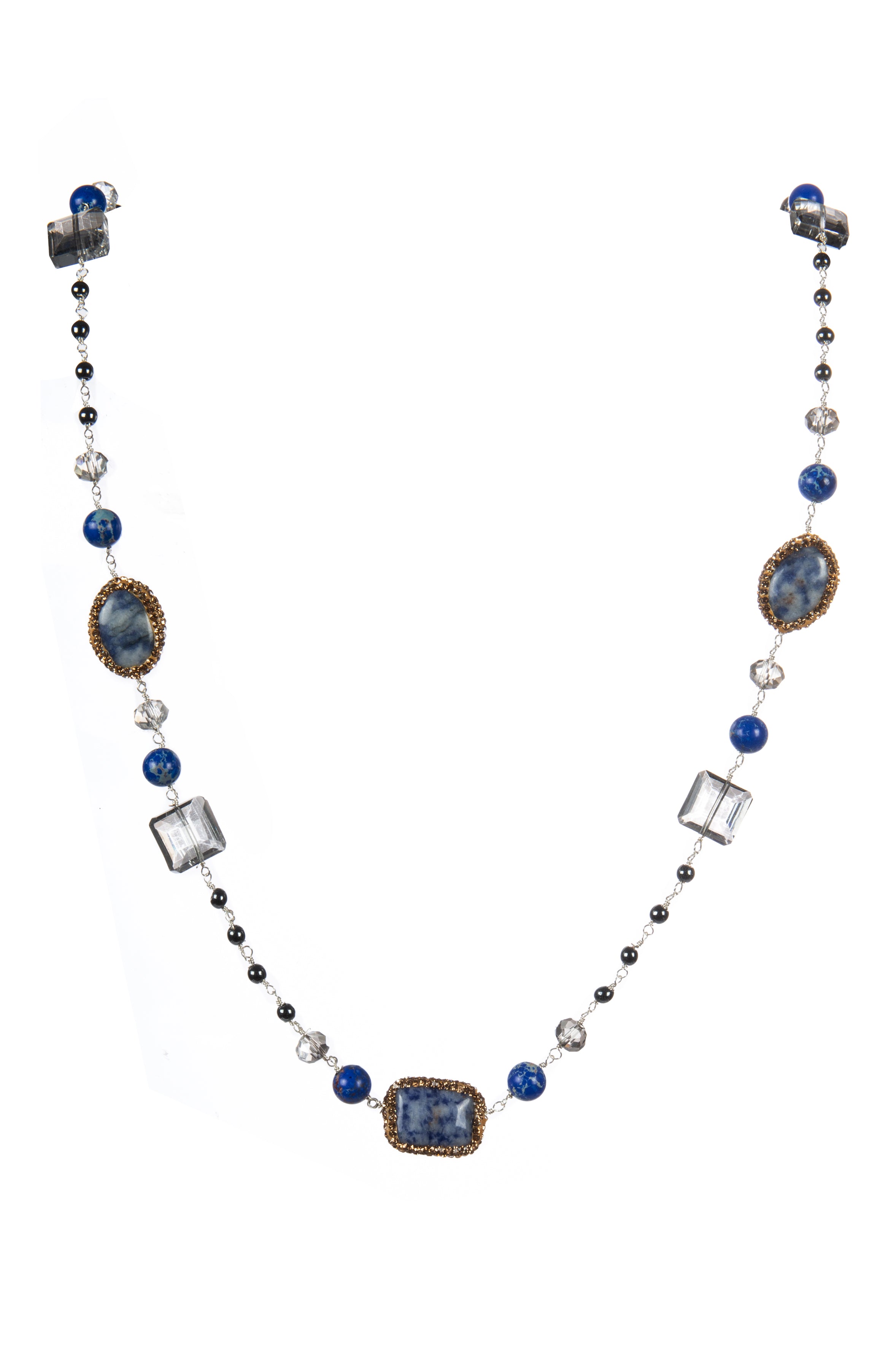 Handmade Blue Spot Jasper Bead Link Necklace N5544