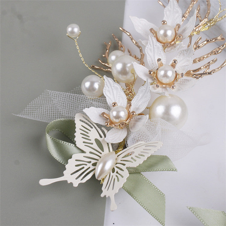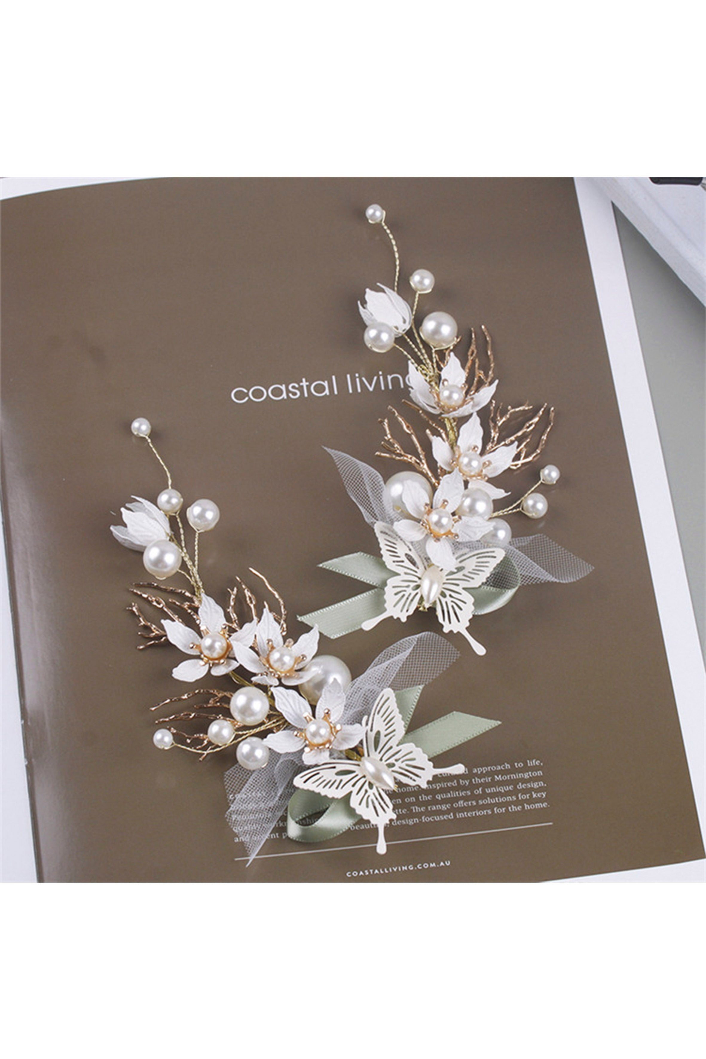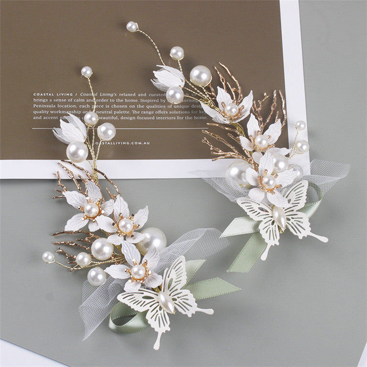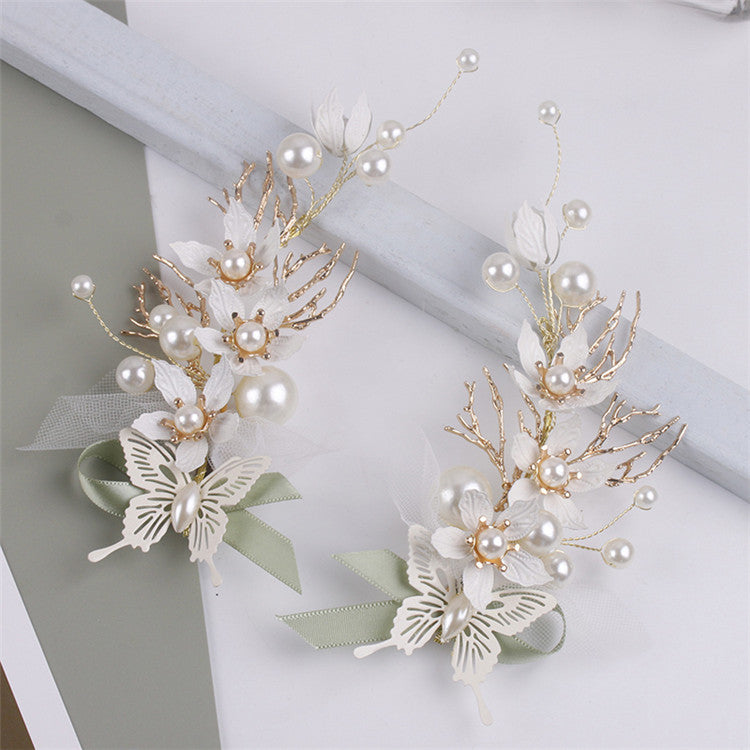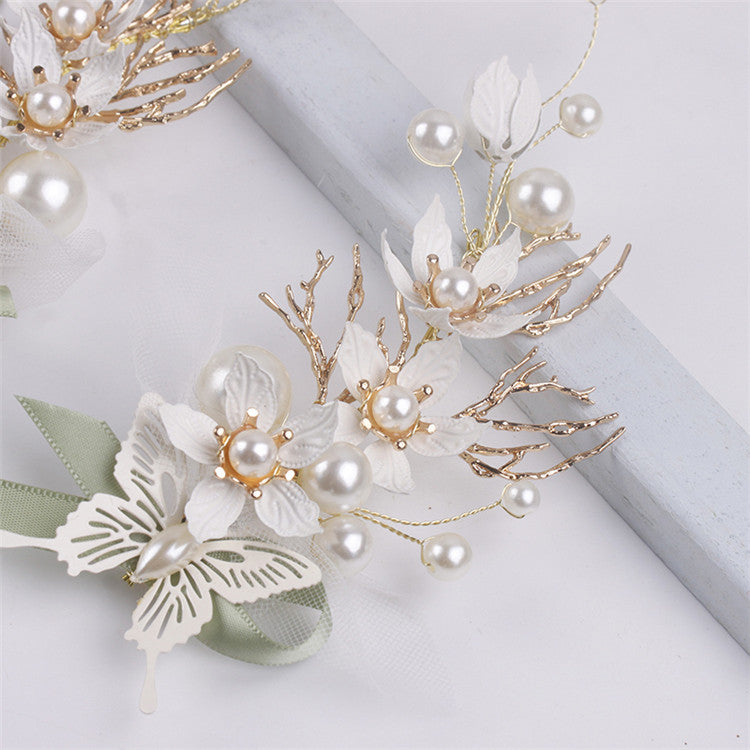 Juego de pinzas para el cabello hechas a mano con flores y perlas L2827