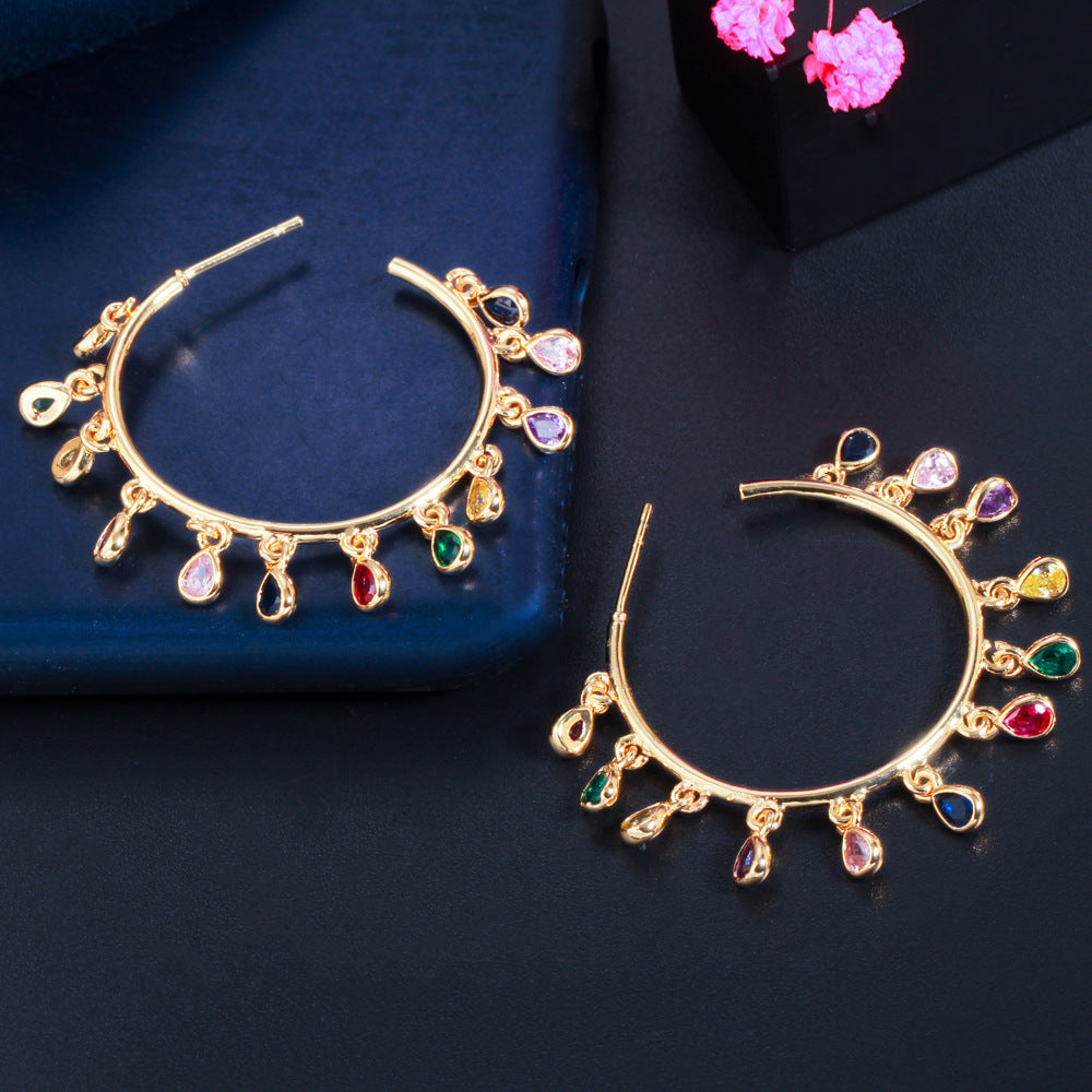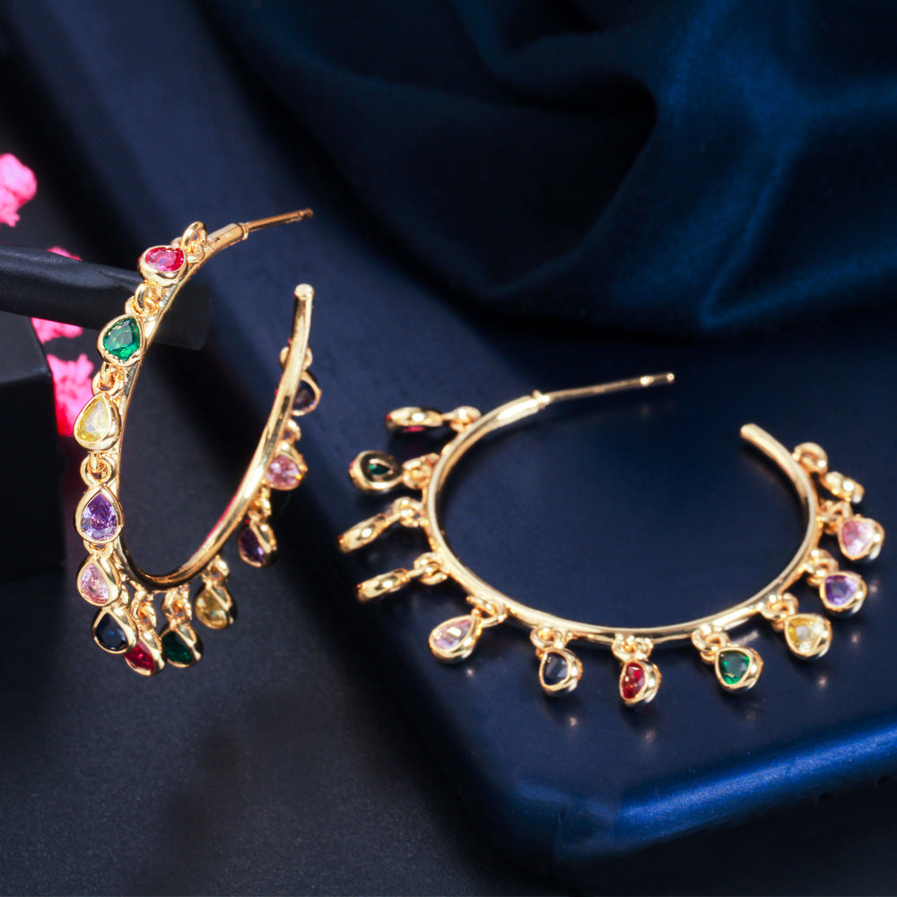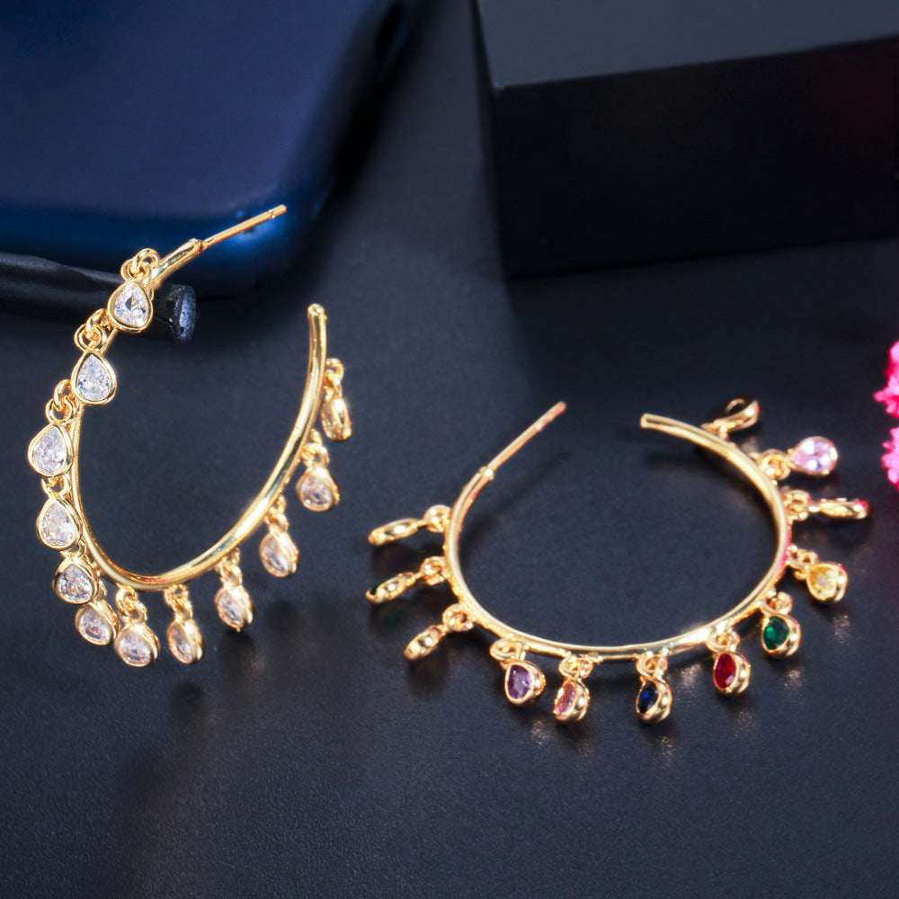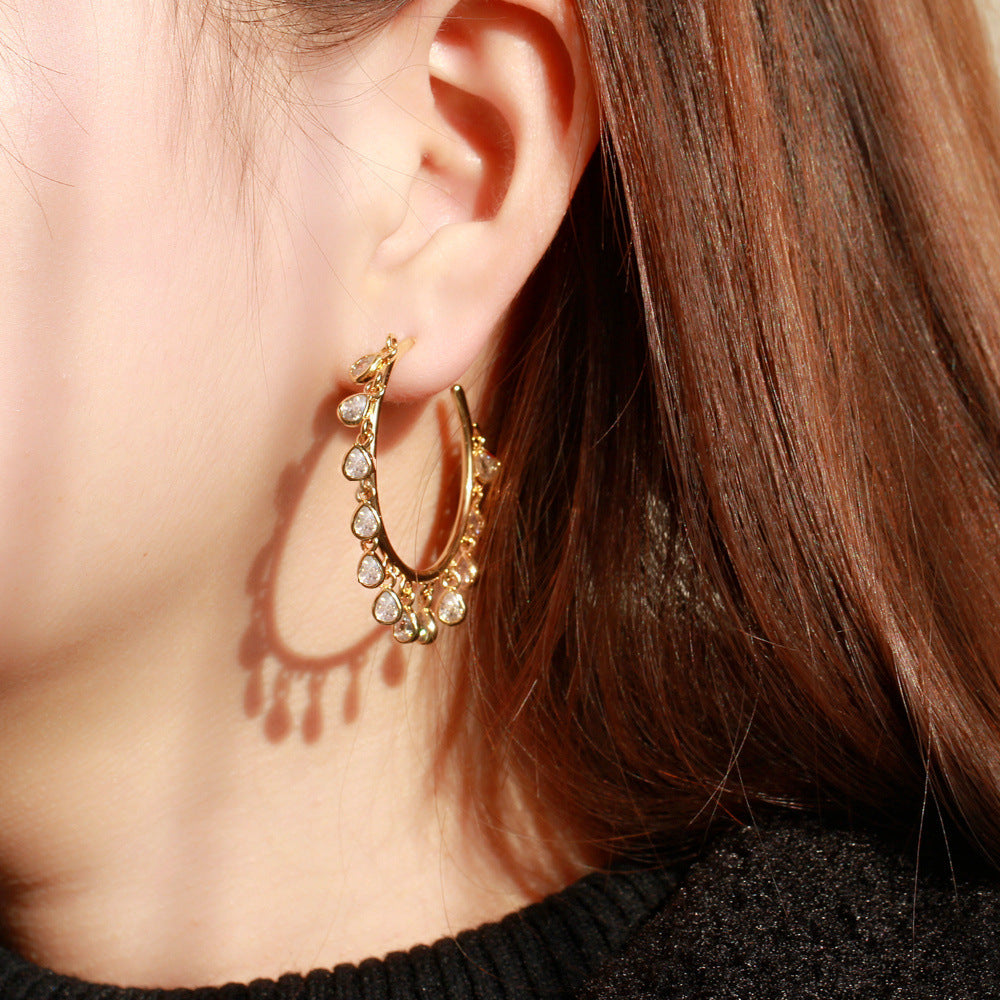 Pendientes de aro con circonitas cúbicas en forma de corazón E7227