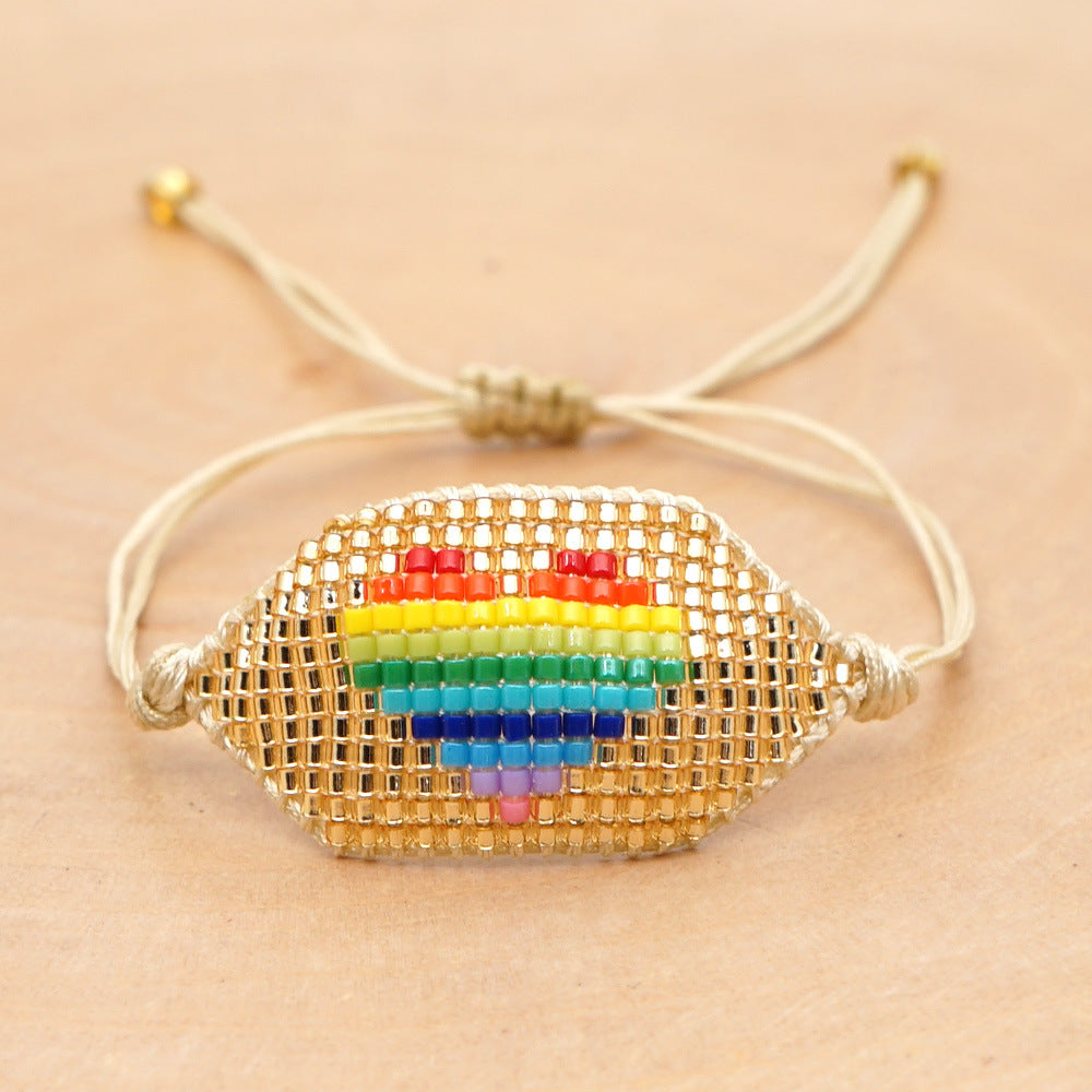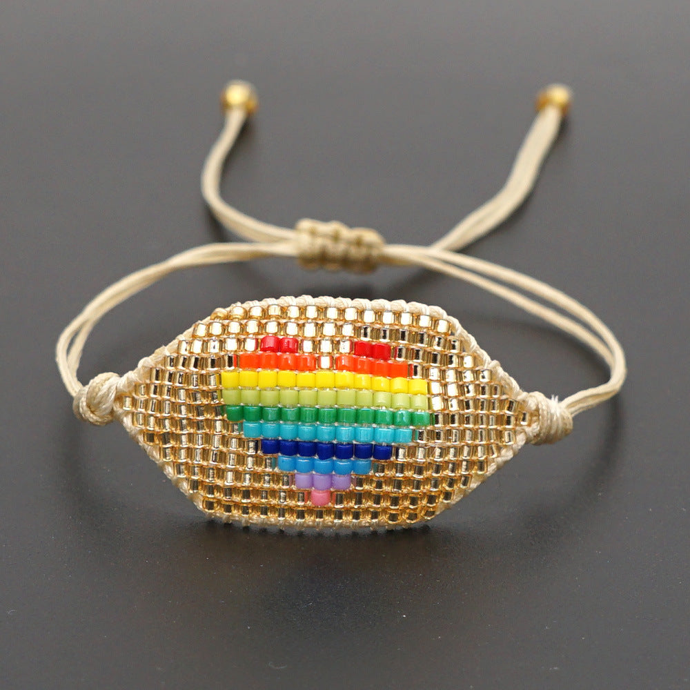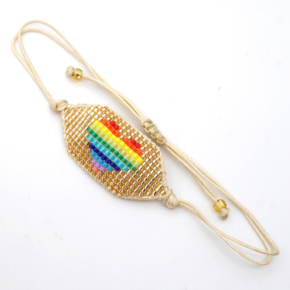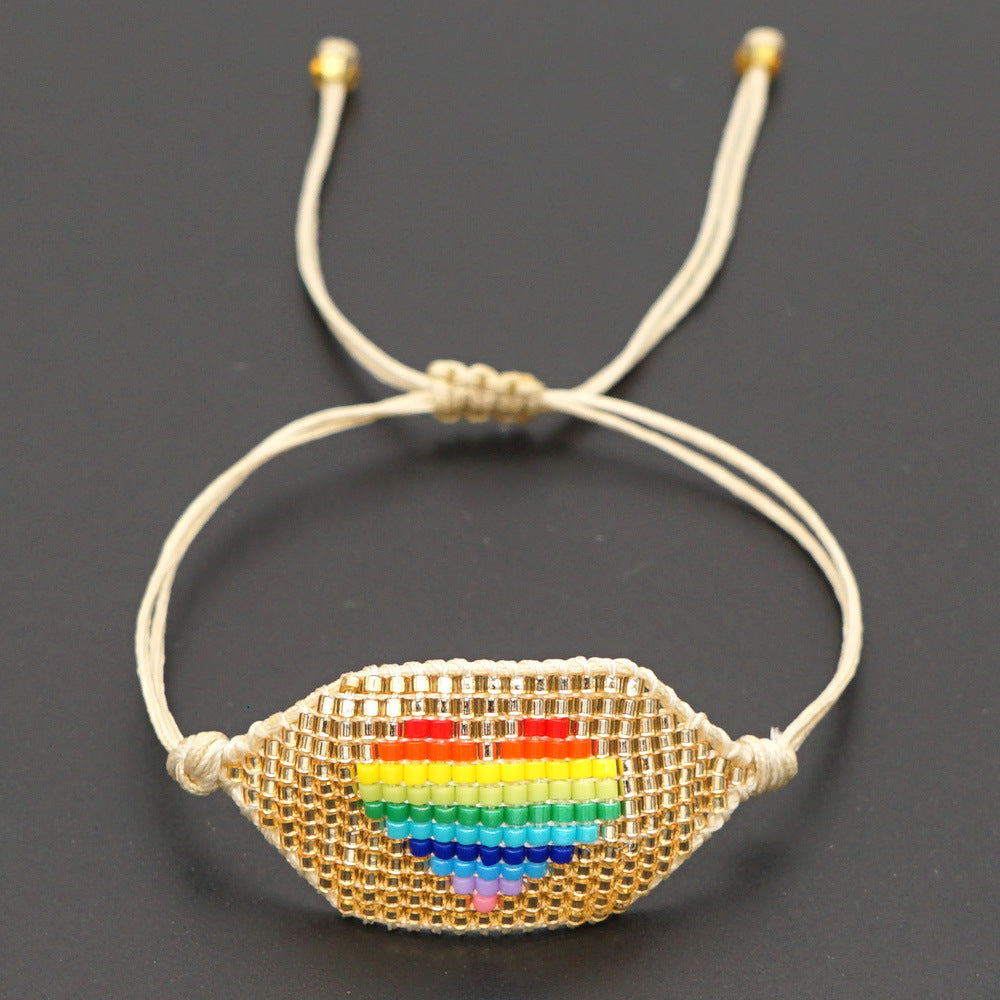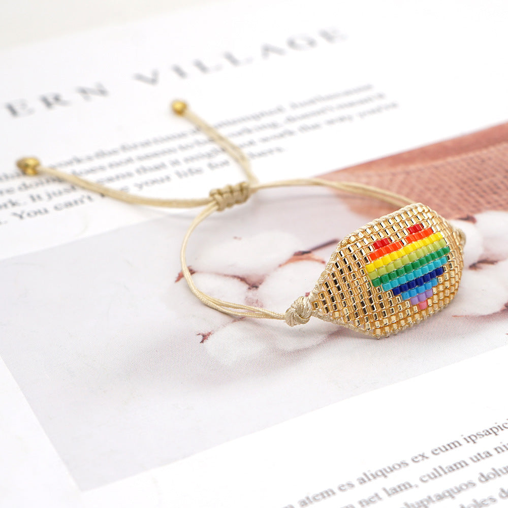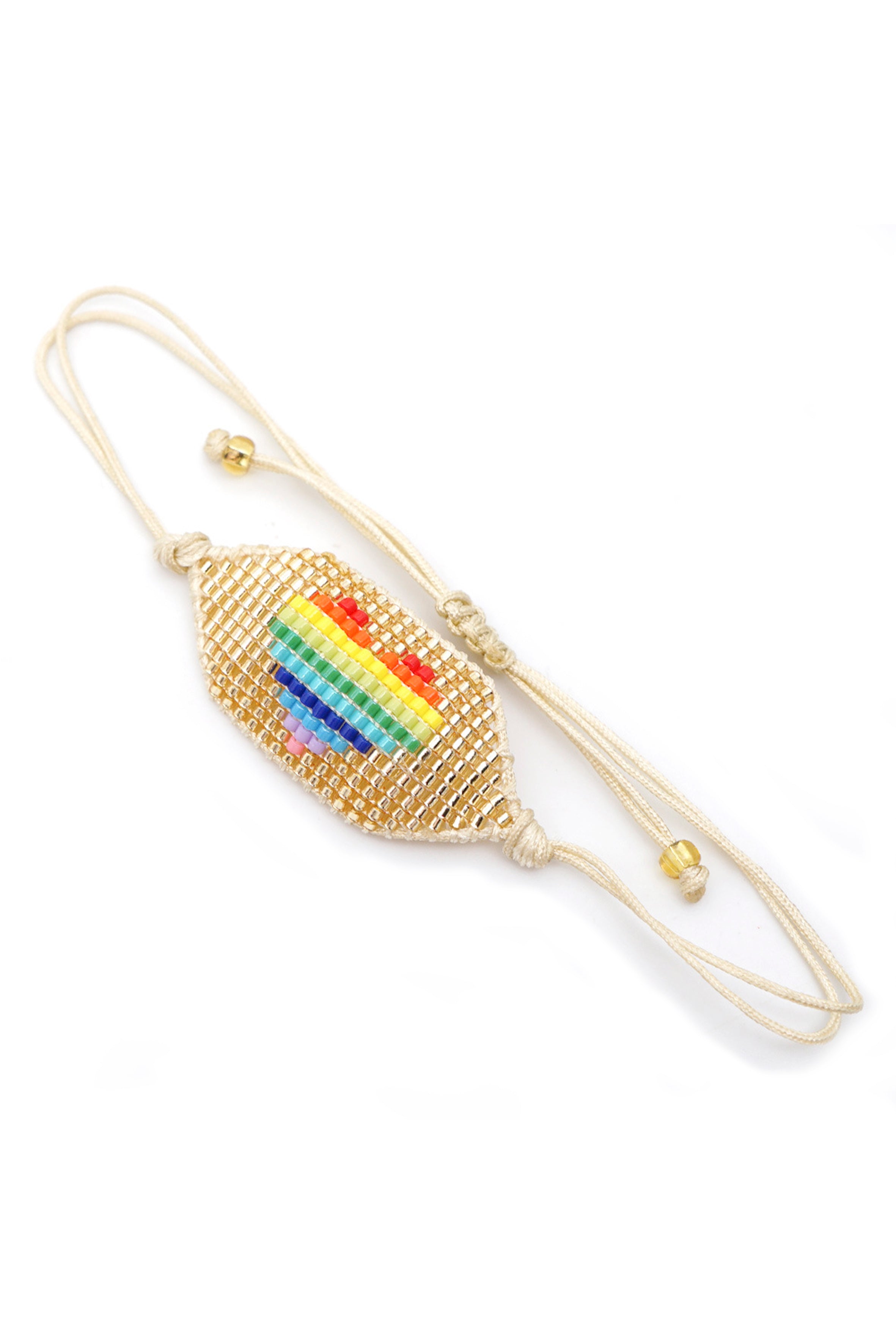 Pulsera trenzada con cuentas de semillas en forma de corazón B3109