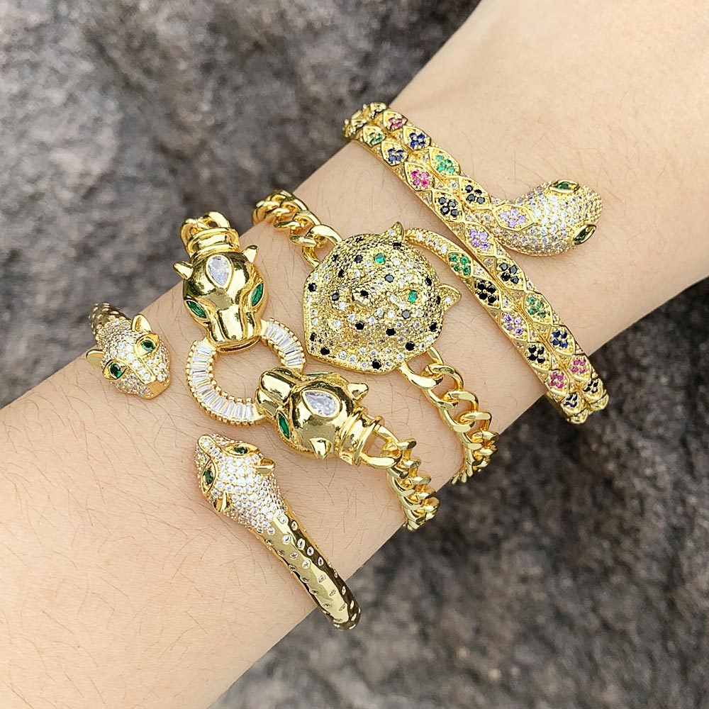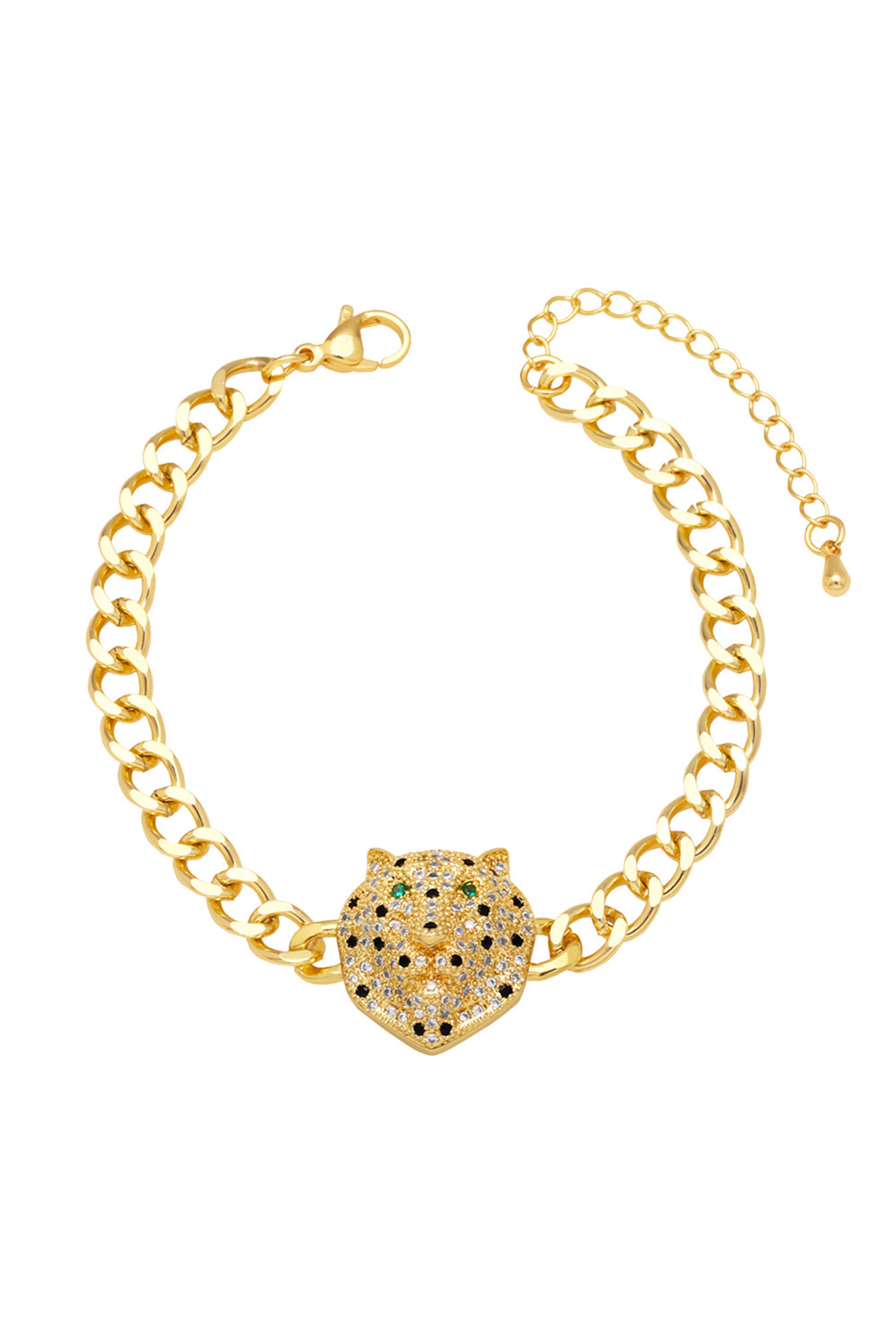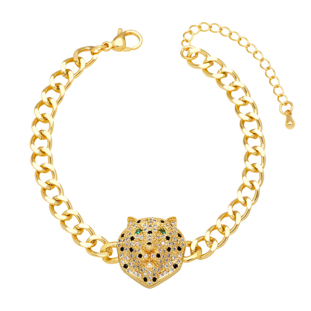 Pulsera de cadena de circonita cúbica con cabeza de leopardo B3852