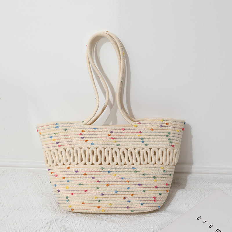 Bolsa de mano de hilo de algodón con lunares multicolores HB2373