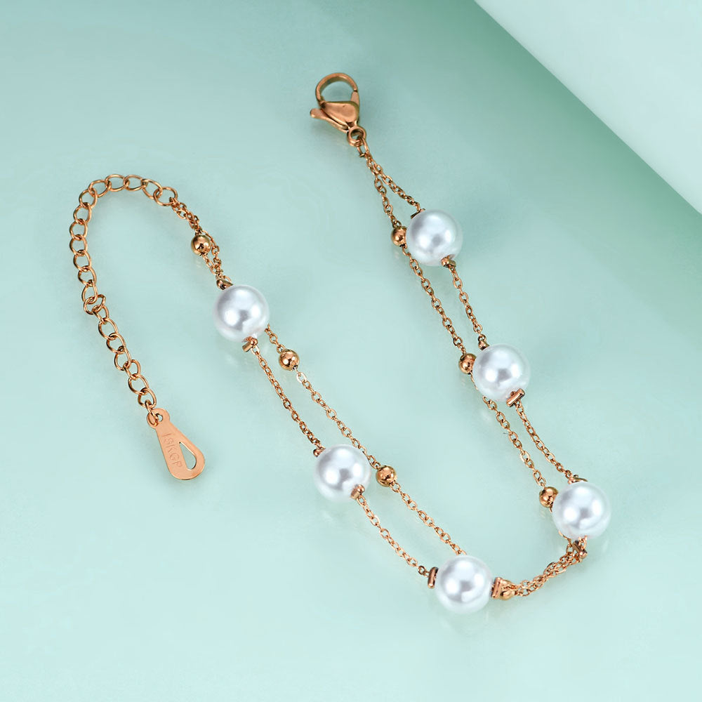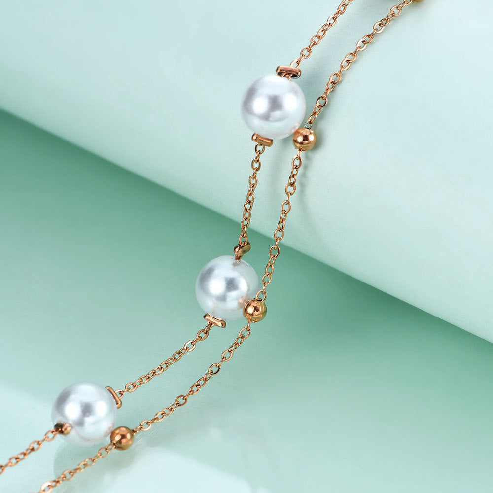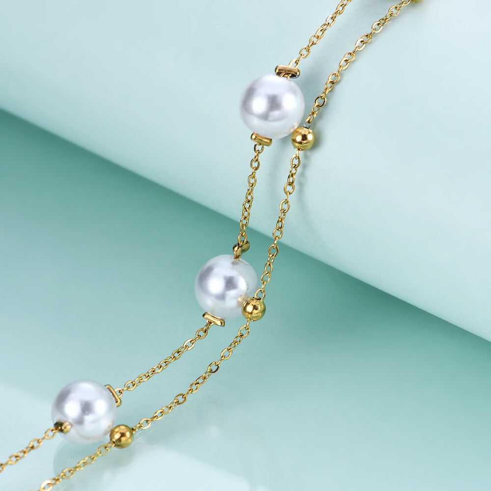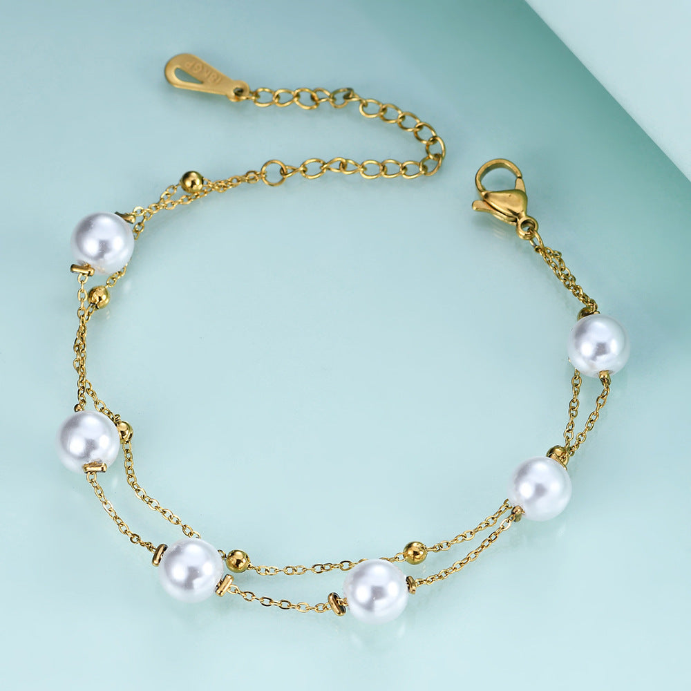 Pulseras de cadena de acero inoxidable con perlas B2602