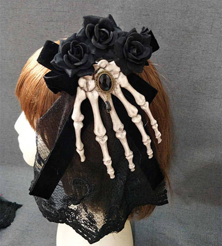 Pinza para el pelo con encaje y forma de calavera punk L3169