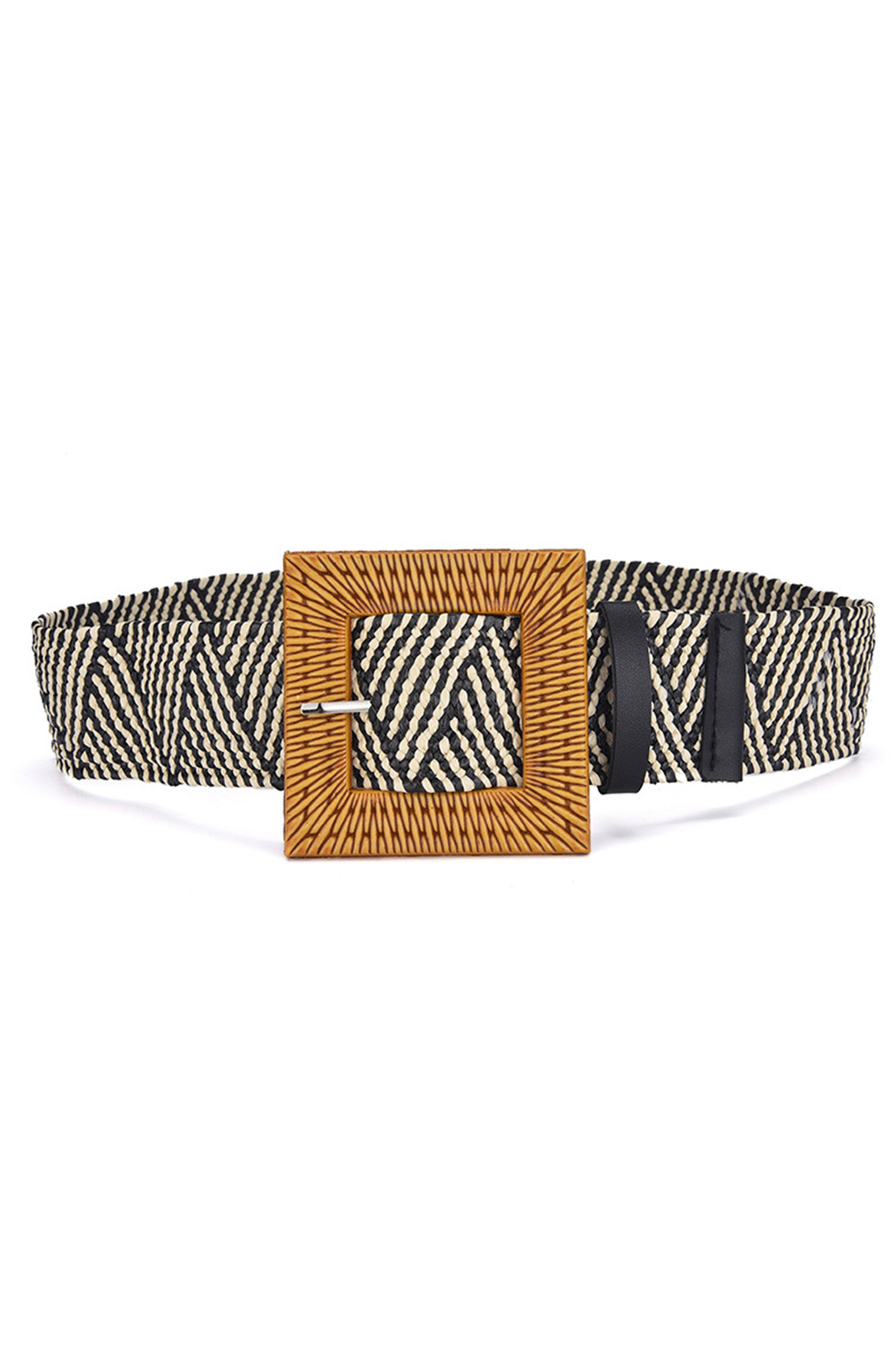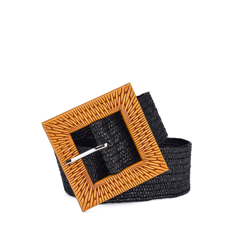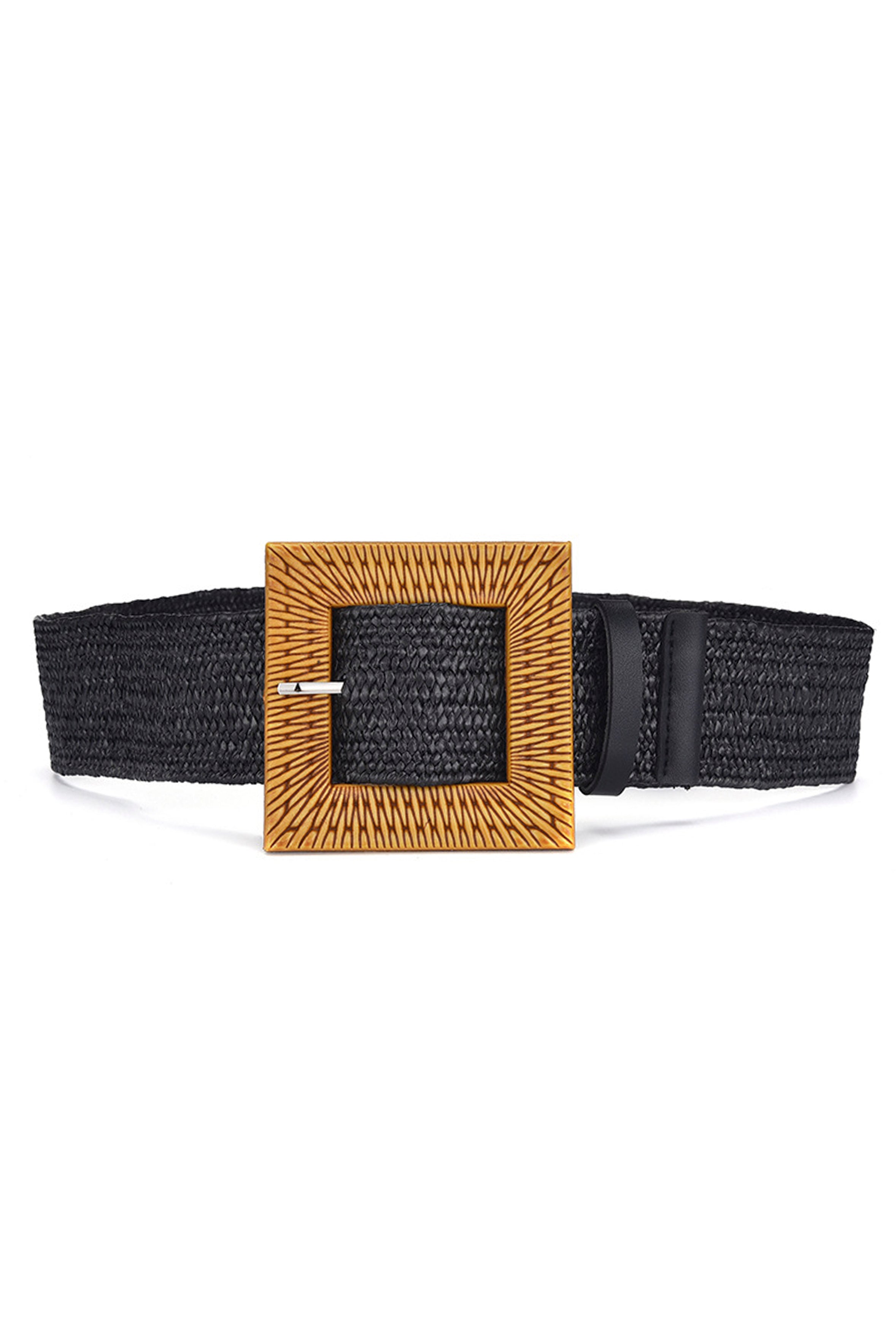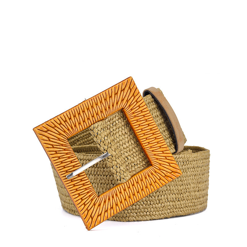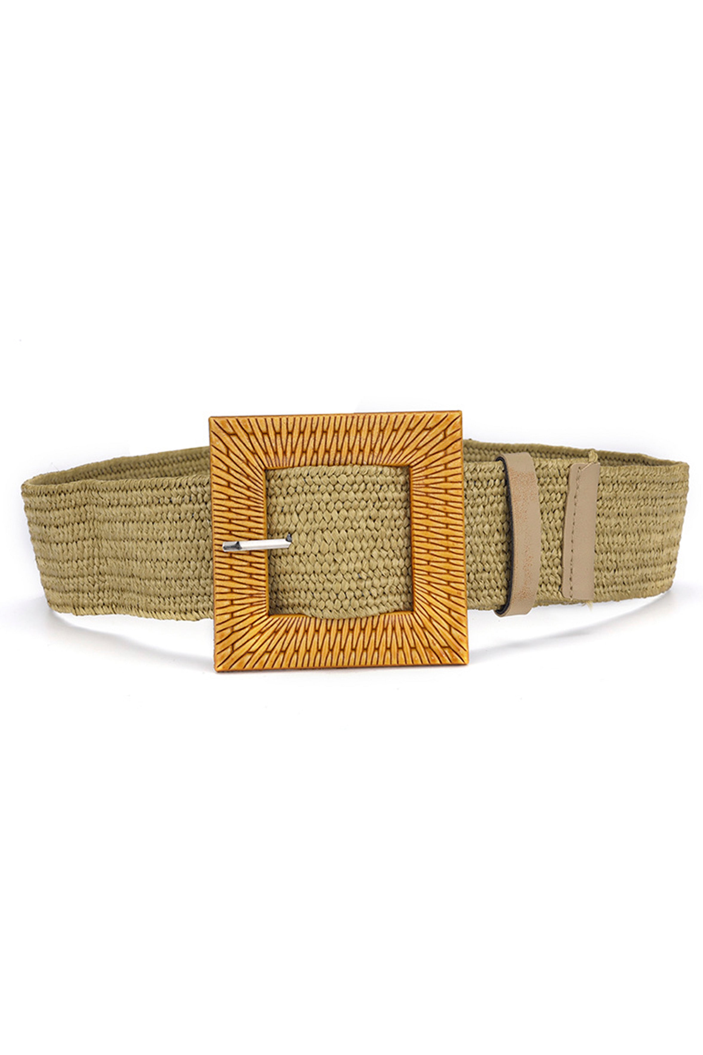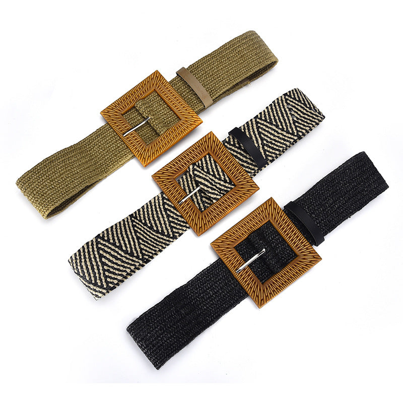 Cinturón elástico de paja con hebilla cuadrada WA0204