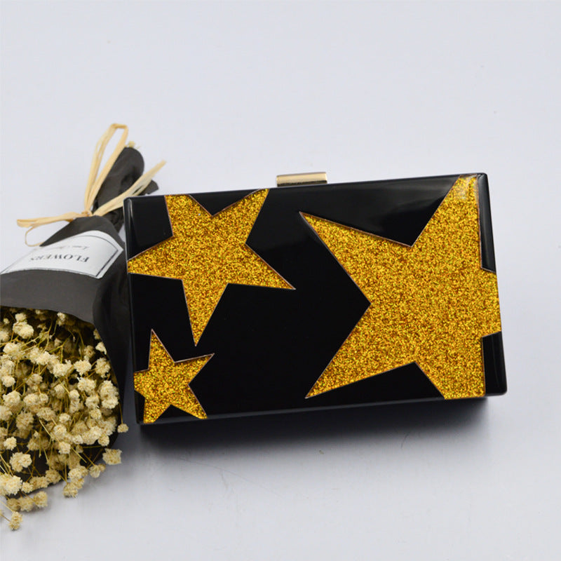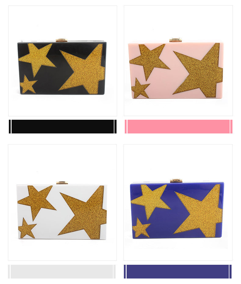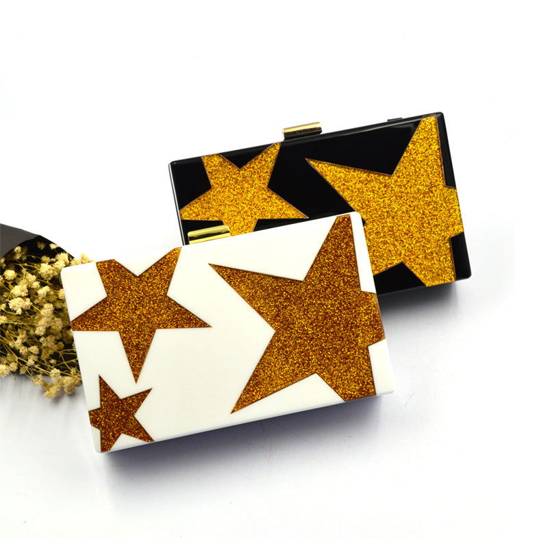 Bolso de noche rectangular de acrílico con forma de estrella HB1383
