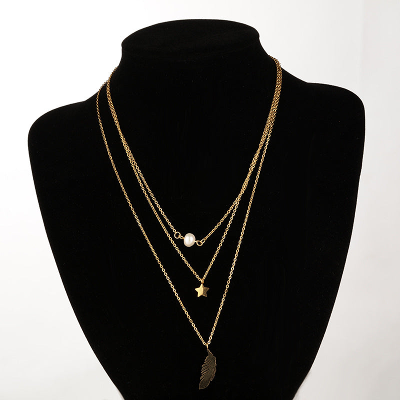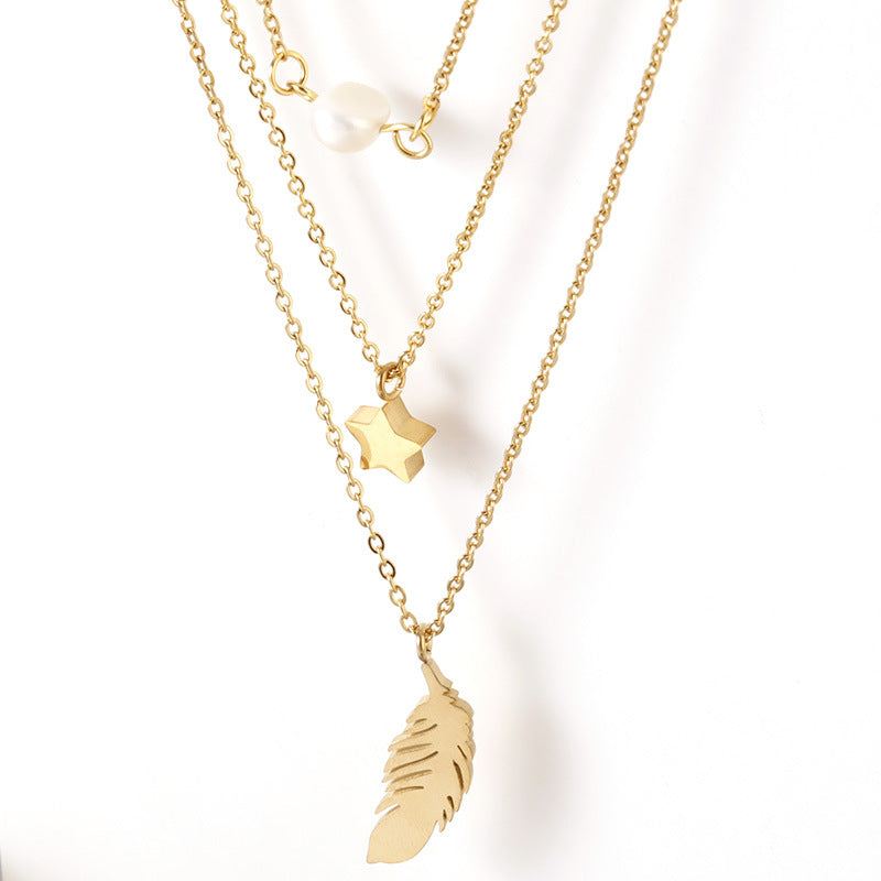 Star & Feather Multilayer Chains Necklace N3882