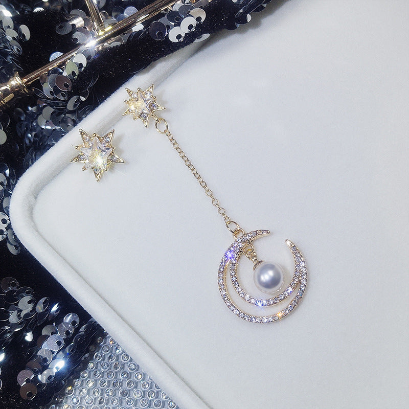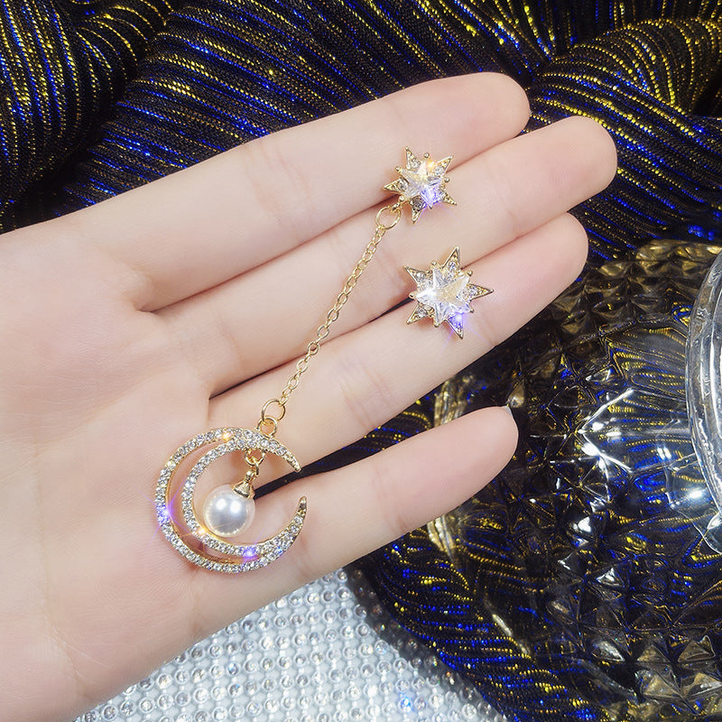 Star Moon Rhinestone Asymmetric Earrings E5675
