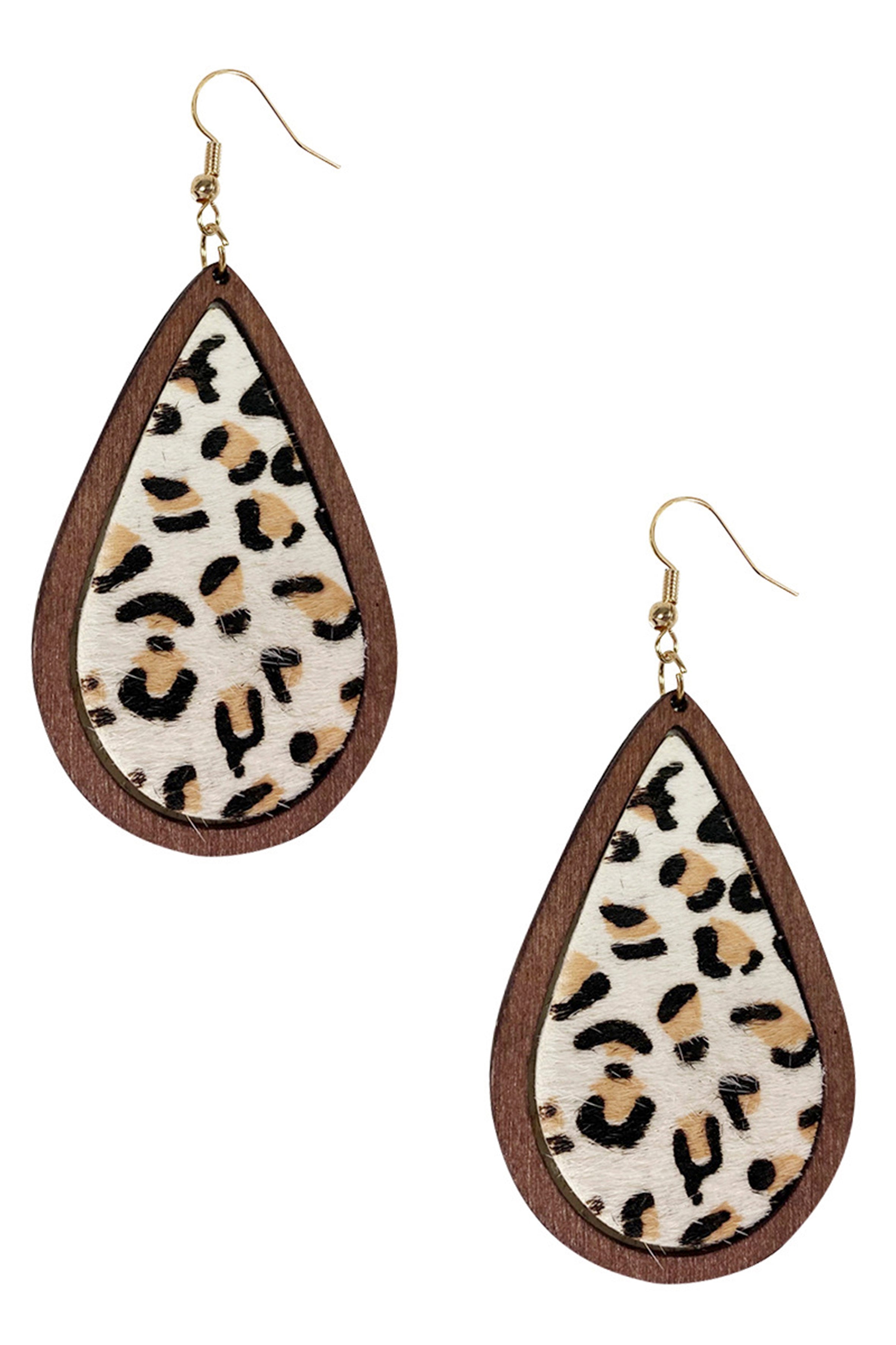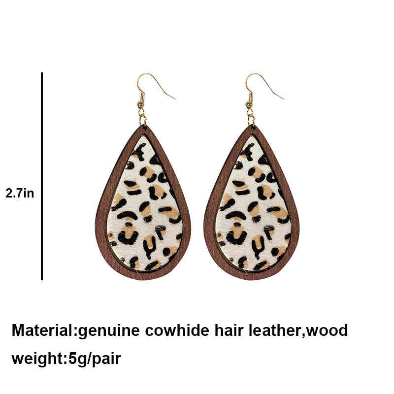 Pendientes de piel auténtica con estampado animal en forma de lágrima E4611