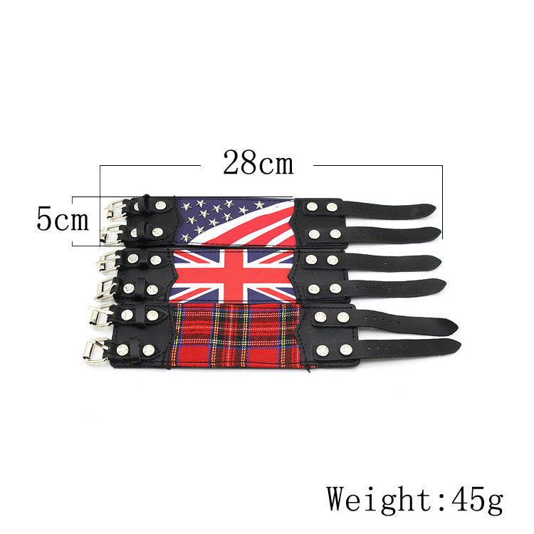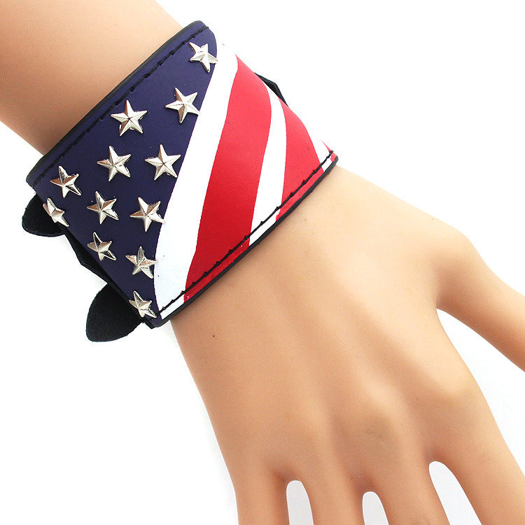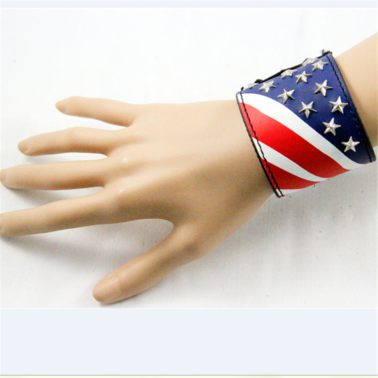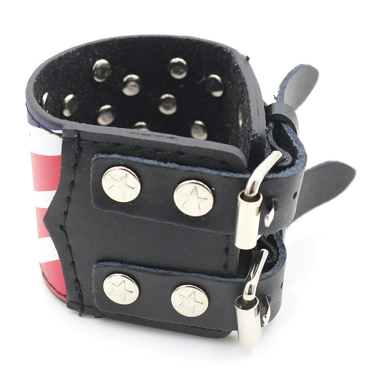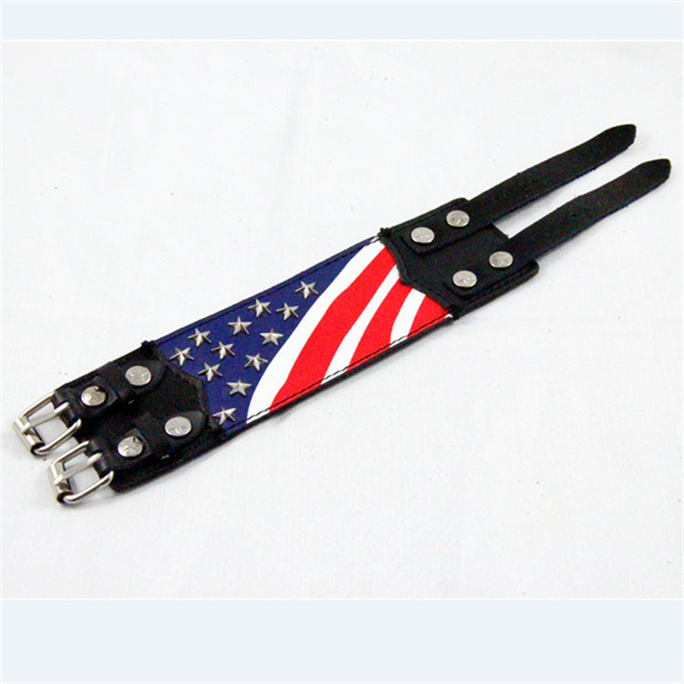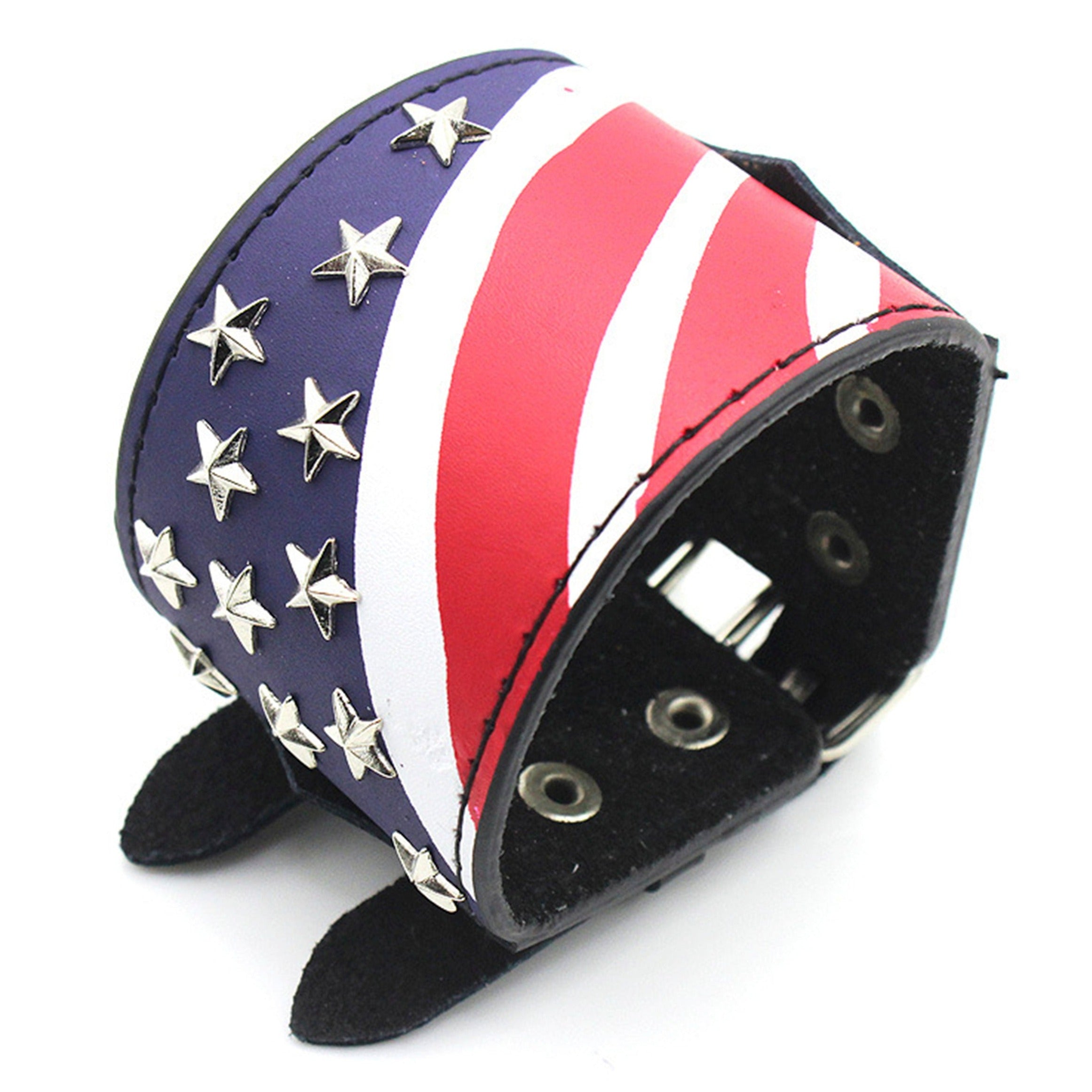 Pulsera de cuero con broche de presión y bandera estadounidense B3691