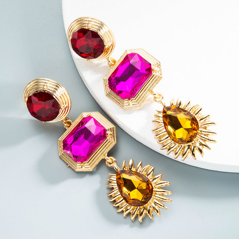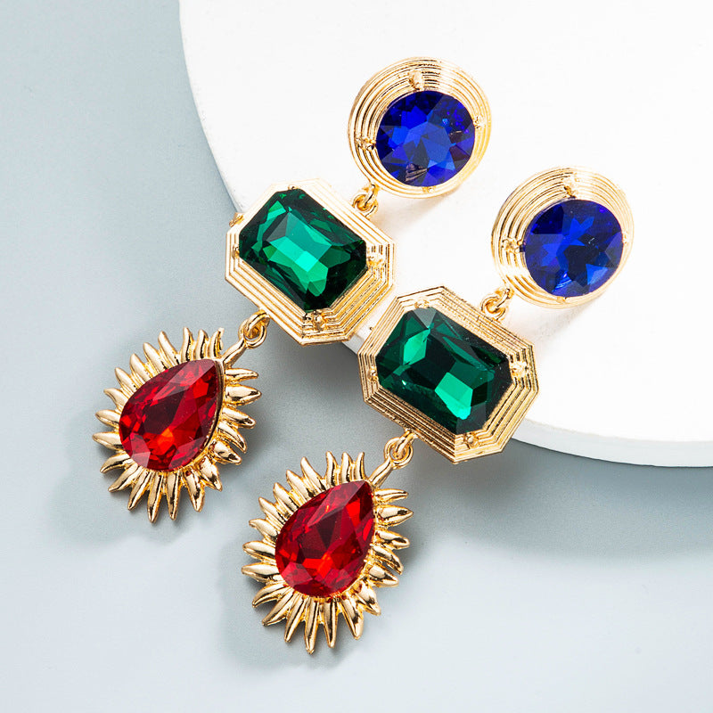 Baroque Rhinestone Teardrop Geometry Earrings E8526